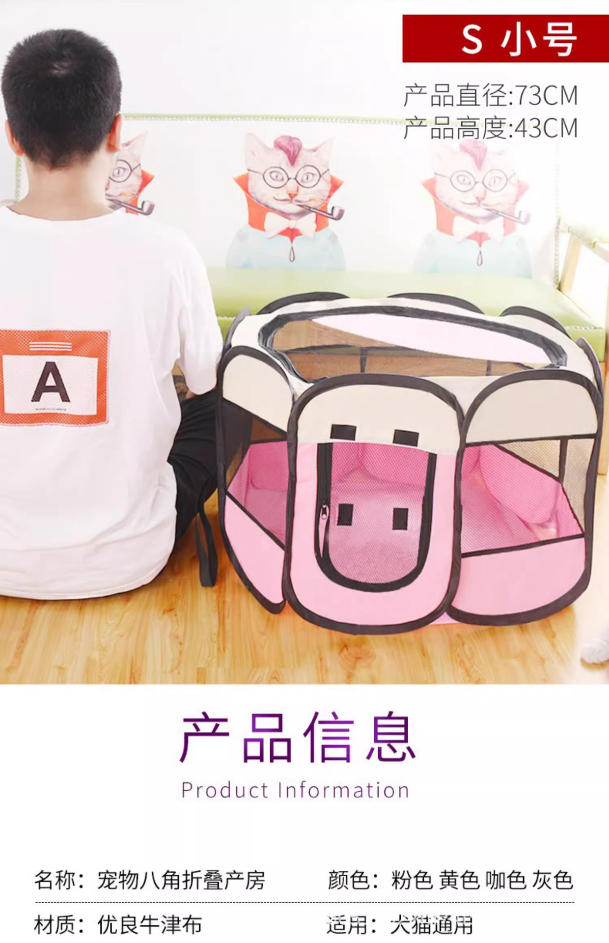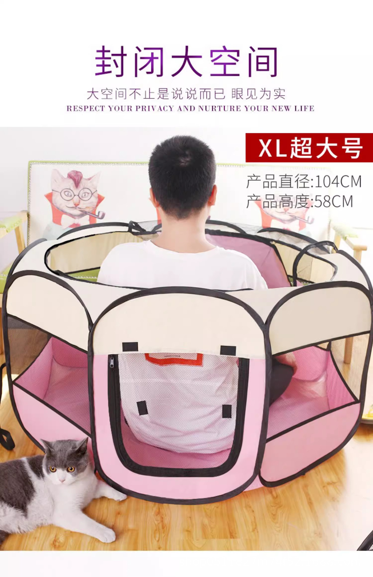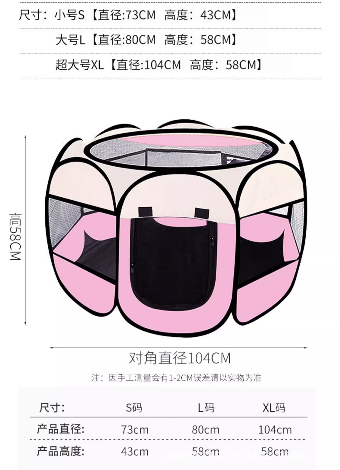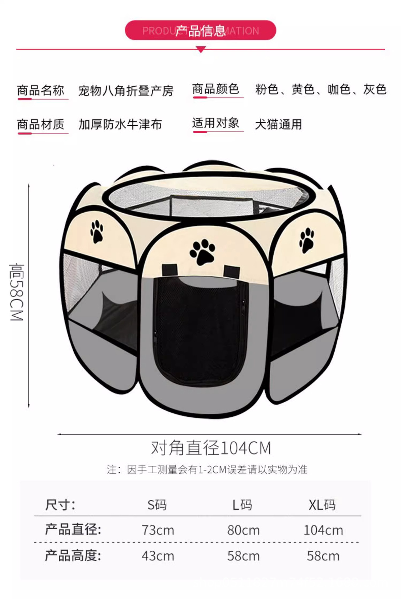 국경 간 팔각형 케이지 l 애완 동물 울타리 애완 동물 텐트 접이식 개 케이지 개 고양이 배달실 사육장 고양이 출구스토어 가기