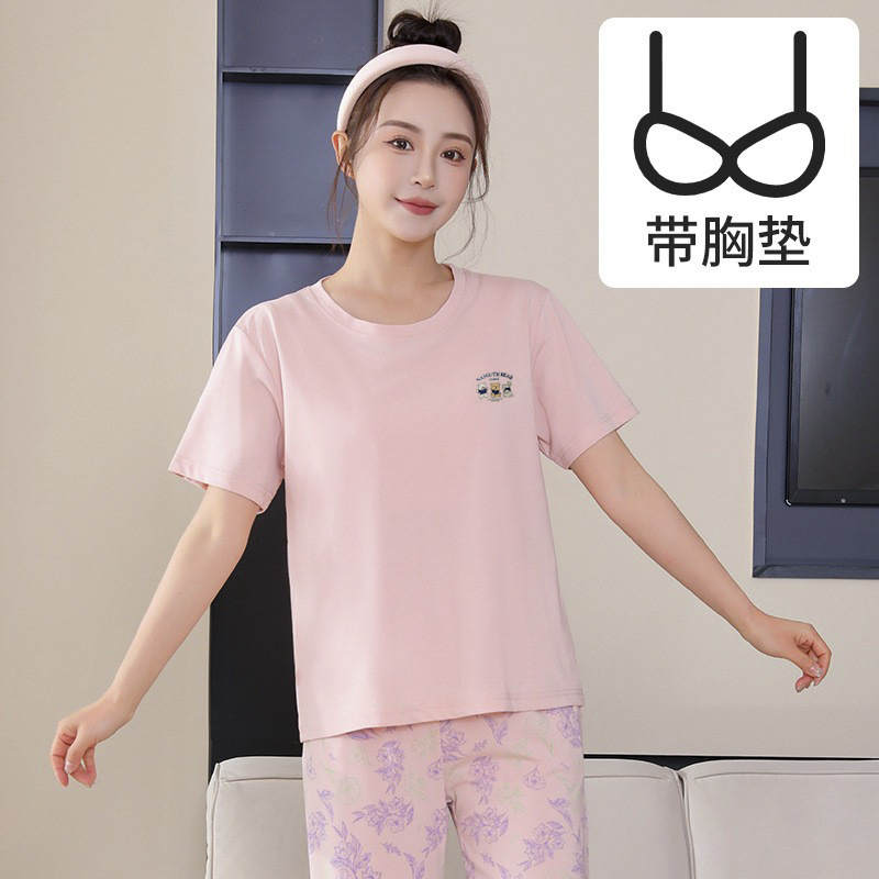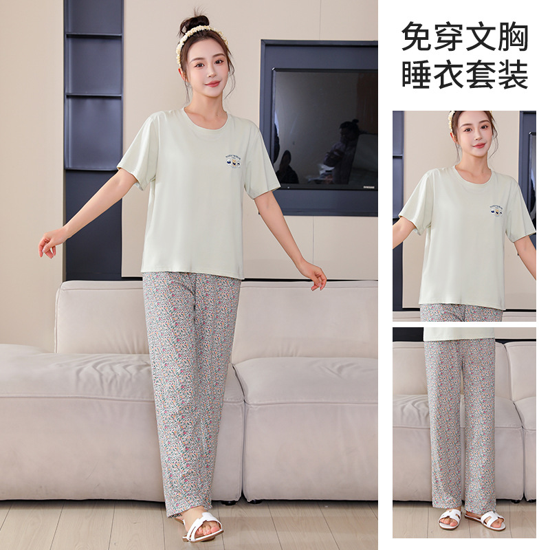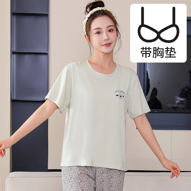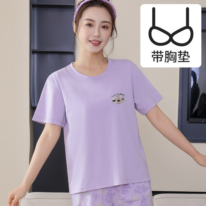 2026년 신상 잠옷, 여름용 코마면 가슴 패드가 있는 여성 홈웨어 세트, 얇고 시원하며 통기성이 좋으며 외부에서 착용 가능합니다.