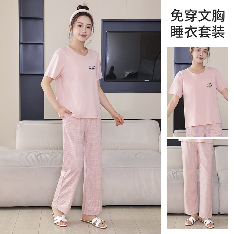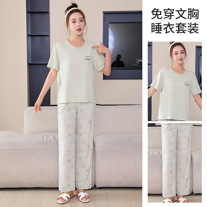 2026년 신상 잠옷, 여름용 코마면 가슴 패드가 있는 여성 홈웨어 세트, 얇고 시원하며 통기성이 좋으며 외부에서 착용 가능합니다.스토어 가기