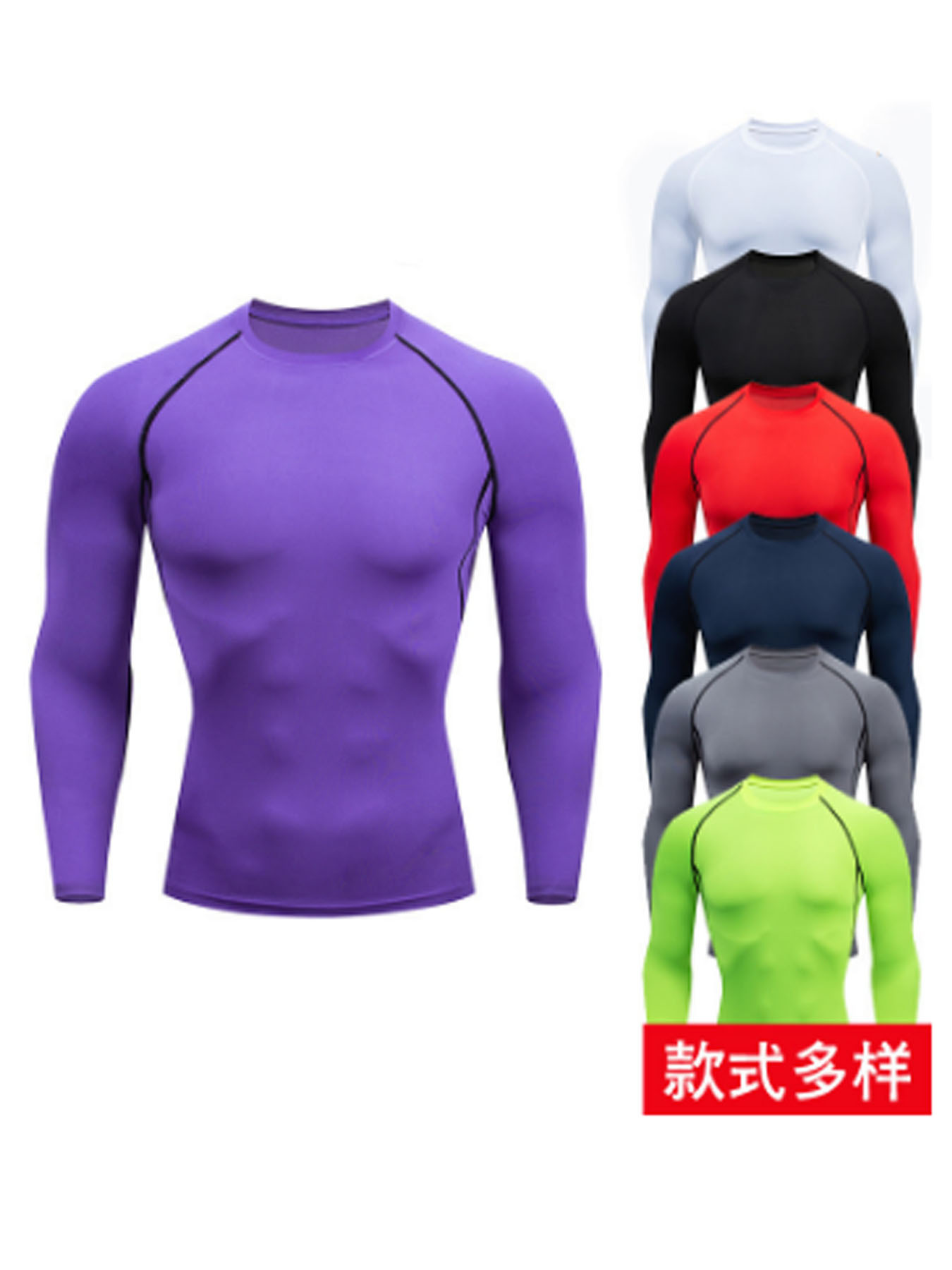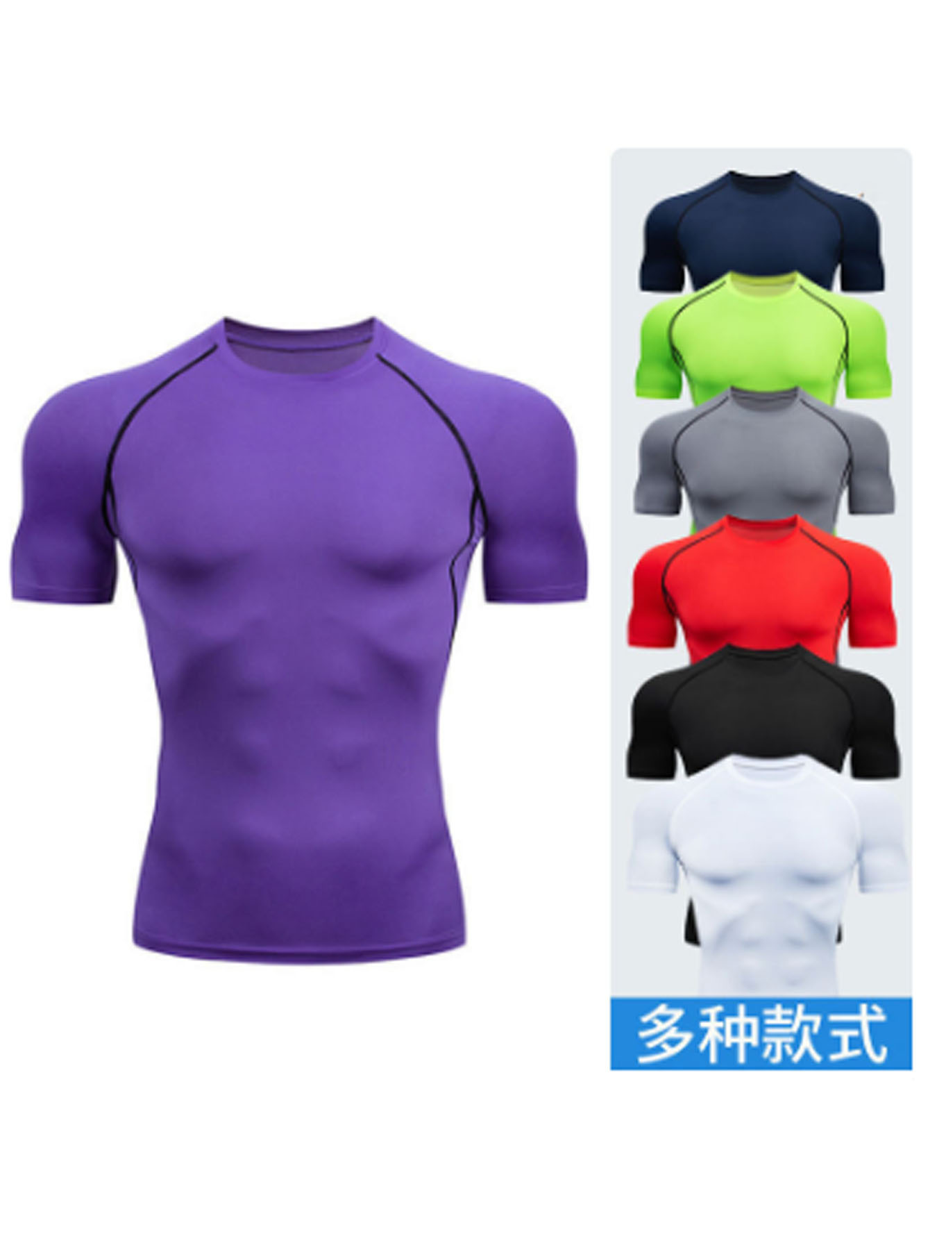 국경 간 유럽 및 미국 코드 7 색 남성 스포츠 타이트 탑 달리기 체육관 라운드 넥 빠른 건조 높은 탄성 탑스토어 가기