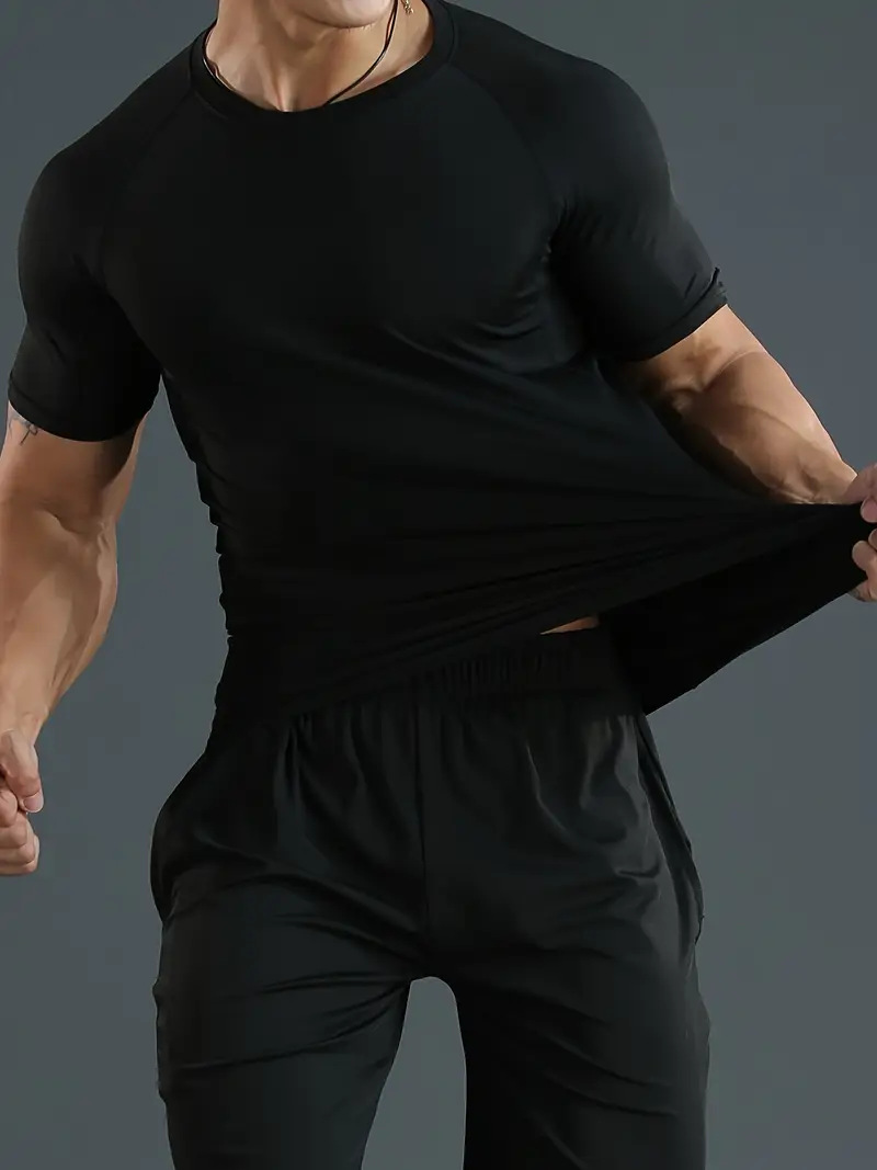 국경 간 유럽 및 미국 코드 7 색 남성 스포츠 타이트 탑 달리기 체육관 라운드 넥 빠른 건조 높은 탄성 탑