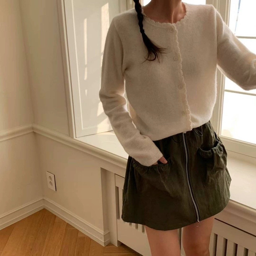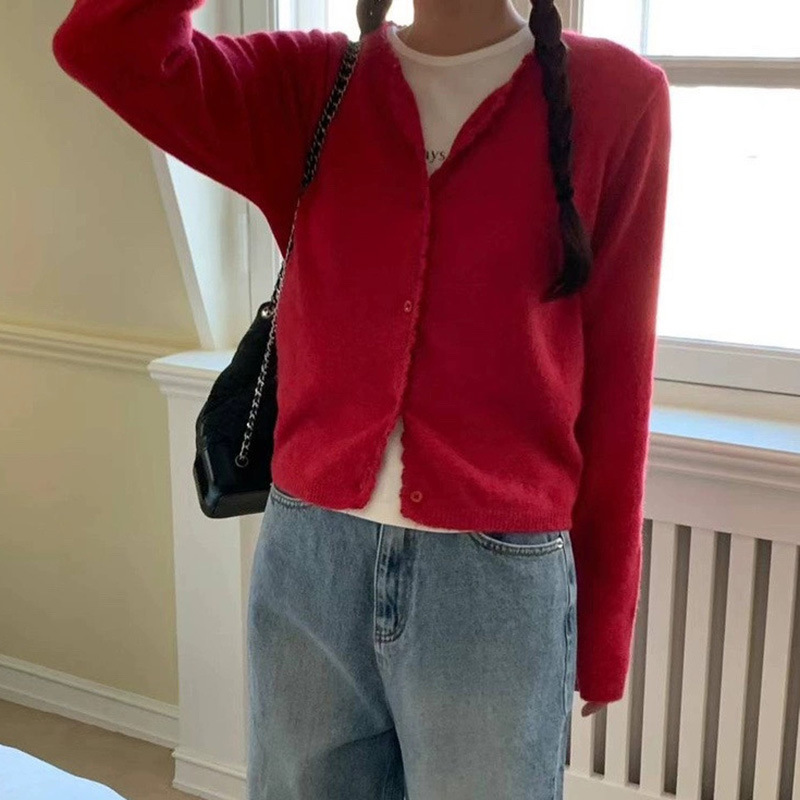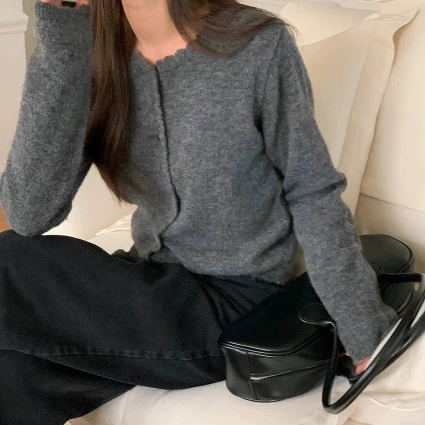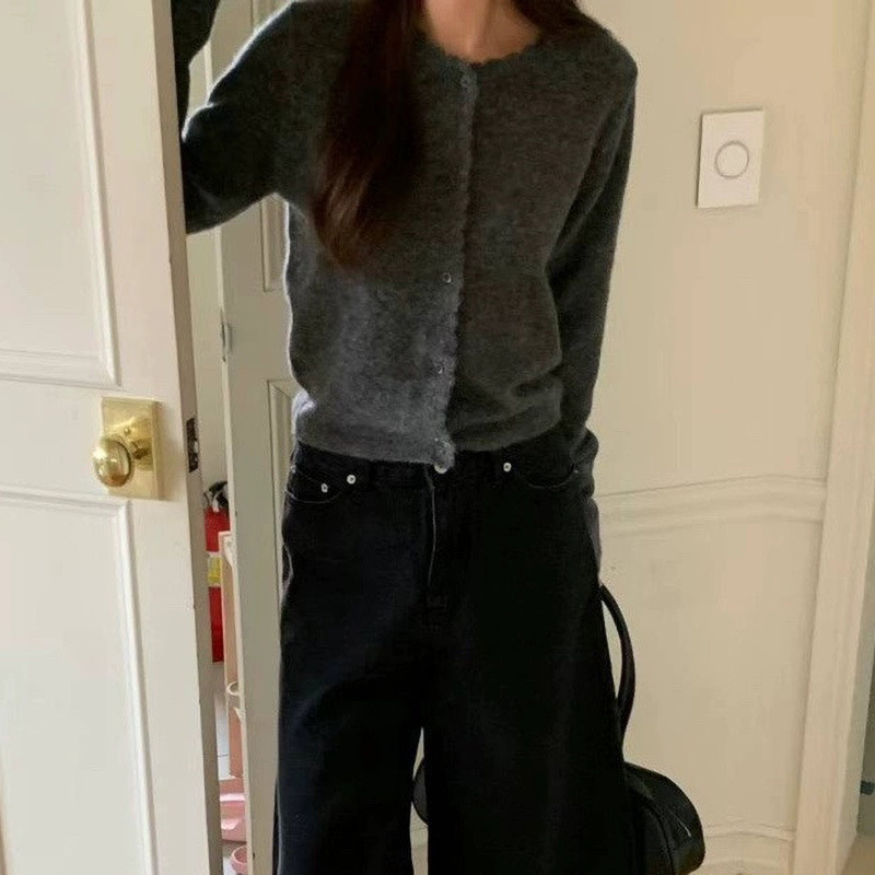 재고 한국 동대문 단색 얇은 니트 스웨터 2025 봄 여성 크루넥 싱글 브레스트 카디건 발란 * e스토어 가기