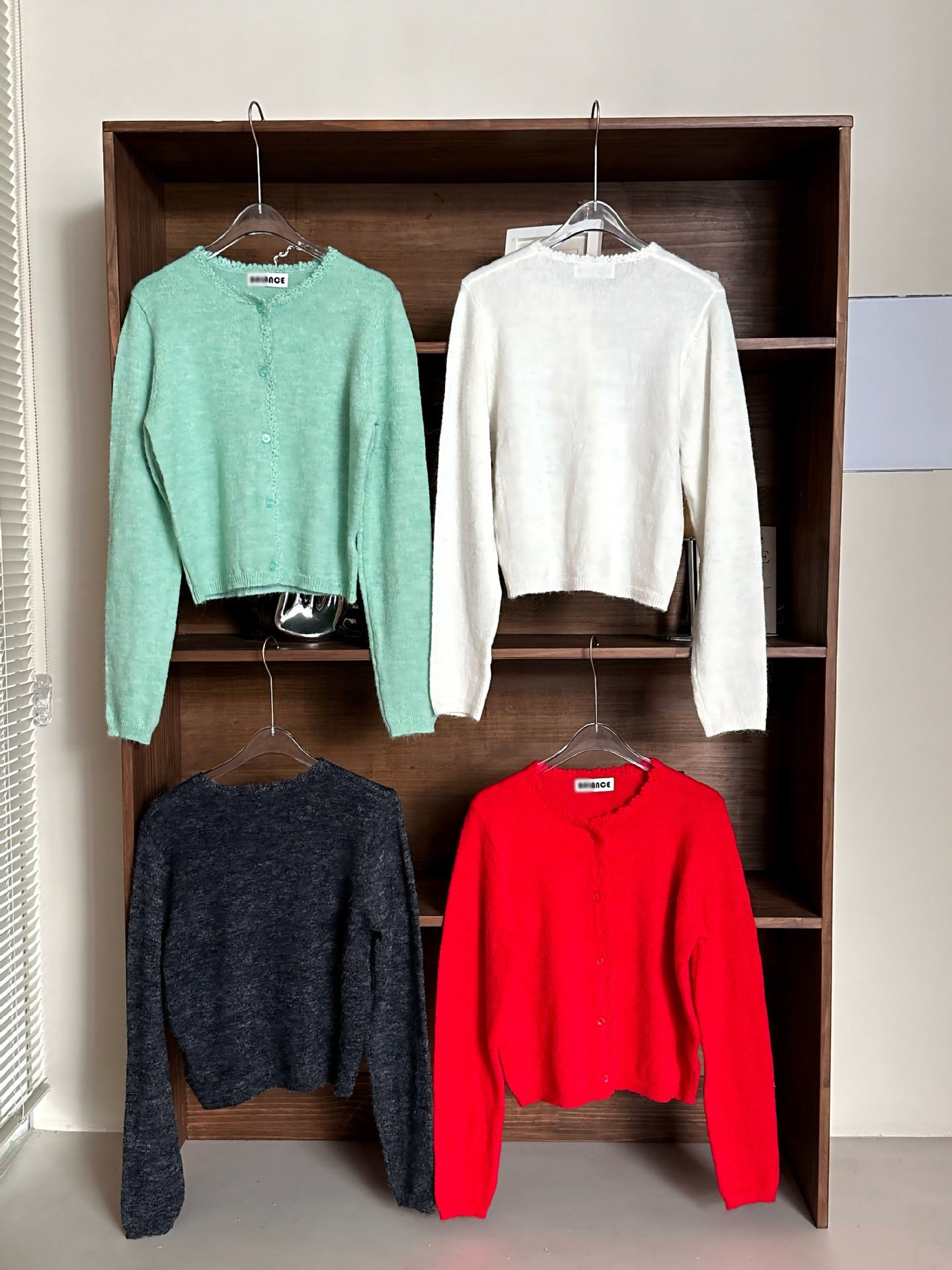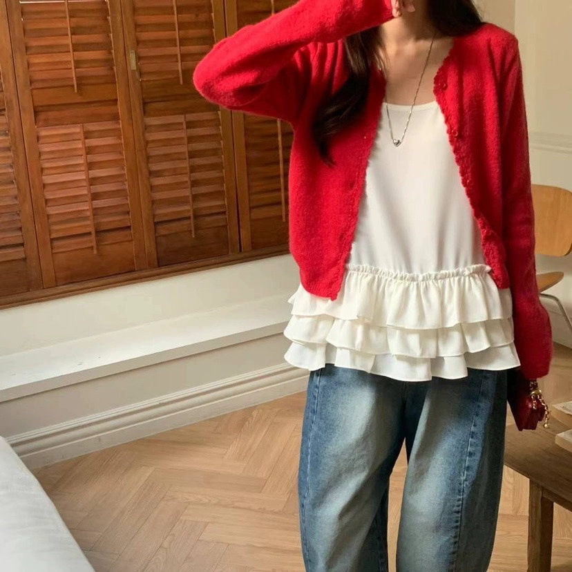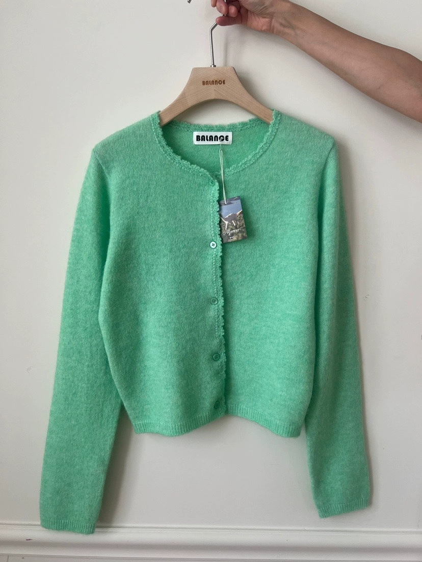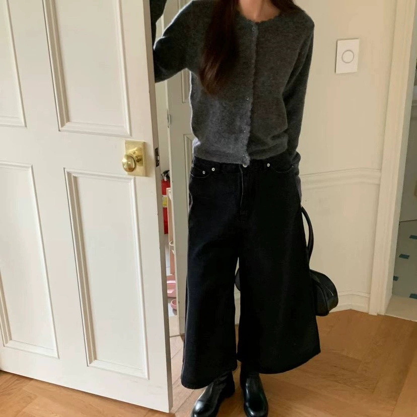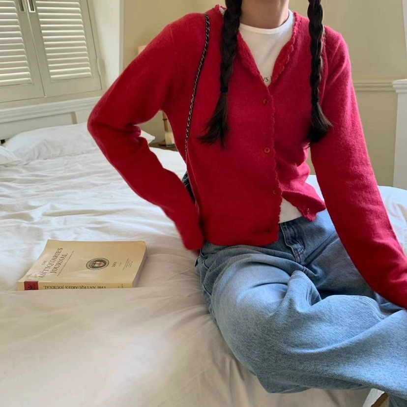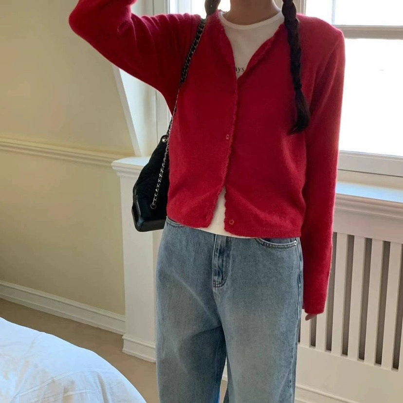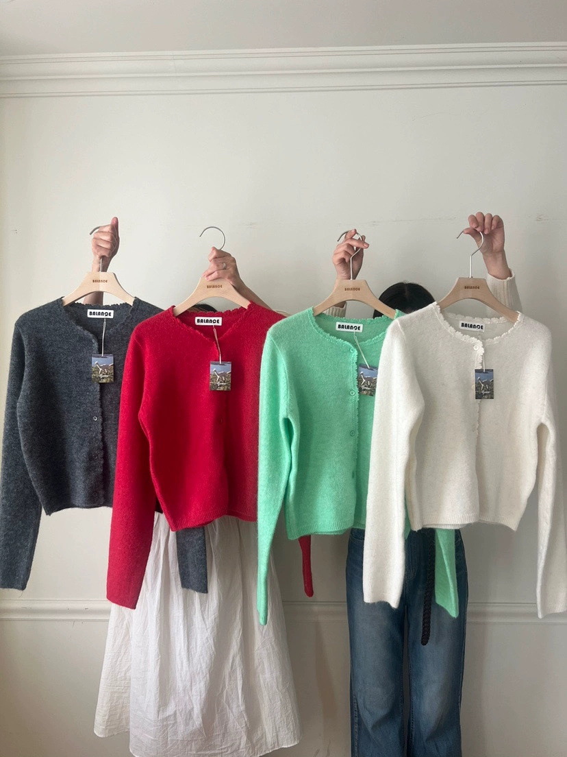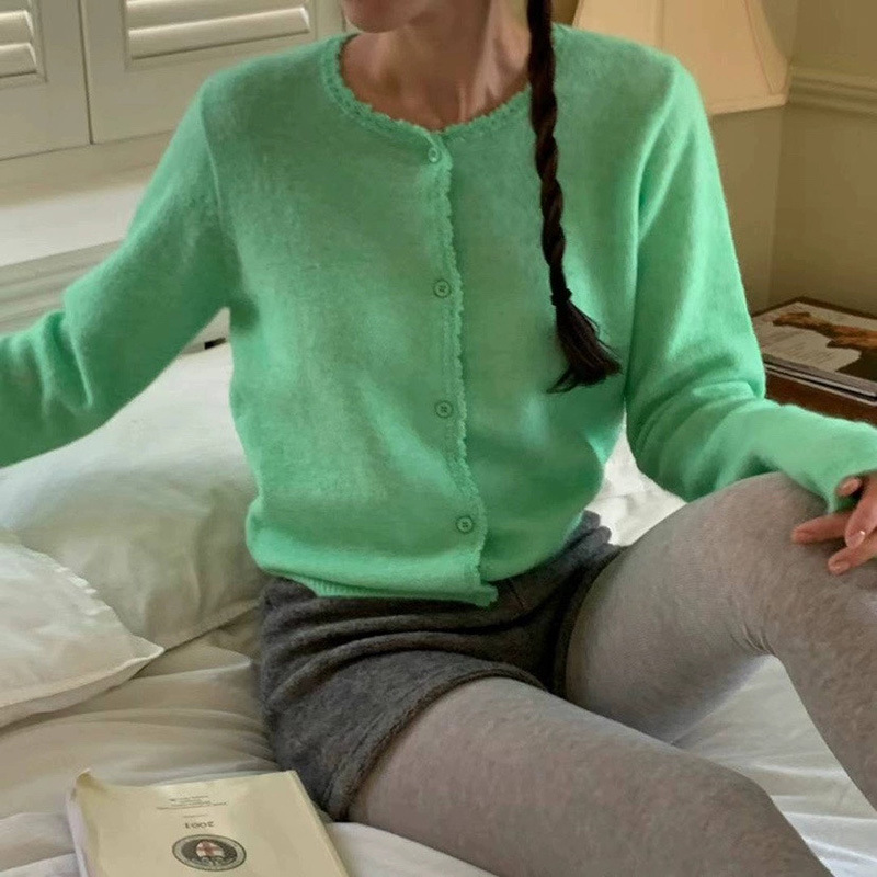 재고 한국 동대문 단색 얇은 니트 스웨터 2025 봄 여성 크루넥 싱글 브레스트 카디건 발란 * e