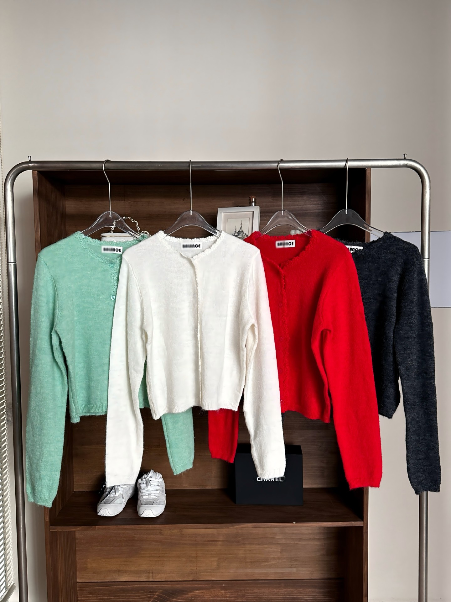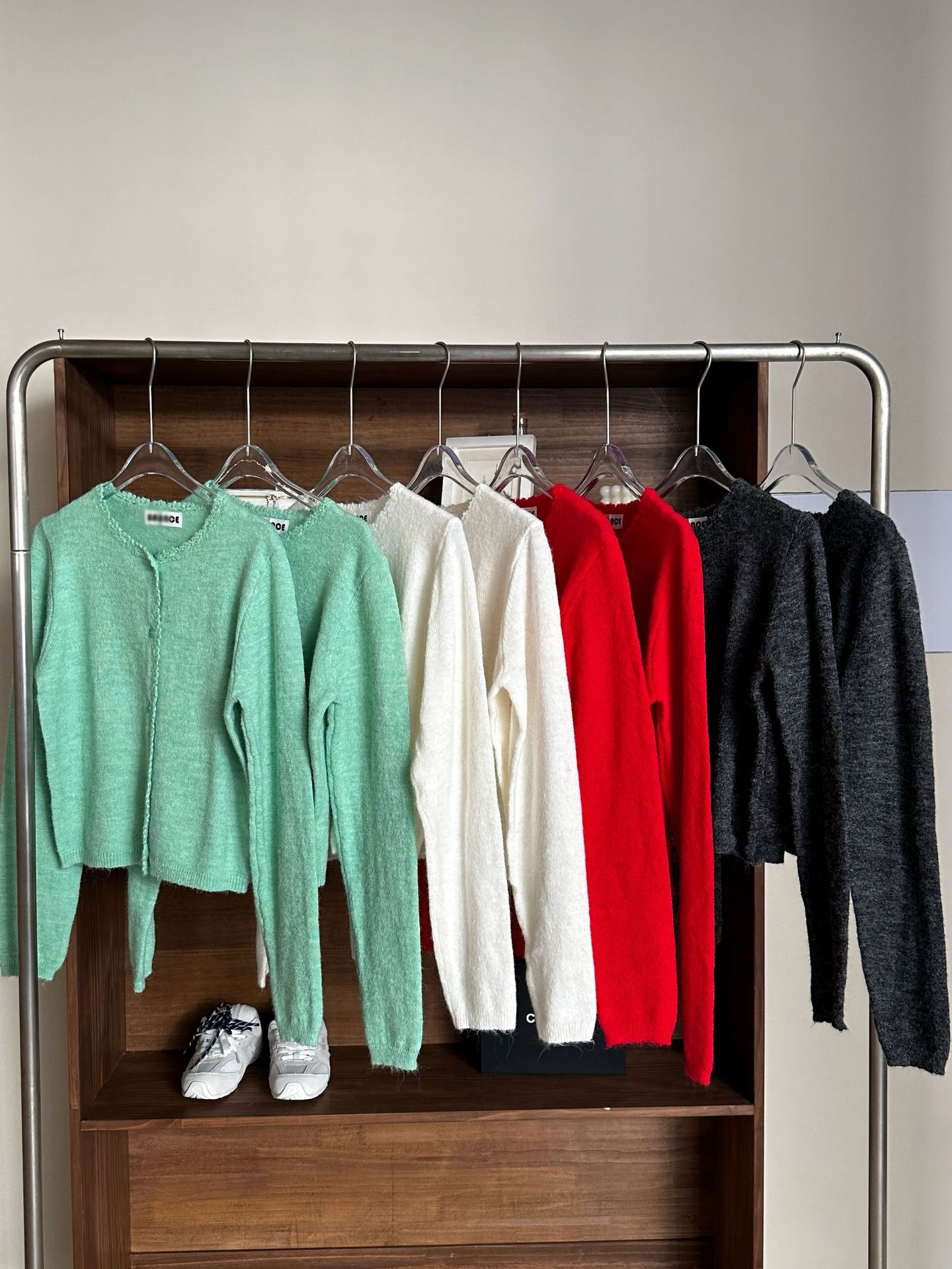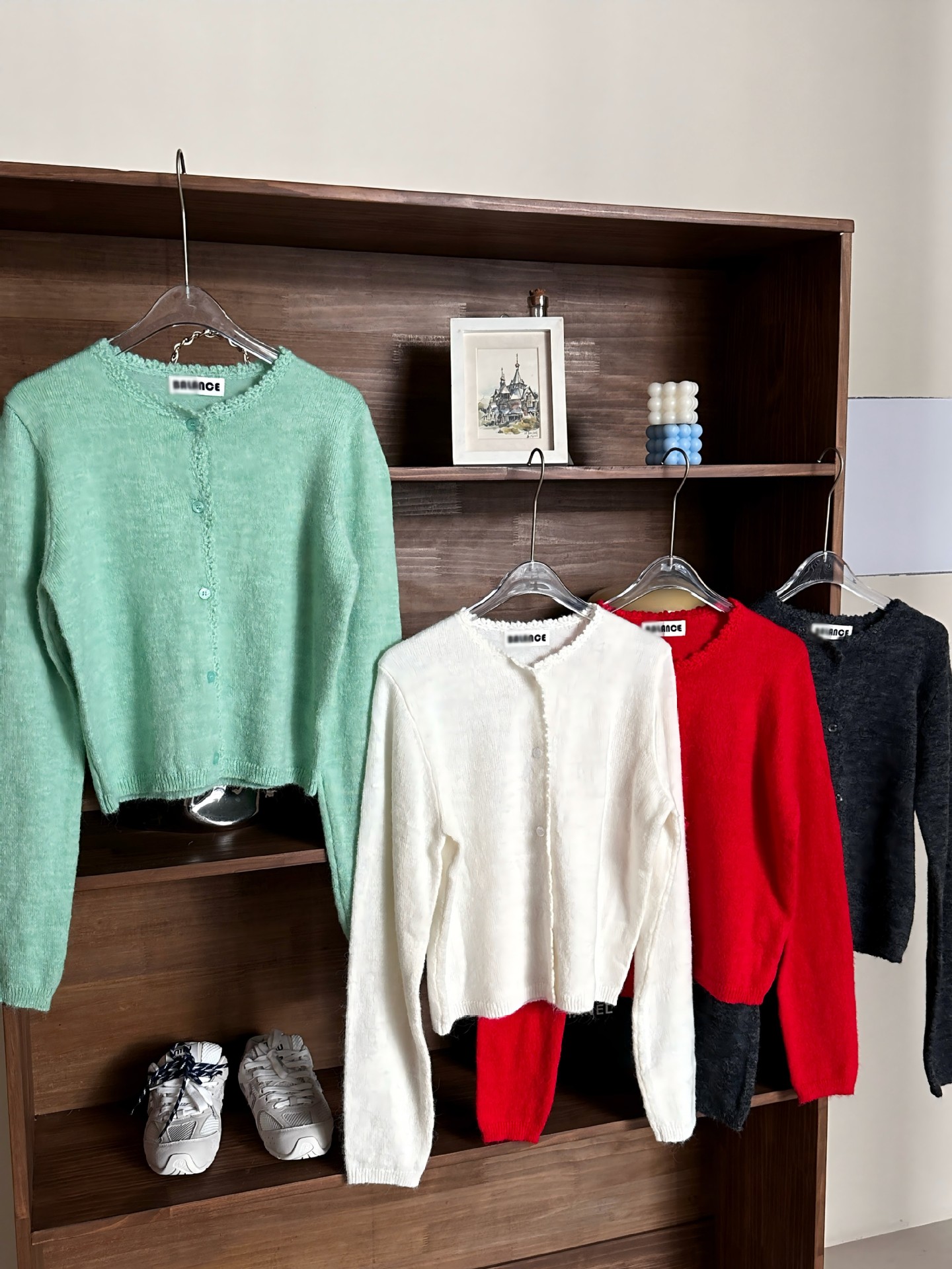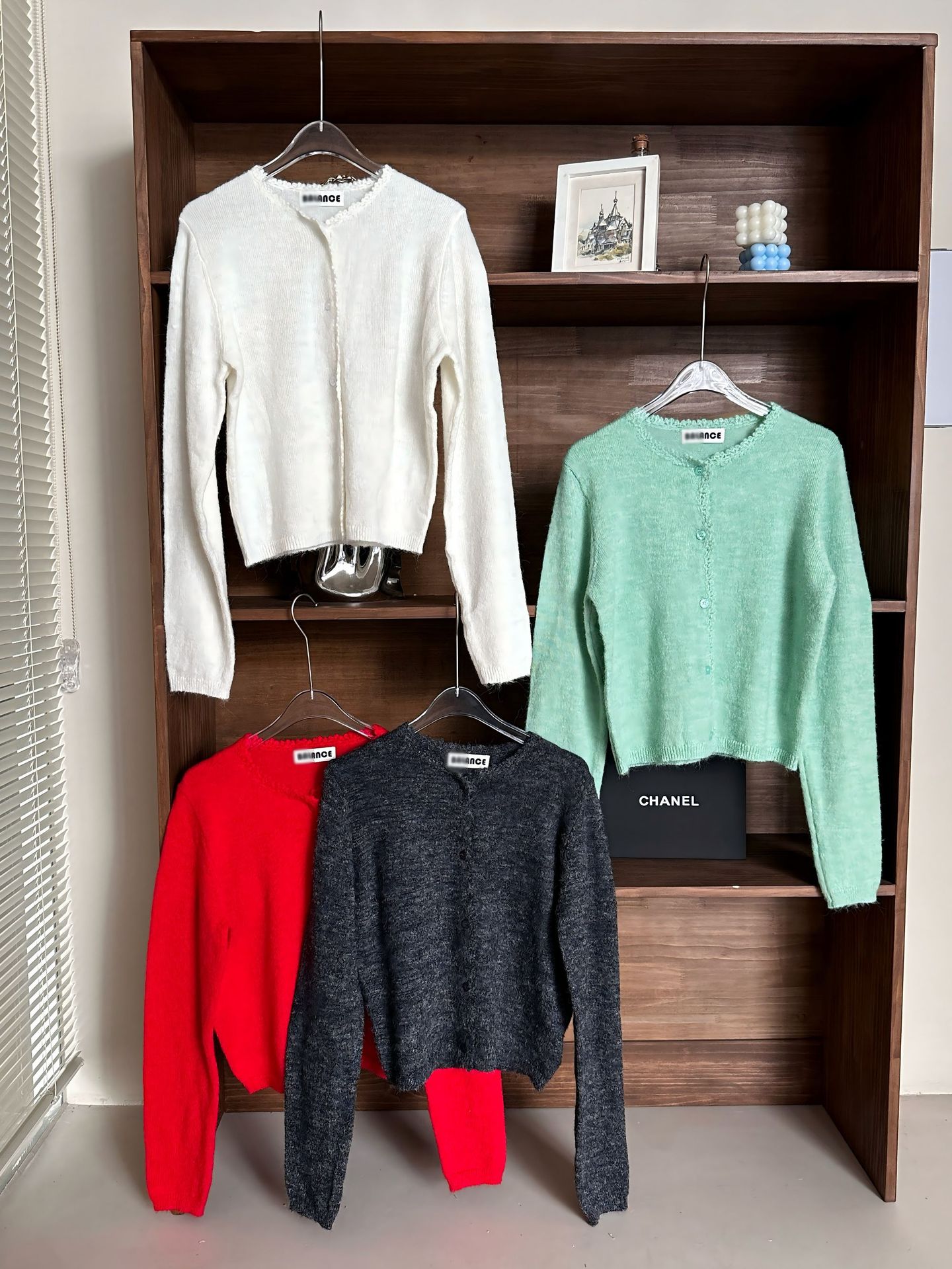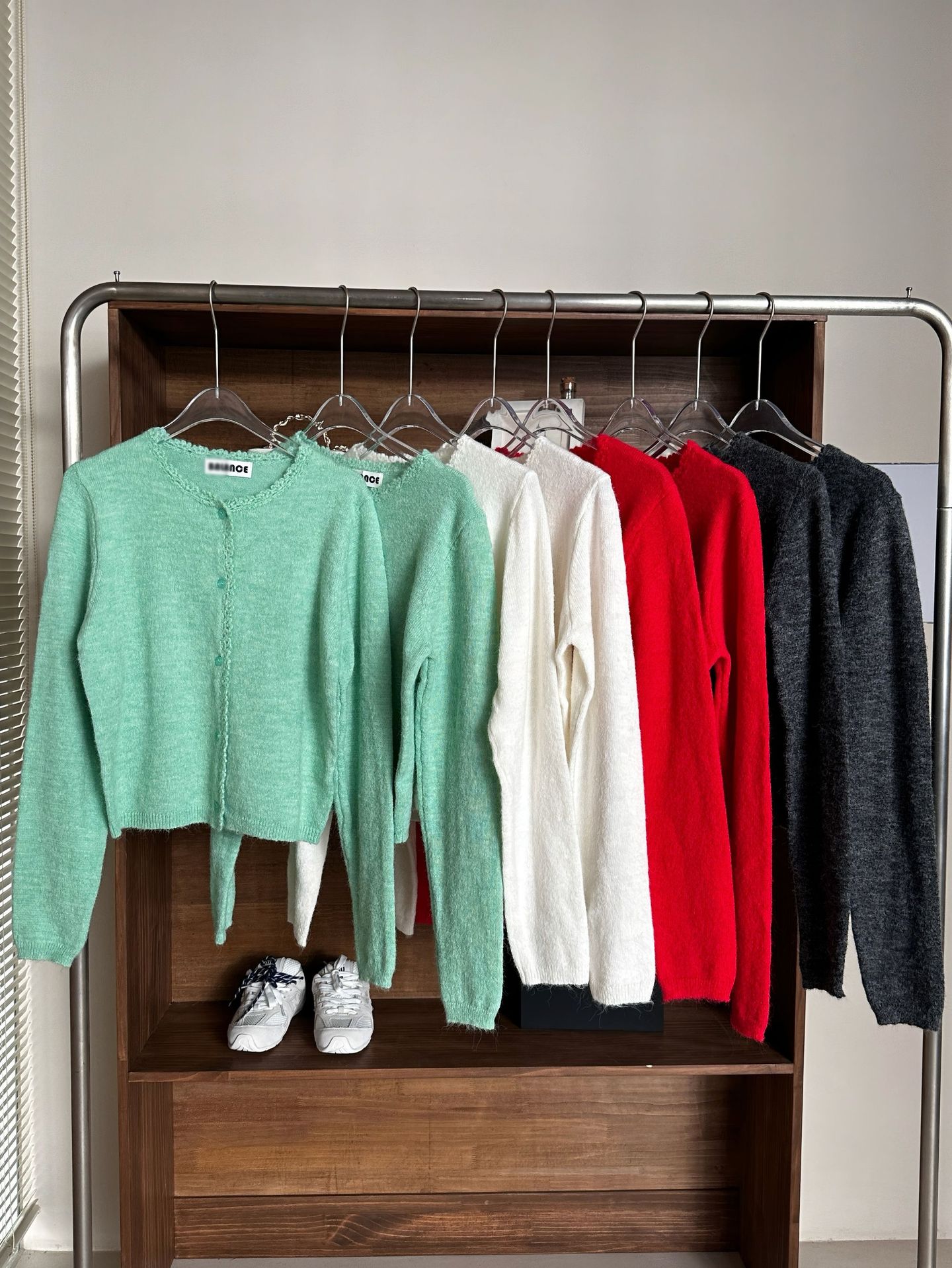 재고 한국 동대문 단색 얇은 니트 스웨터 2025 봄 여성 크루넥 싱글 브레스트 카디건 발란 * e