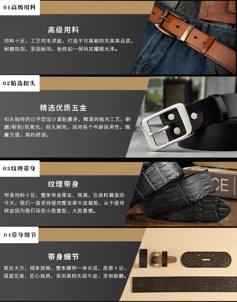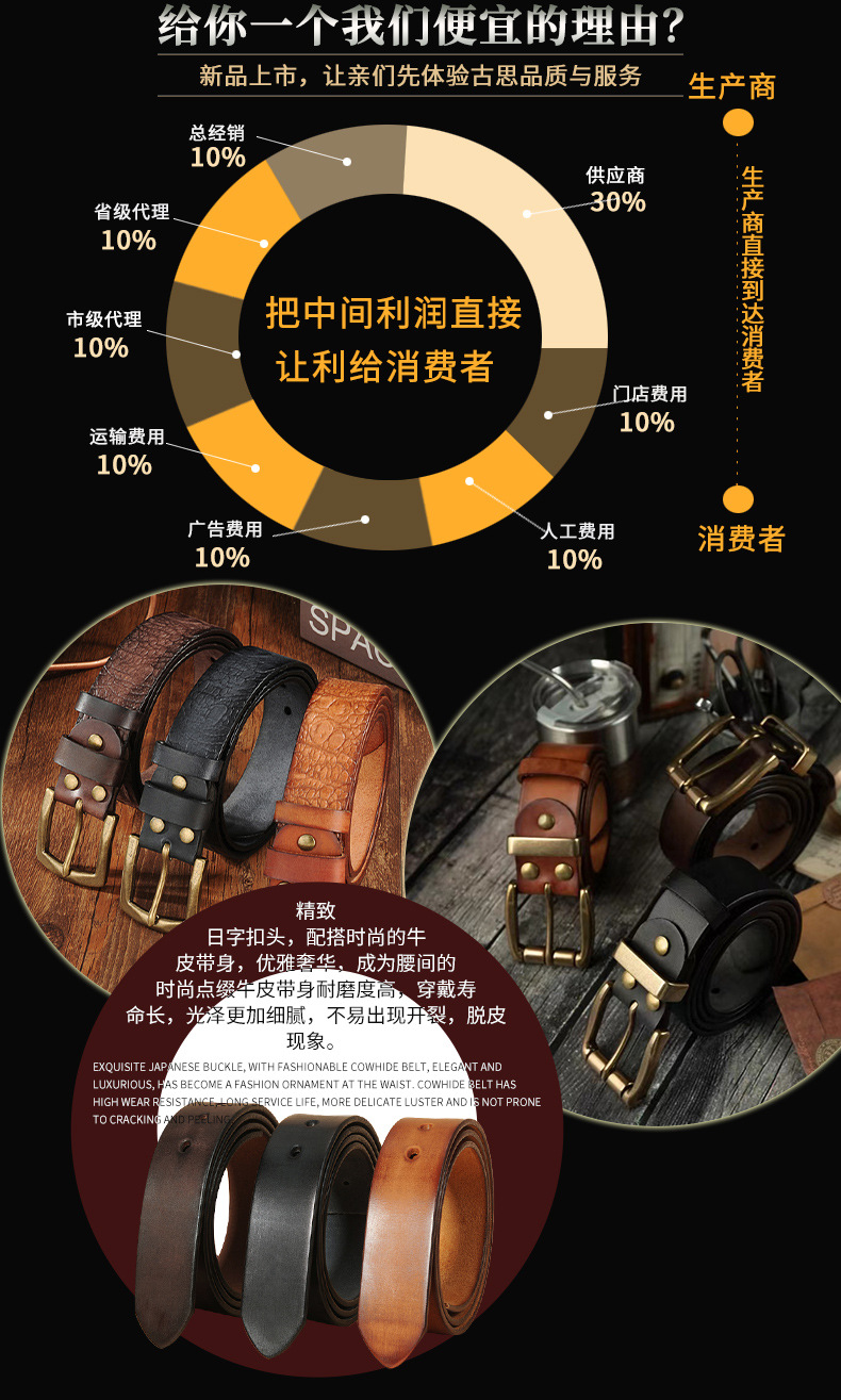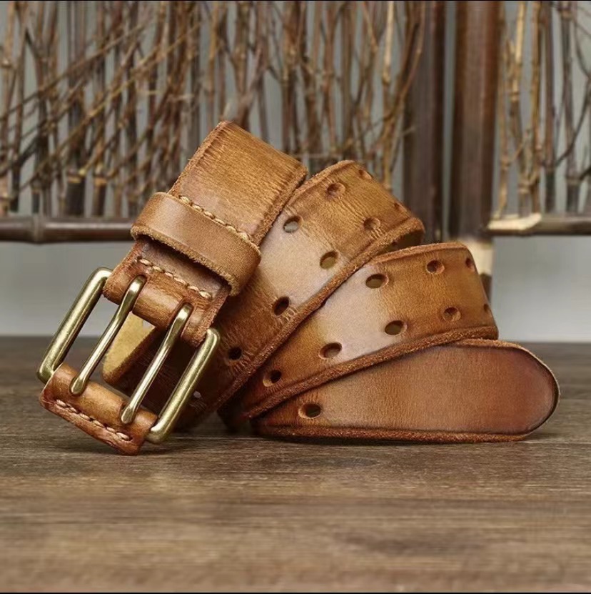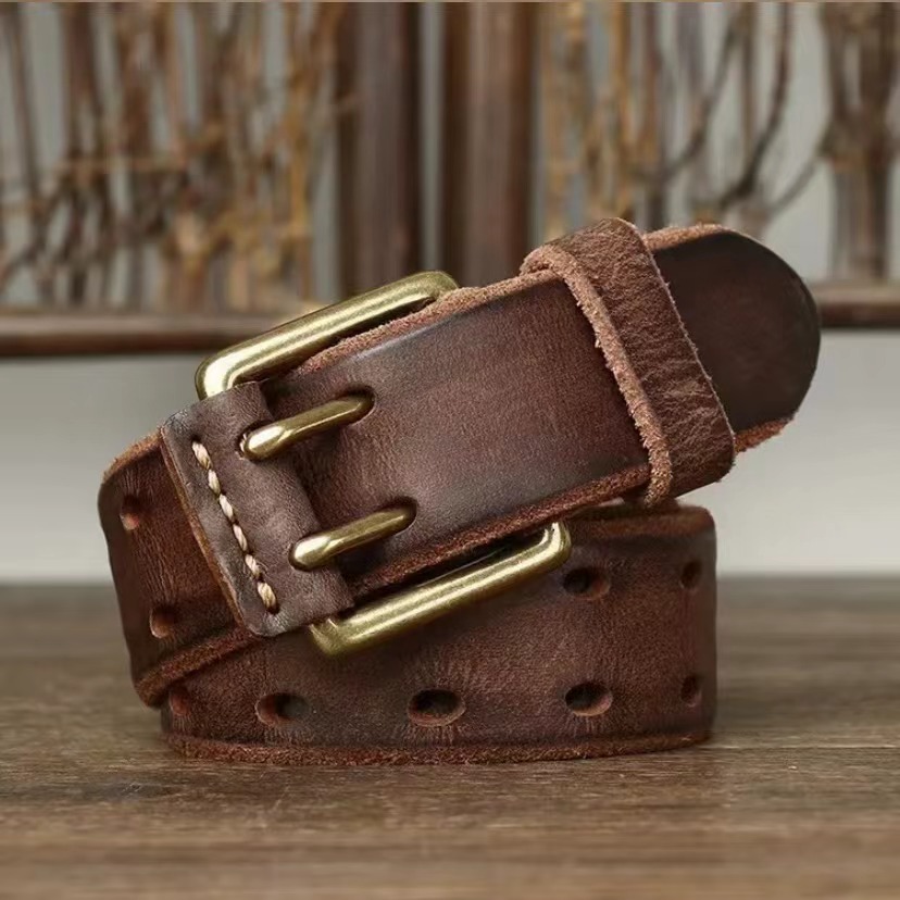 제조업체 재고 1등급 가죽 남성용 천연 가죽 구리 버클 이중 핀 레트로 벨트 비즈니스 스타일 남성용스토어 가기
