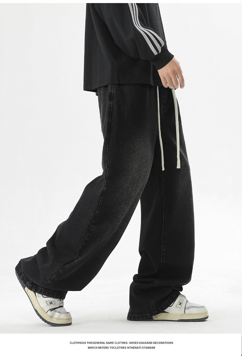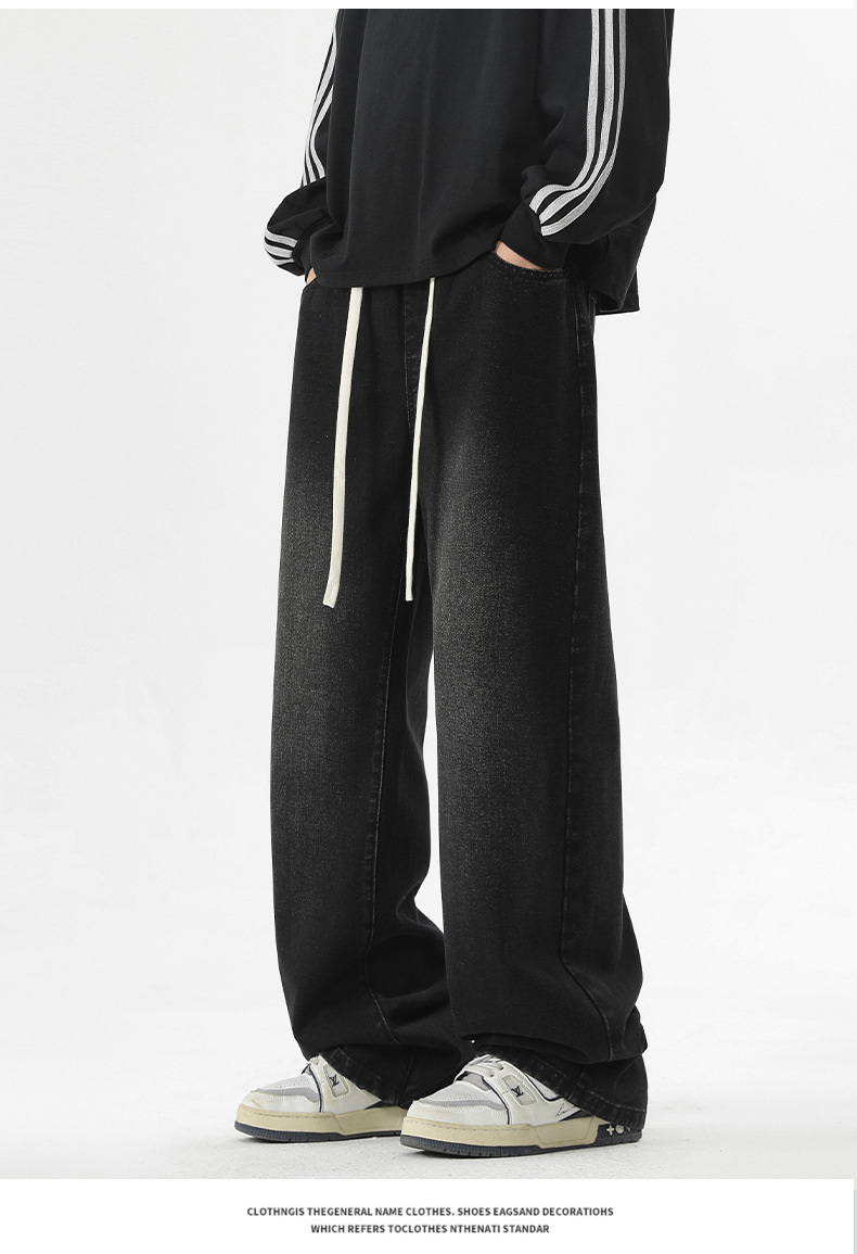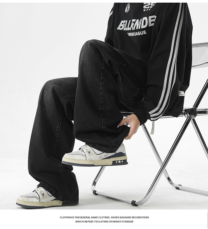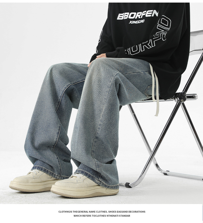청바지 봄과 가을 새로운 조수 브랜드 미국 하이 스트리트 복고풍 씻은 스트레이트 다리 바지 남성 머리카락