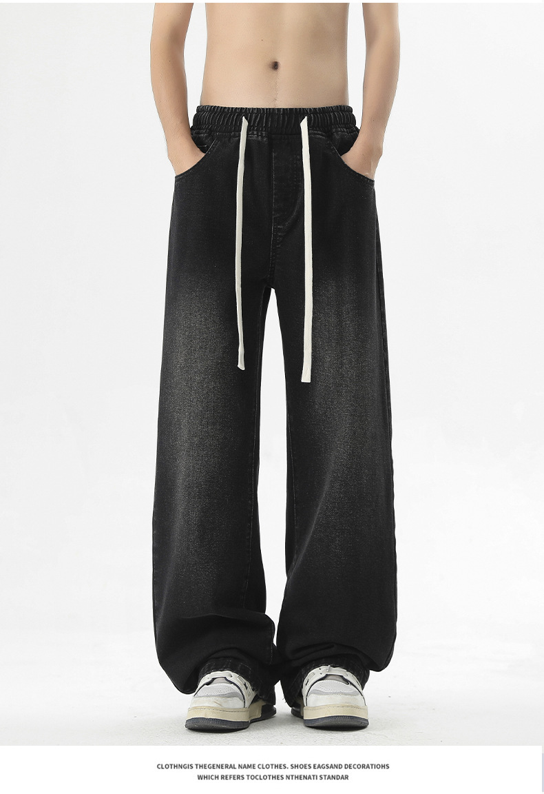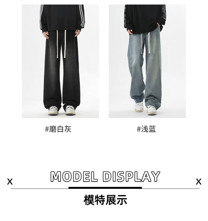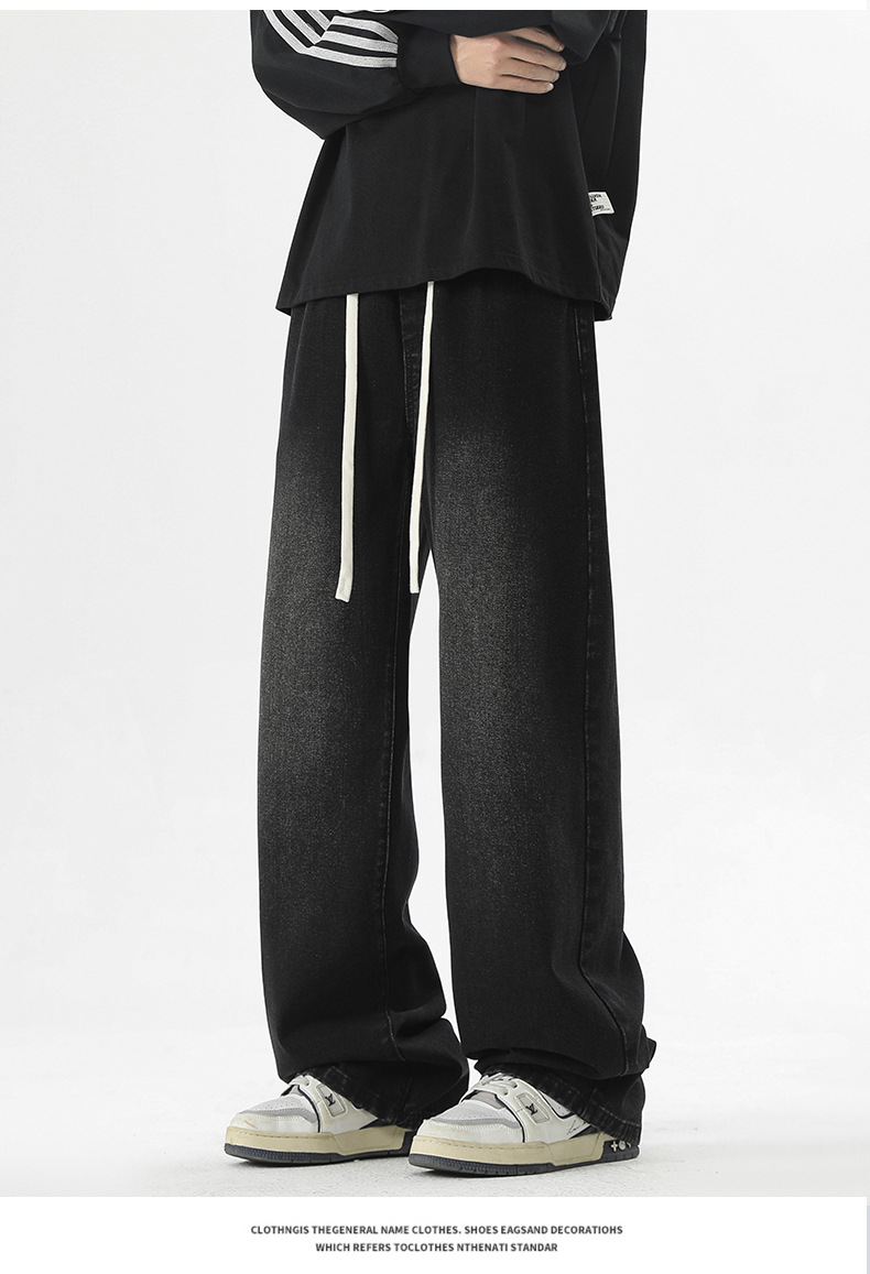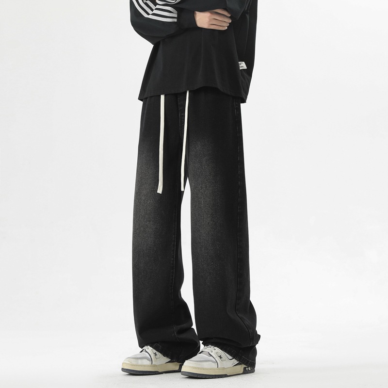 청바지 봄과 가을 새로운 조수 브랜드 미국 하이 스트리트 복고풍 씻은 스트레이트 다리 바지 남성 머리카락
