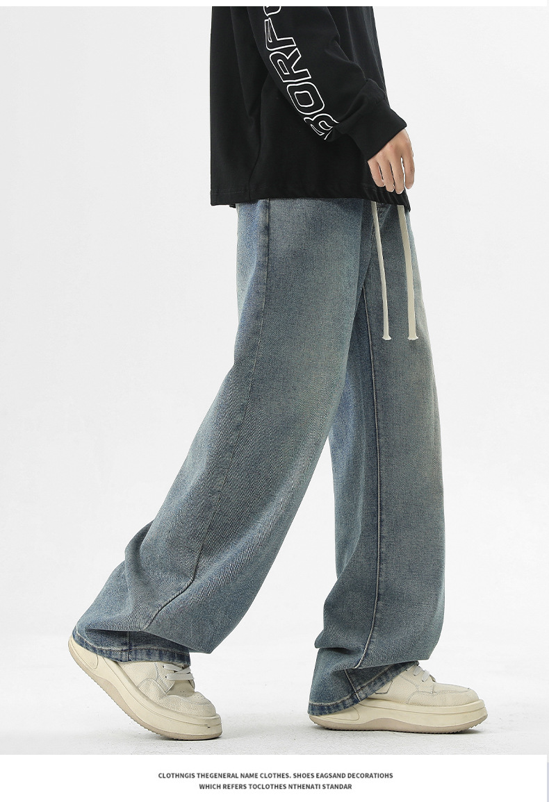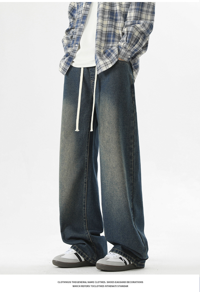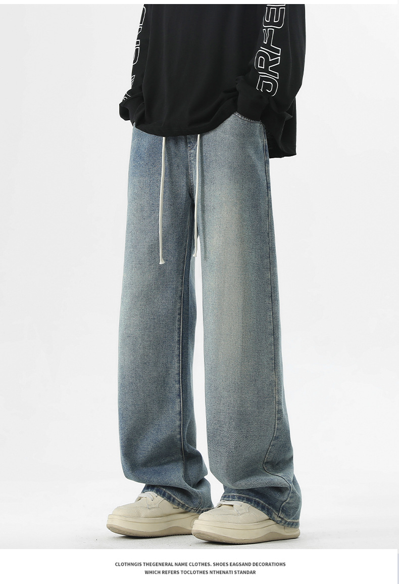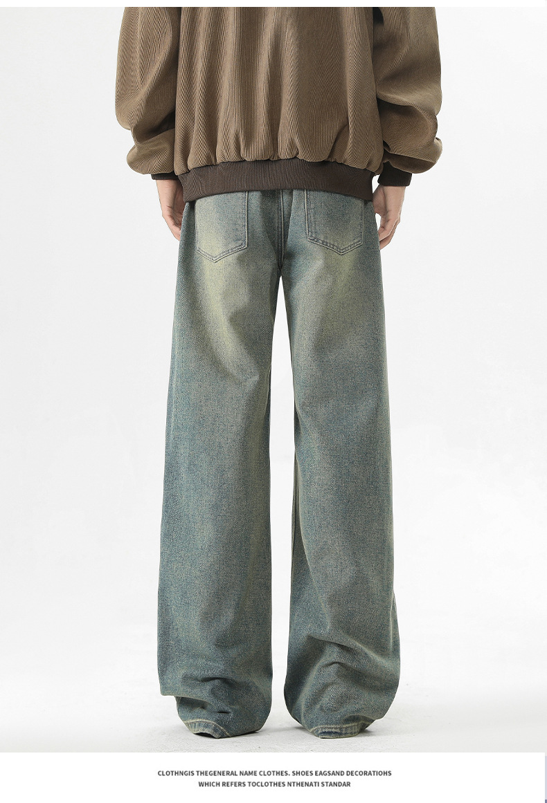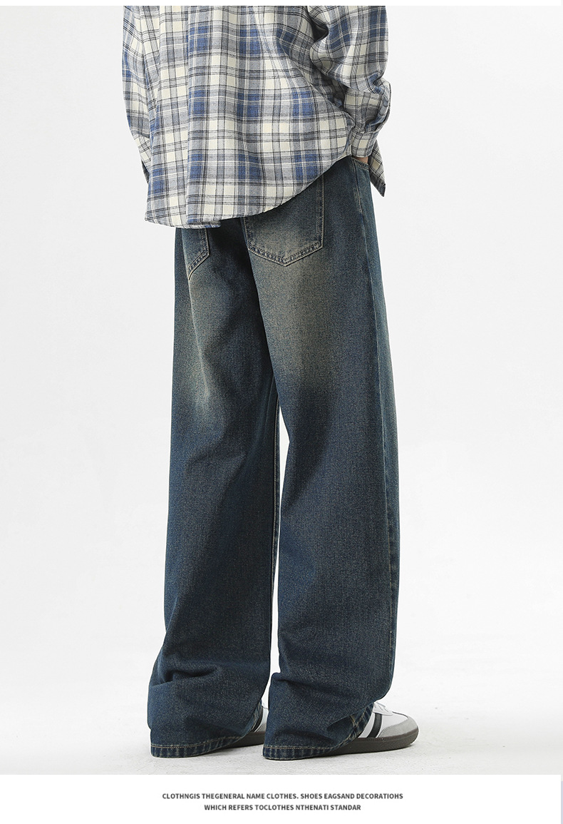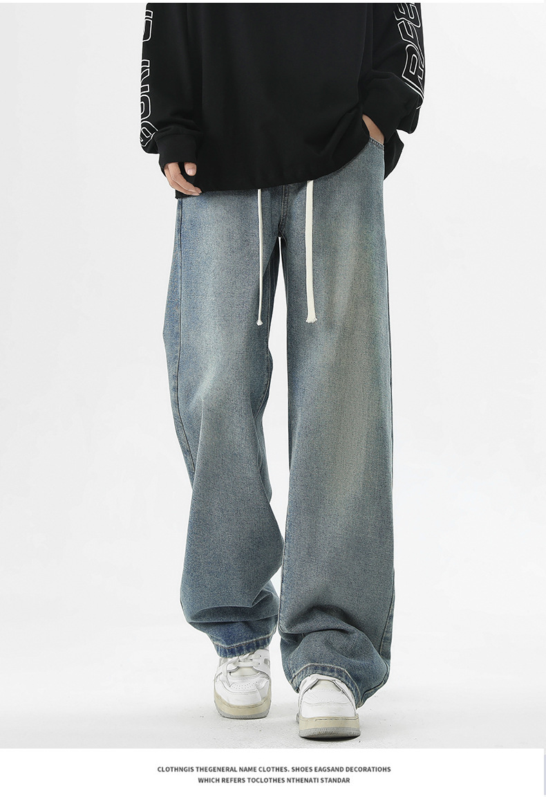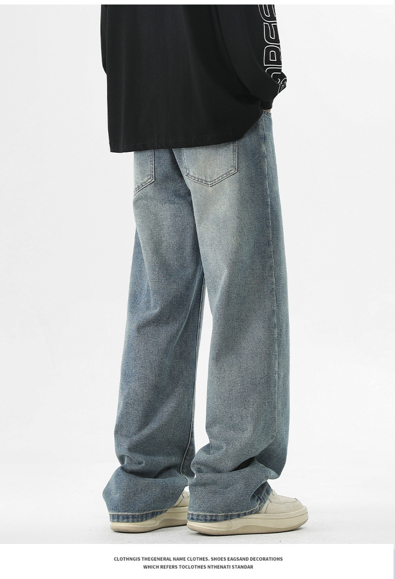 청바지 봄과 가을 새로운 조수 브랜드 미국 하이 스트리트 복고풍 씻은 스트레이트 다리 바지 남성 머리카락스토어 가기