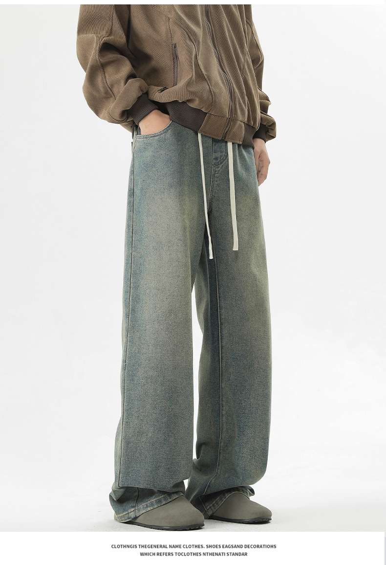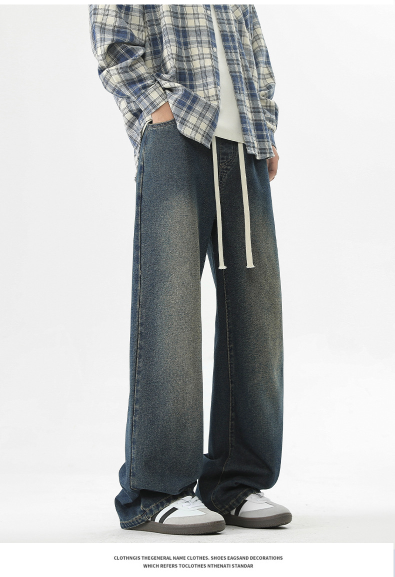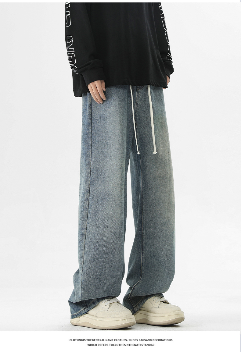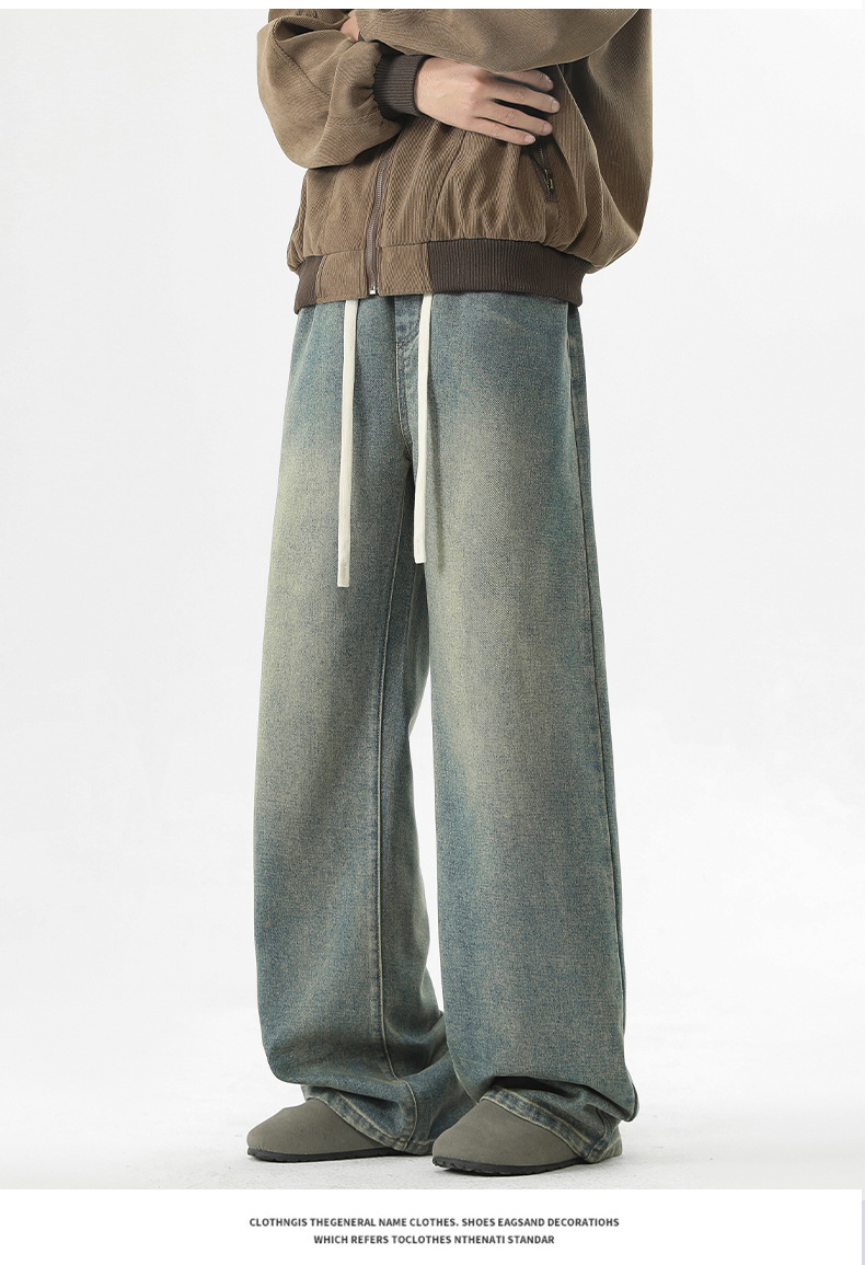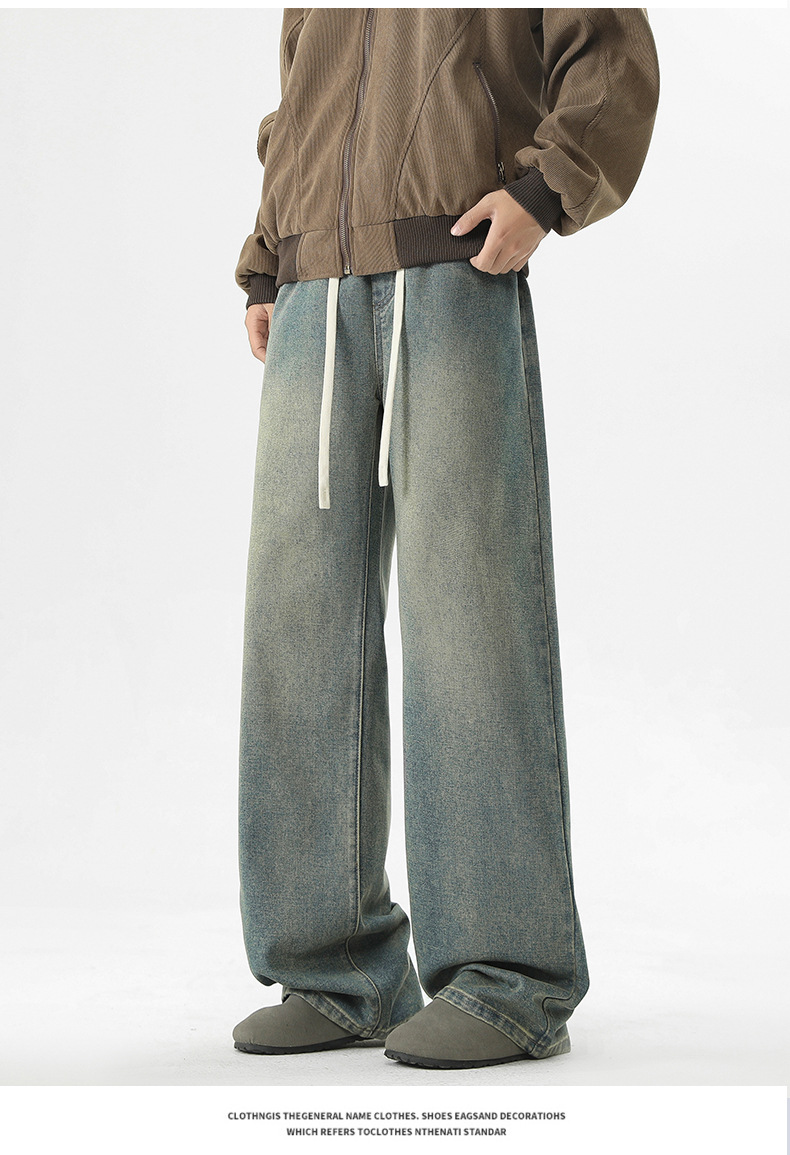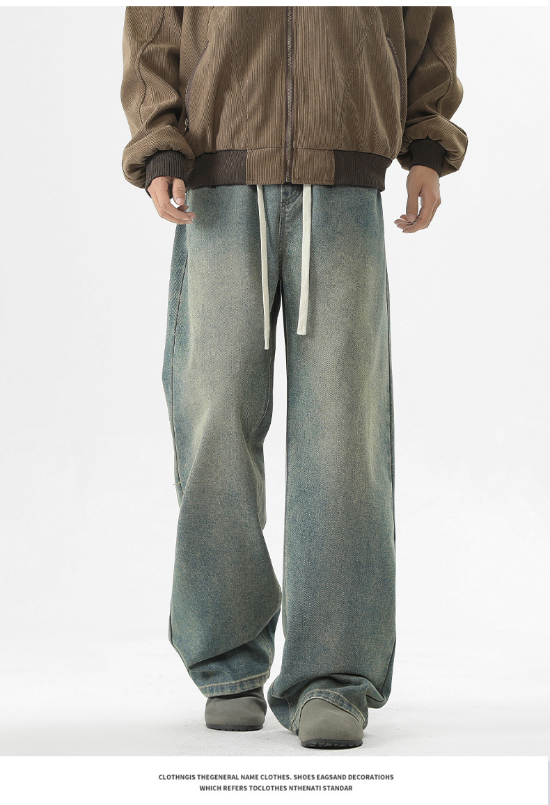 청바지 봄과 가을 새로운 조수 브랜드 미국 하이 스트리트 복고풍 씻은 스트레이트 다리 바지 남성 머리카락스토어 가기