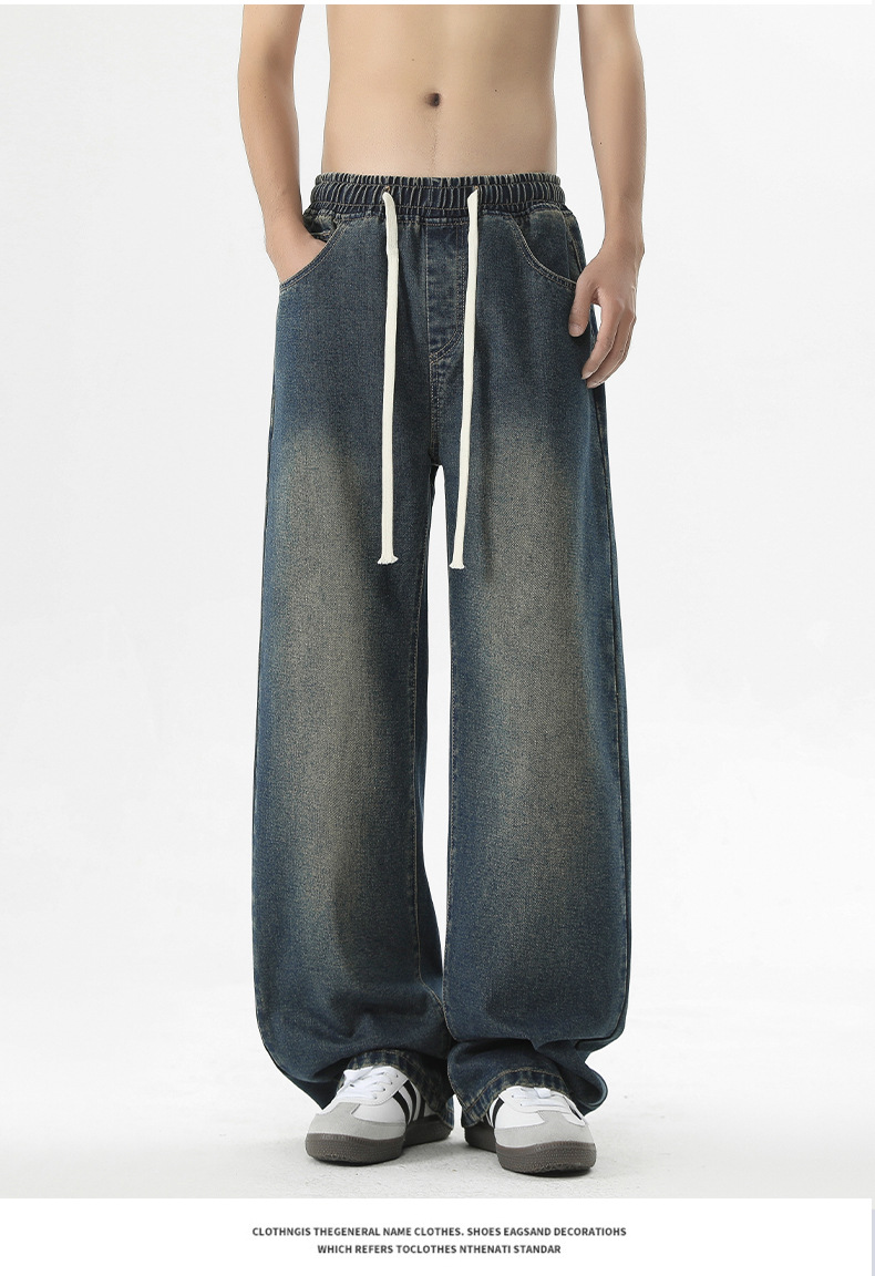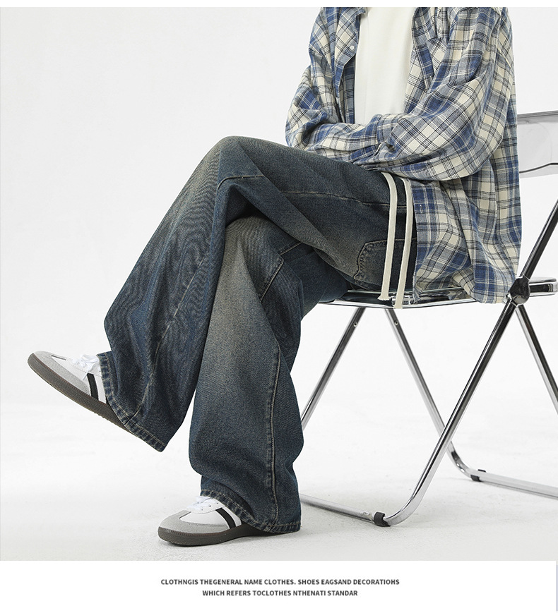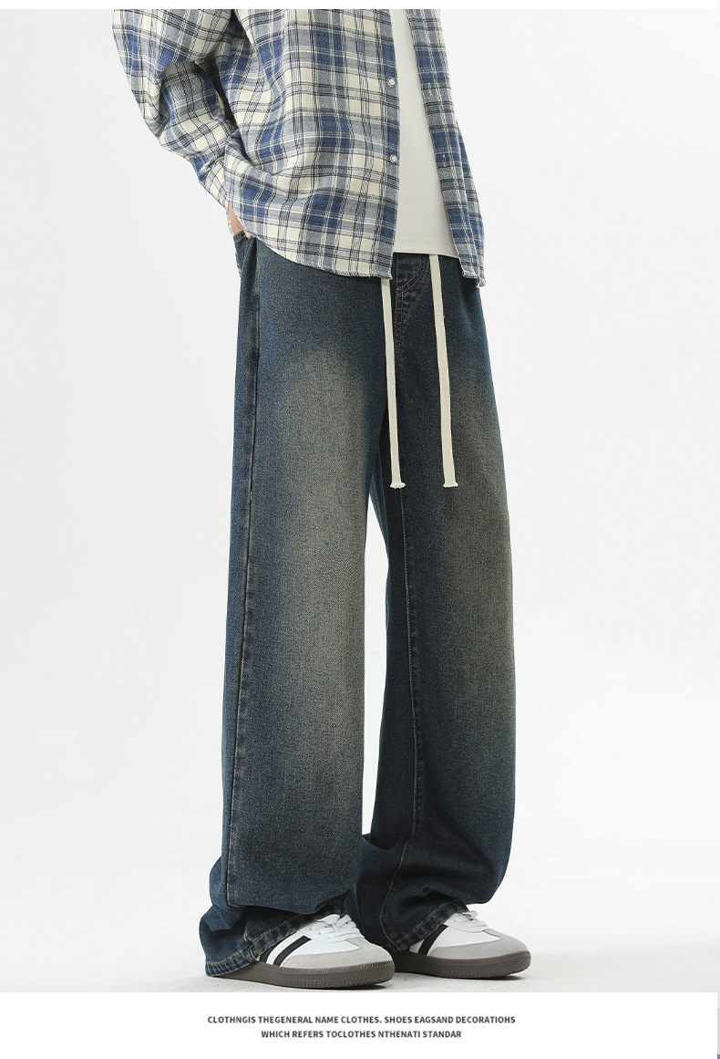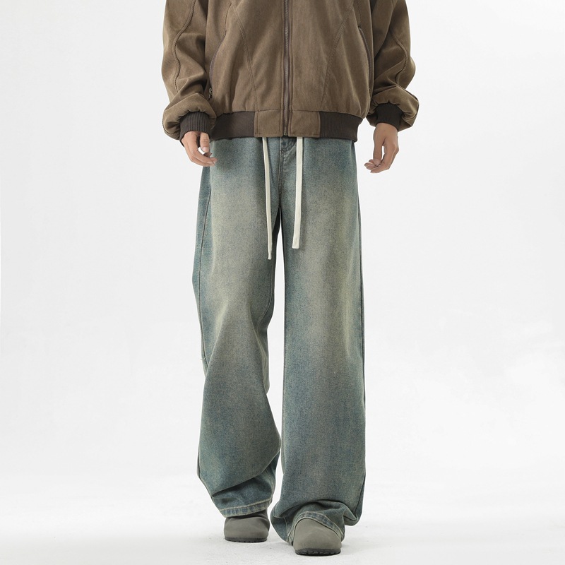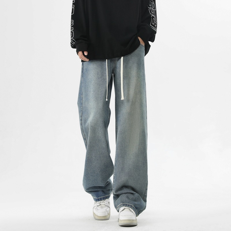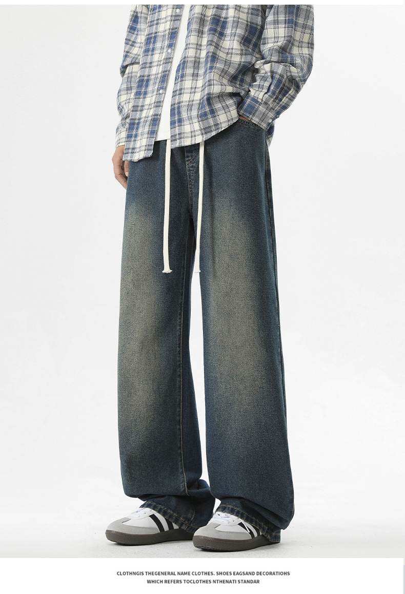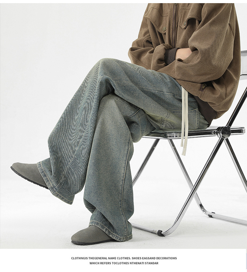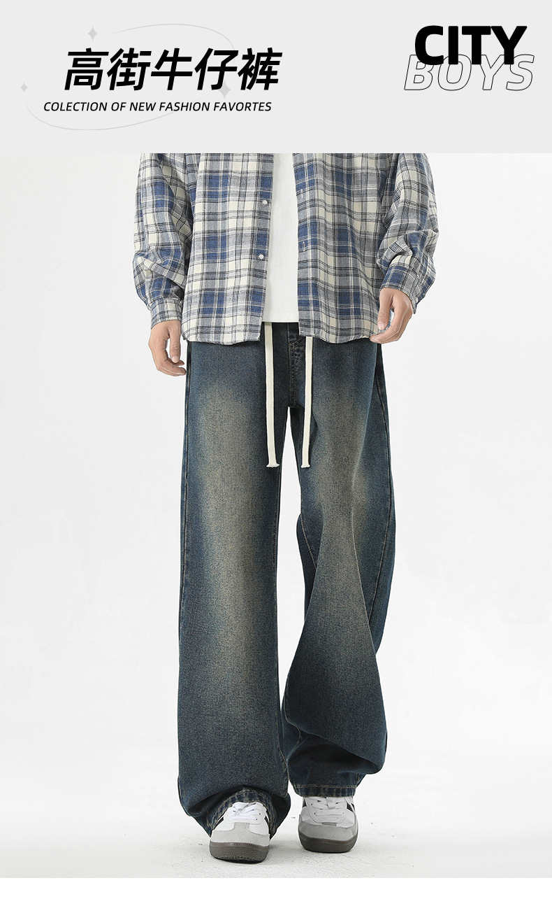 청바지 봄과 가을 새로운 조수 브랜드 미국 하이 스트리트 복고풍 씻은 스트레이트 다리 바지 남성 머리카락스토어 가기
