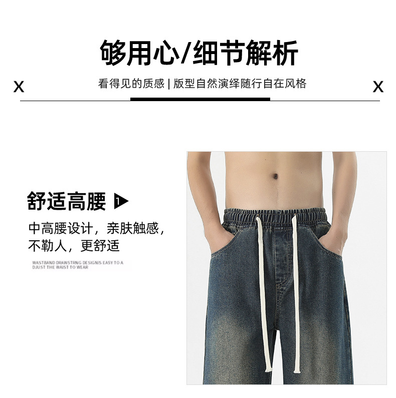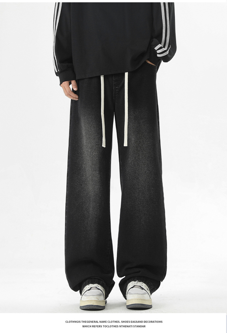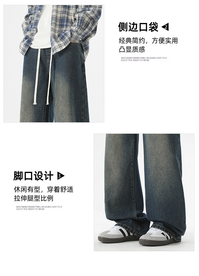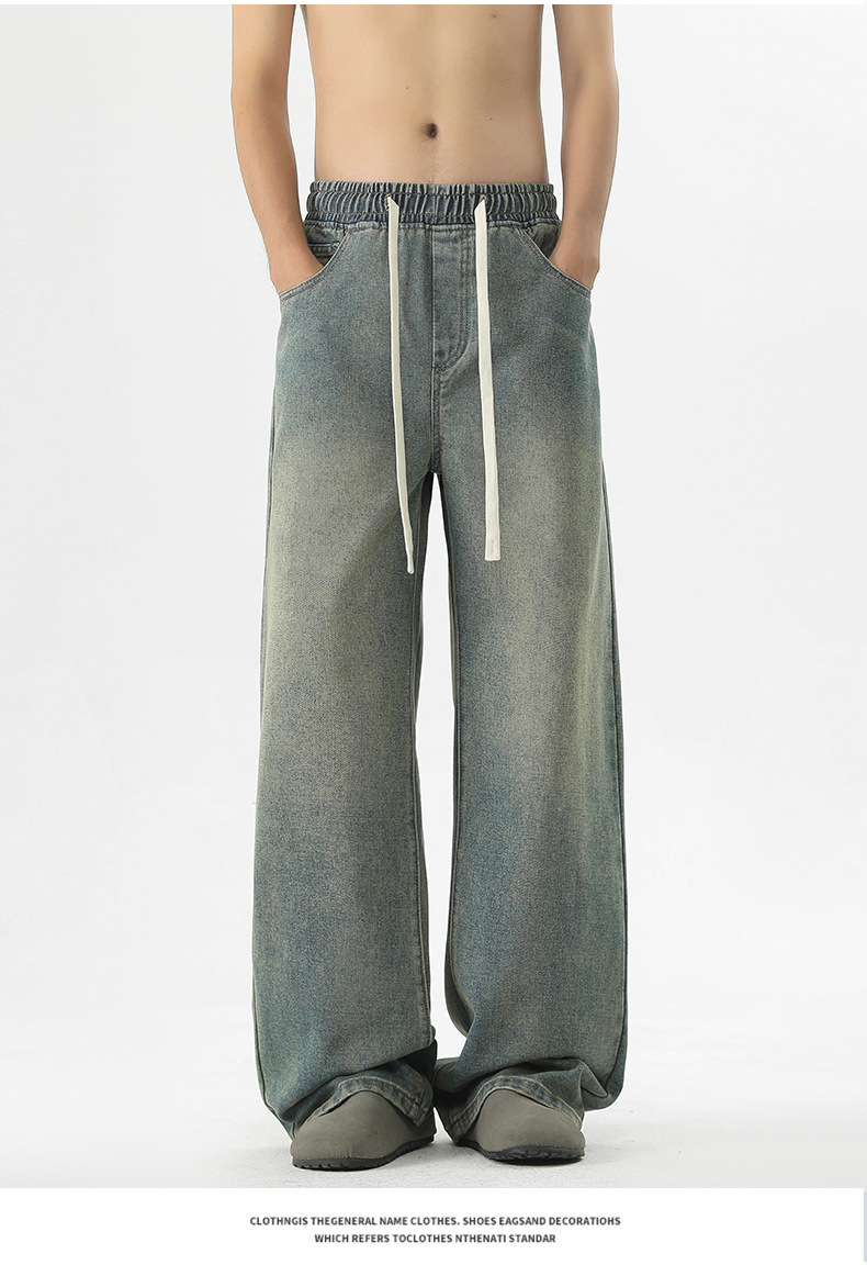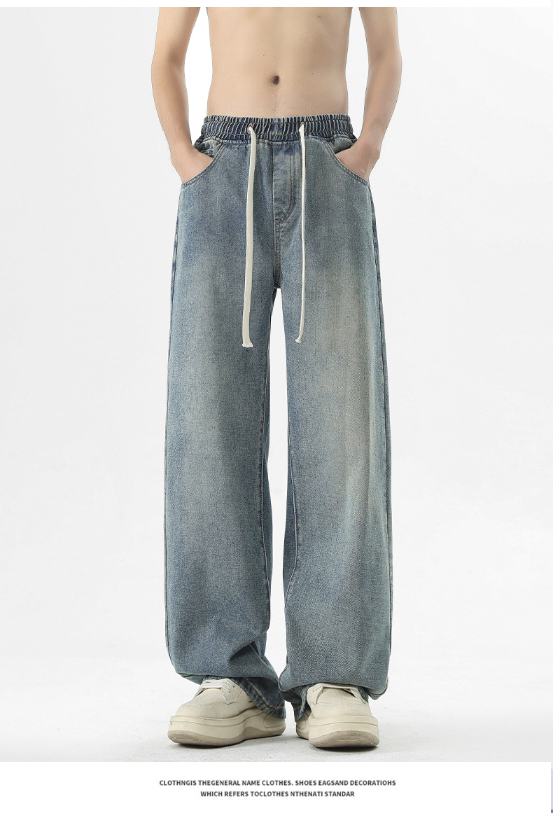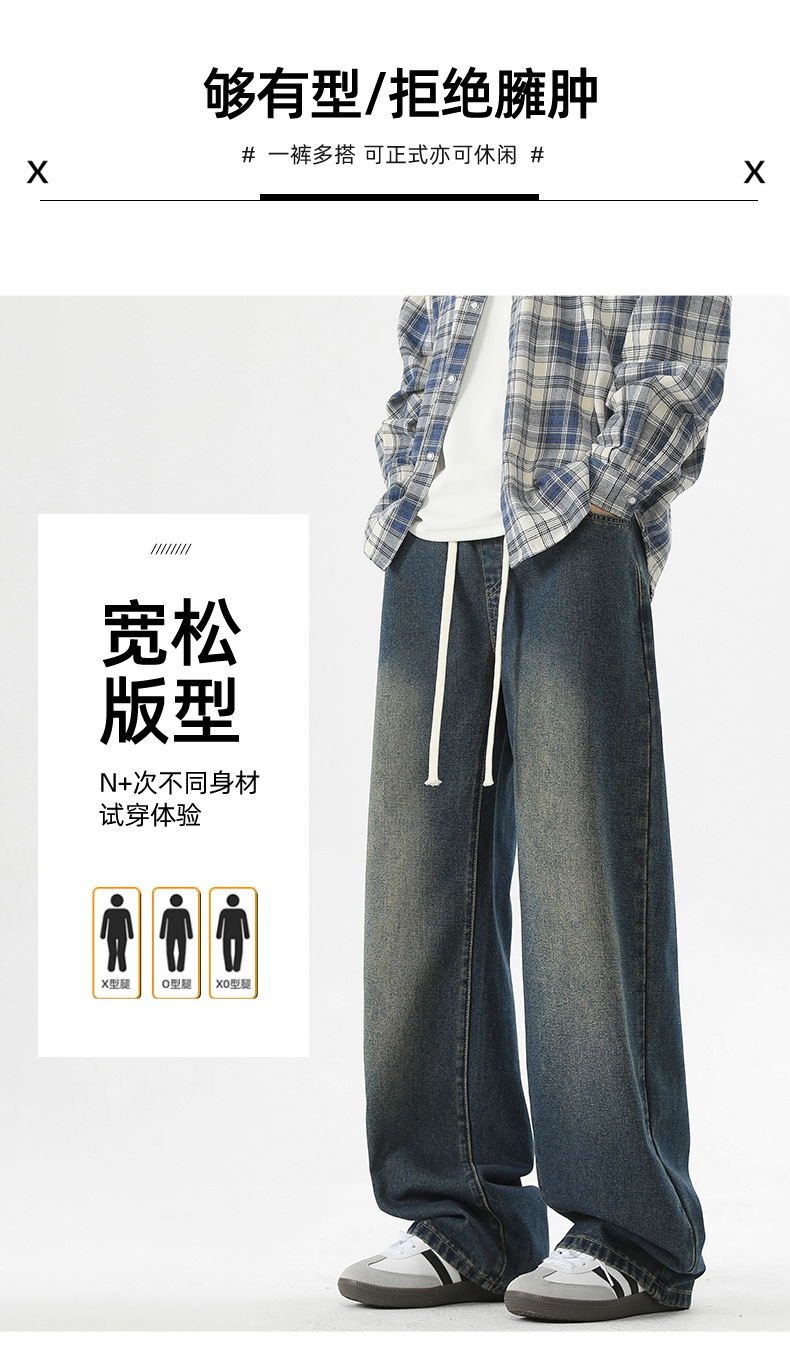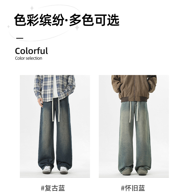 청바지 봄과 가을 새로운 조수 브랜드 미국 하이 스트리트 복고풍 씻은 스트레이트 다리 바지 남성 머리카락스토어 가기