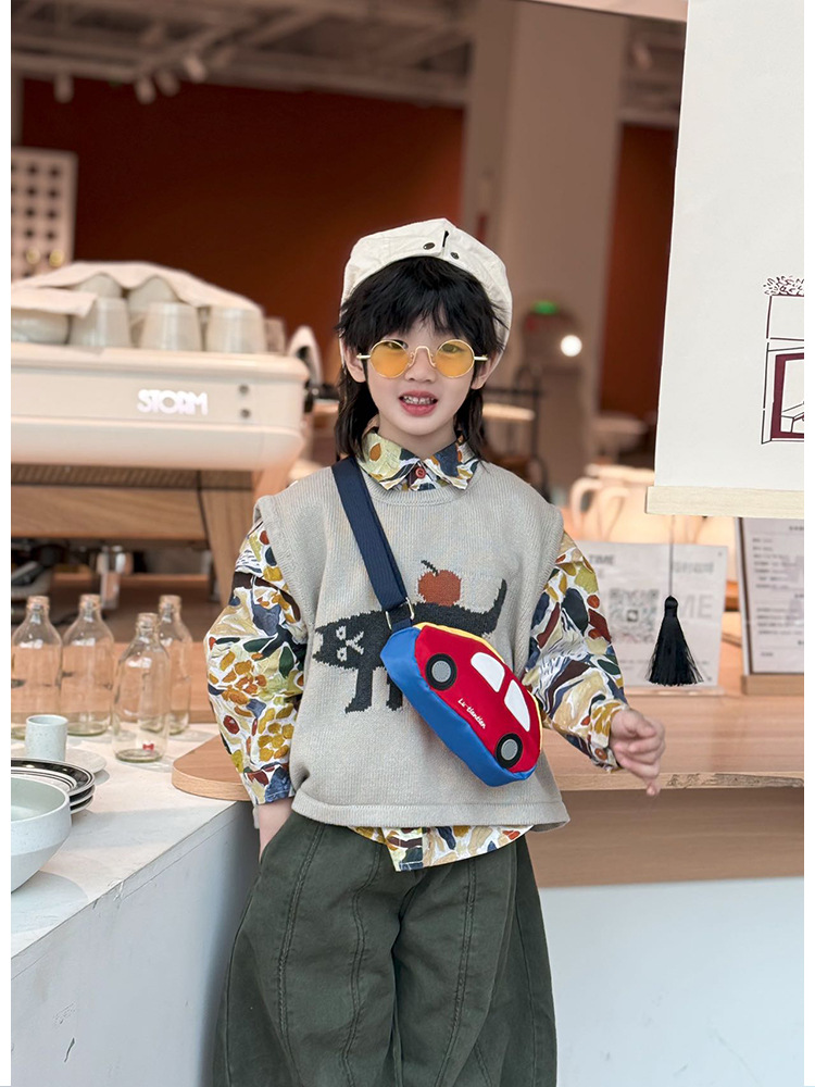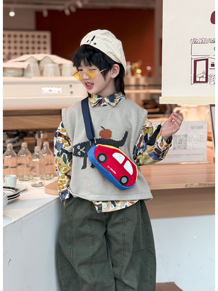 어린이 자동차 모양의 크로스 바디 백 작은 소년 가슴 가방 귀여운 서양식 동전 지갑 2025 새로운 한국 스타일 허리 가방스토어 가기