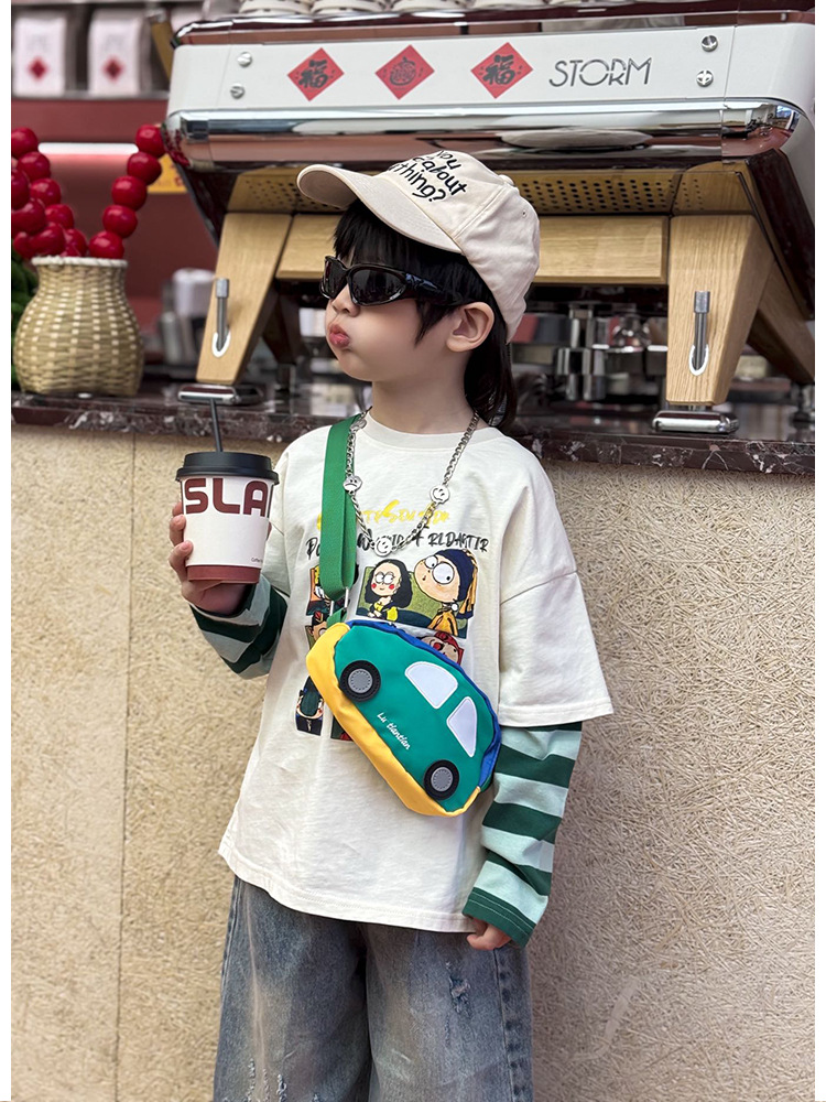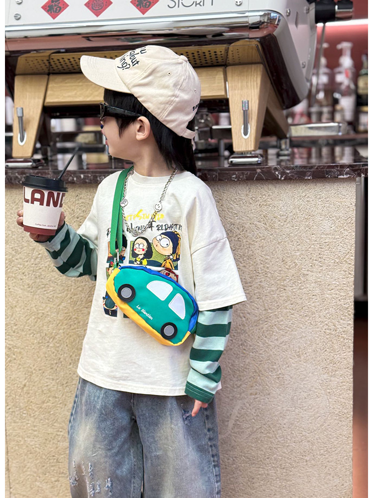 어린이 자동차 모양의 크로스 바디 백 작은 소년 가슴 가방 귀여운 서양식 동전 지갑 2025 새로운 한국 스타일 허리 가방