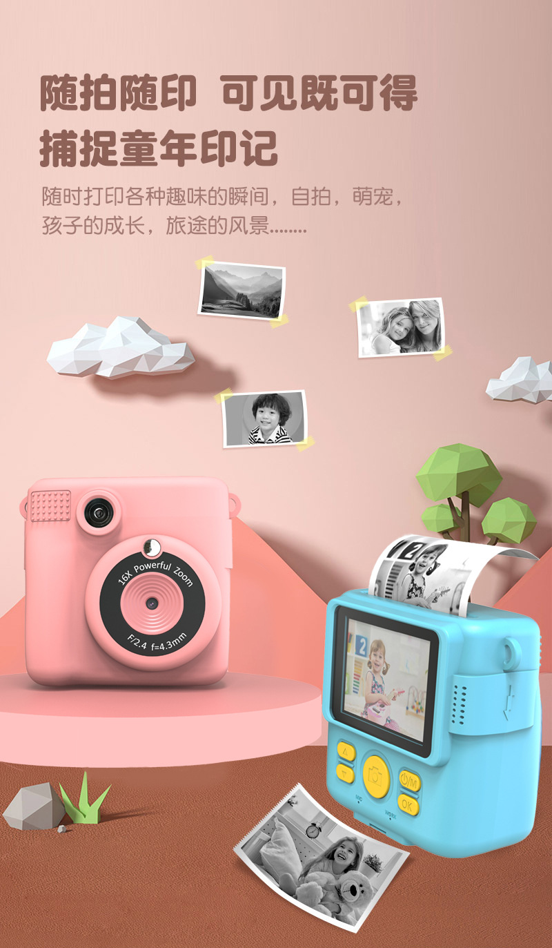 ABS-681 즉석카메라 어린이용 디지털 귀여운 만화 미니 사진 인화 디지털 고화질 인화 사진
