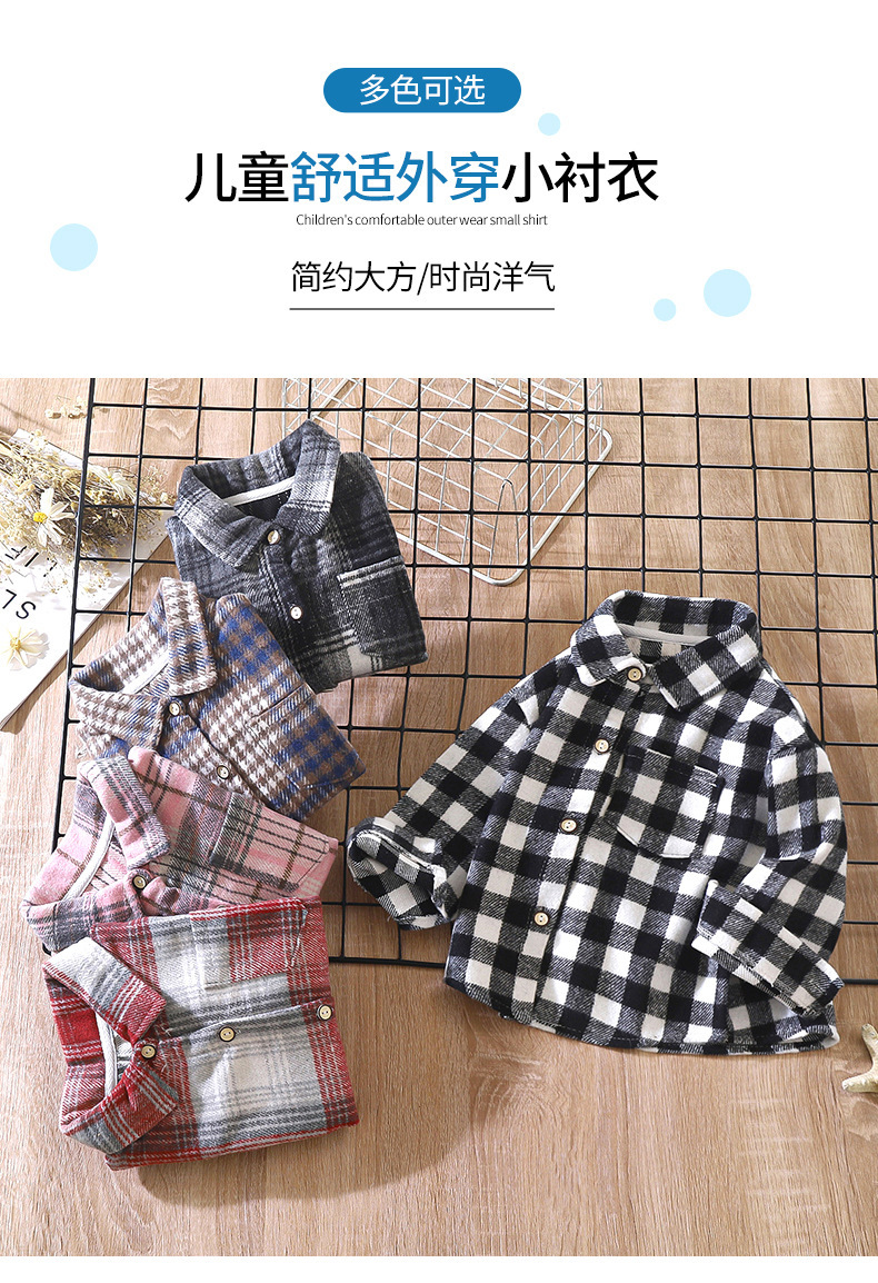남아 봄옷 남아 셔츠 긴팔 체크 셔츠 아동복 레트로 배색 라펠 탑