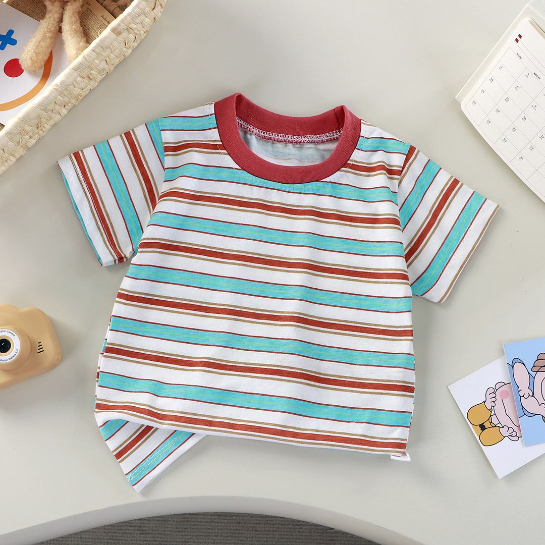 여름 새로운 어린이 반팔 티셔츠 코튼 소년 소녀 싱글 베이비 베이스 셔츠 도매 싱글 코트 아동복