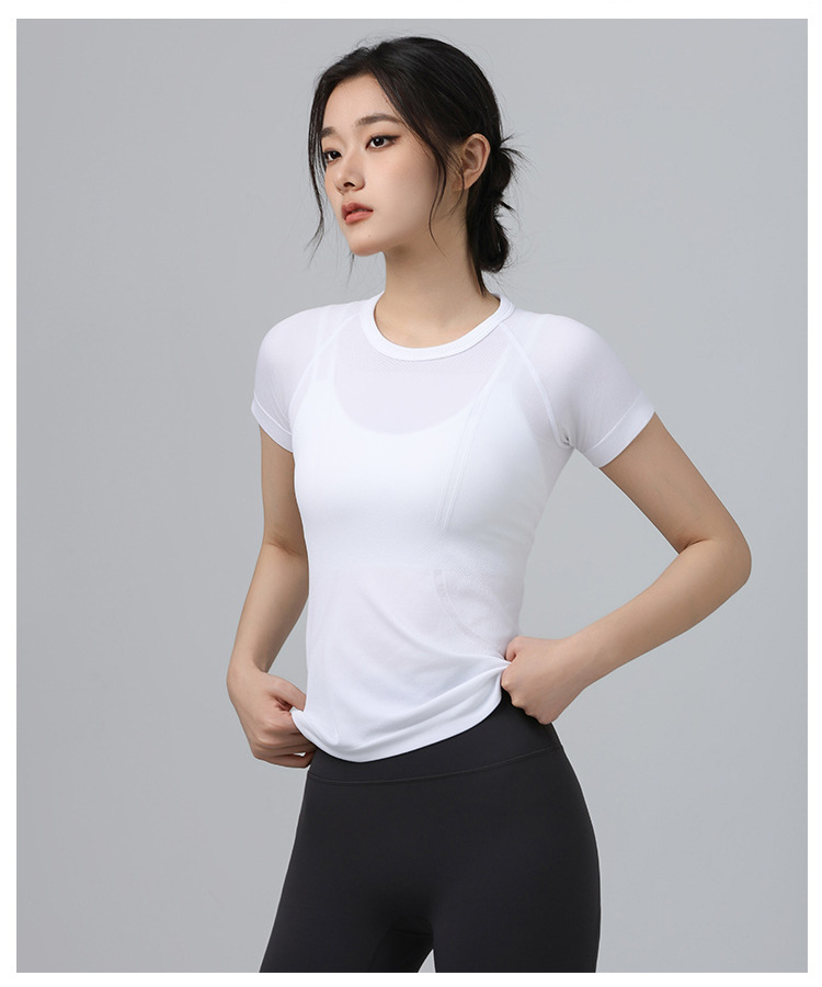 2025 새로운 슬림 핏 요가 세트 여성 스포츠 최고 통기성 달리기 훈련 피트니스 필라테스 반팔 티셔츠 여름스토어 가기
