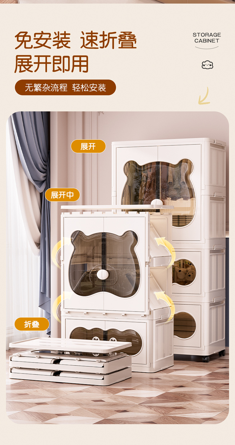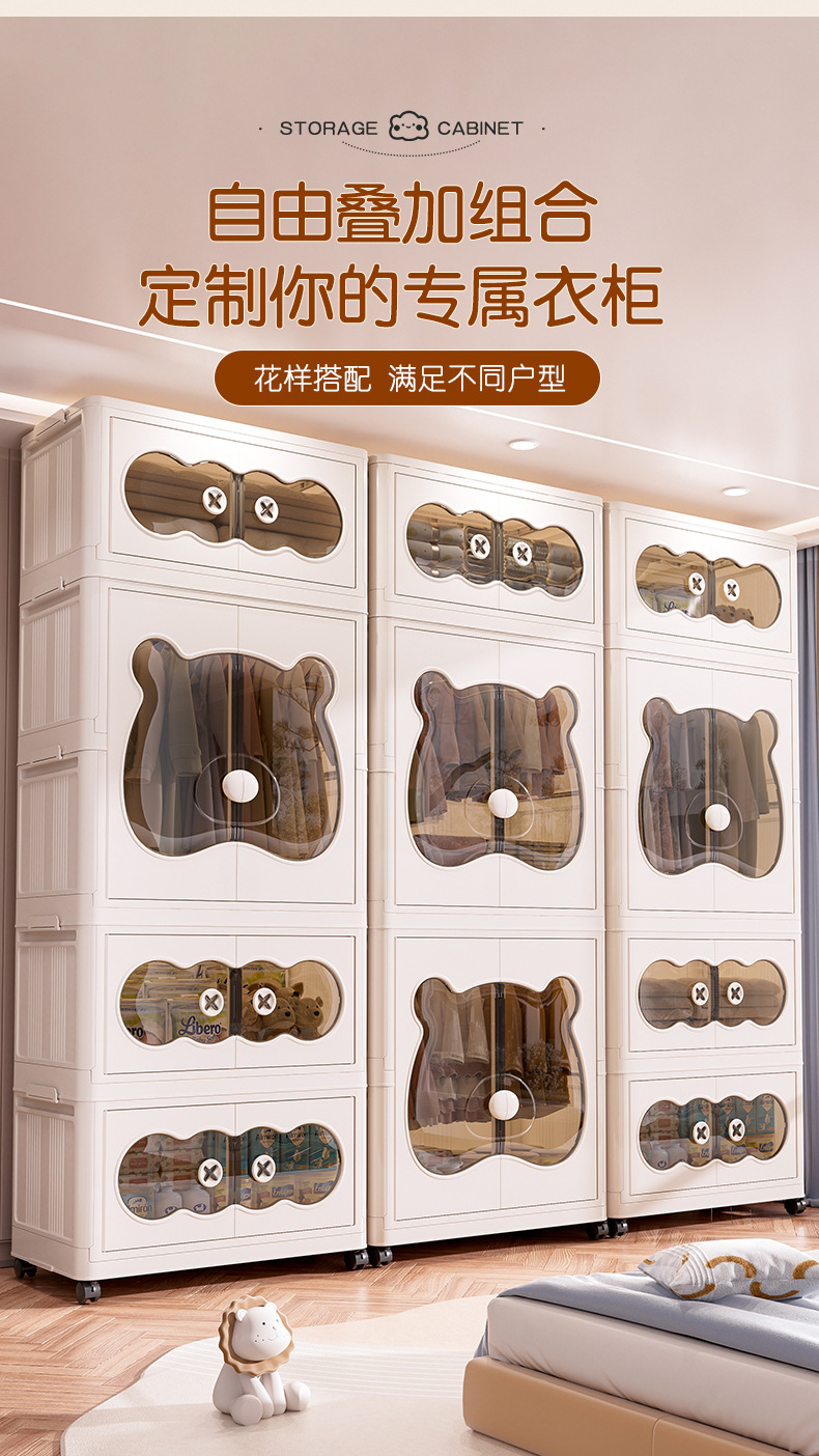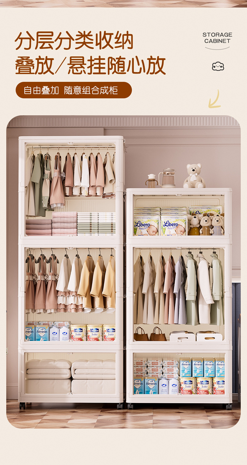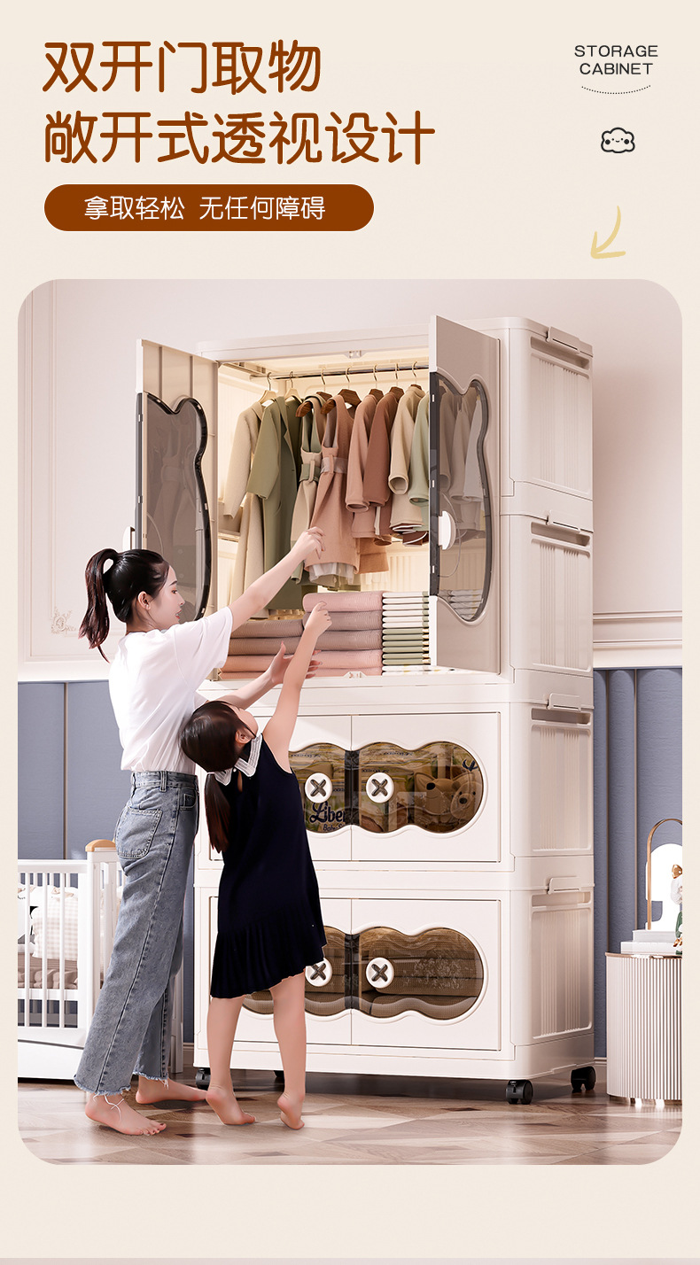 26년만에 새로 출시된 가정용 수납장, 설치 불필요, 접이식 아기옷 수납장, 양문형 수납장스토어 가기