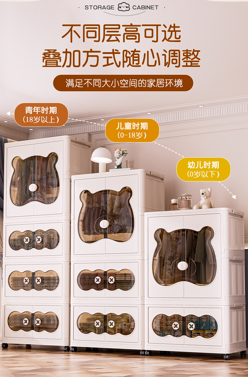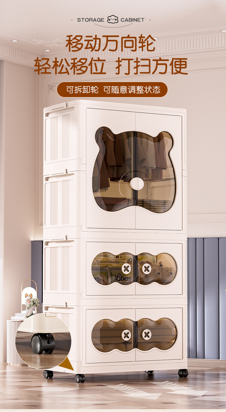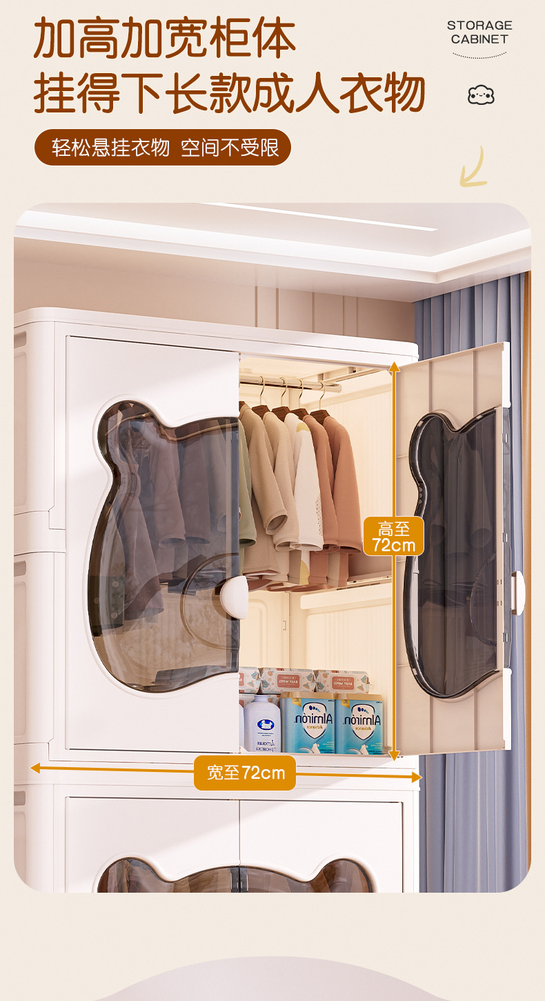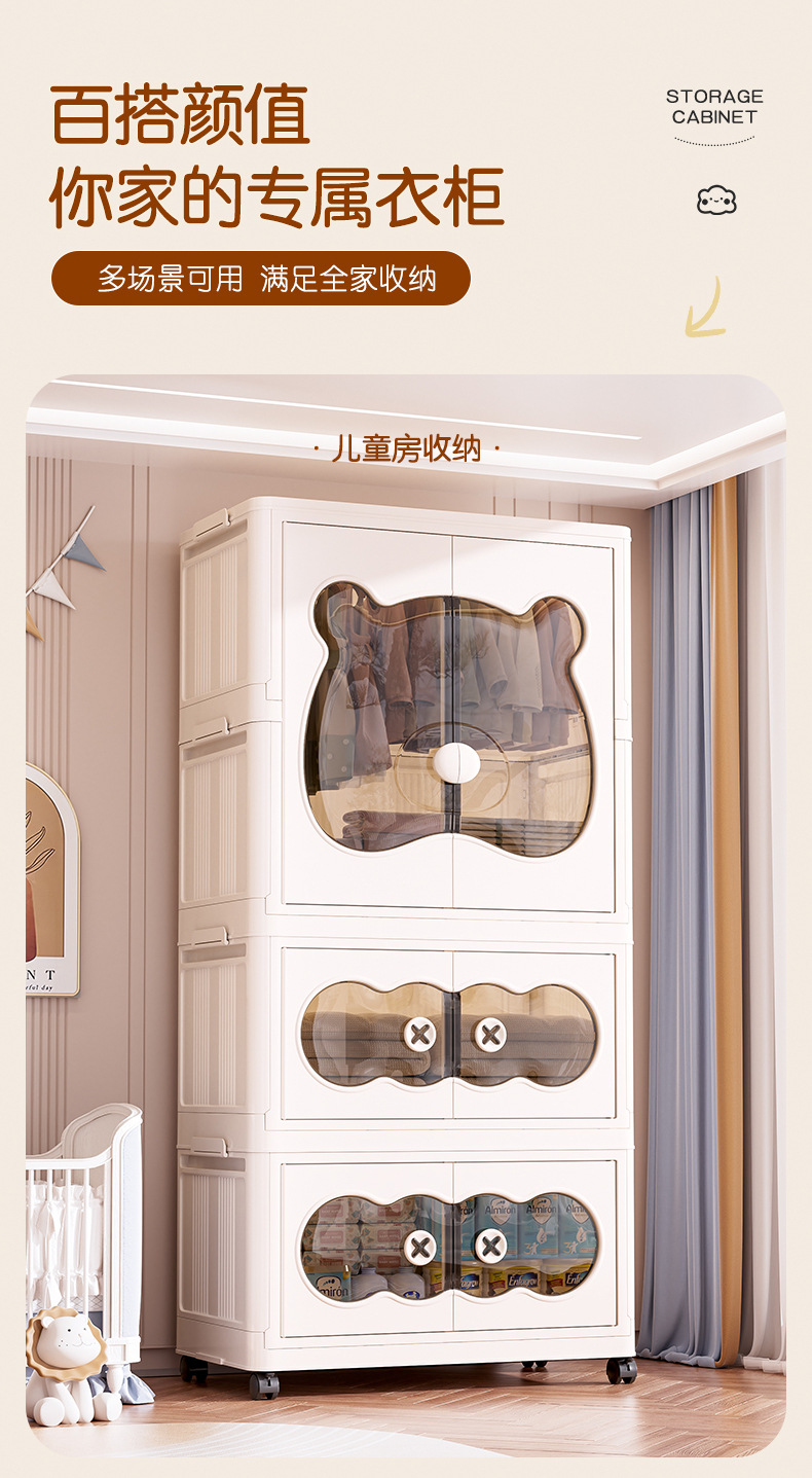 26년만에 새로 출시된 가정용 수납장, 설치 불필요, 접이식 아기옷 수납장, 양문형 수납장스토어 가기