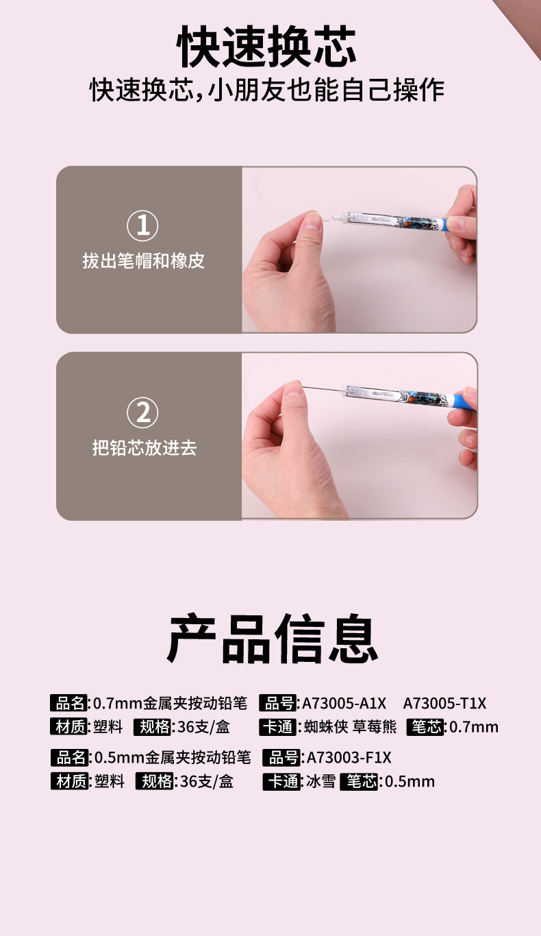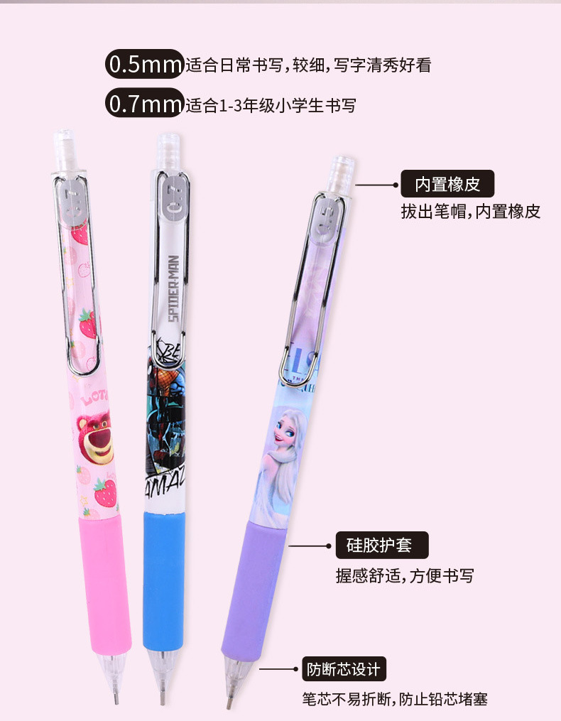 스파이더 맨 기계식 연필 HB 프레스 만화 0.7 자동 펜 높은 색상 가치 초등학생 0.5 선명하지 않은 연필 도매스토어 가기