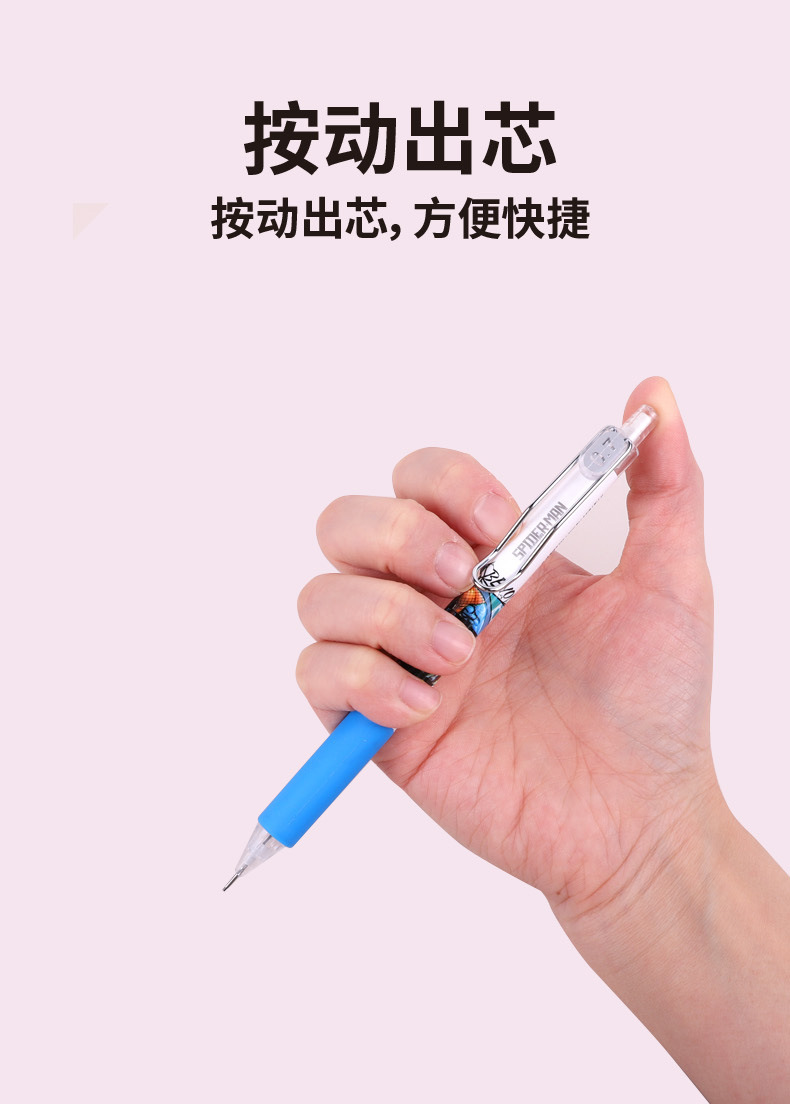 스파이더 맨 기계식 연필 HB 프레스 만화 0.7 자동 펜 높은 색상 가치 초등학생 0.5 선명하지 않은 연필 도매