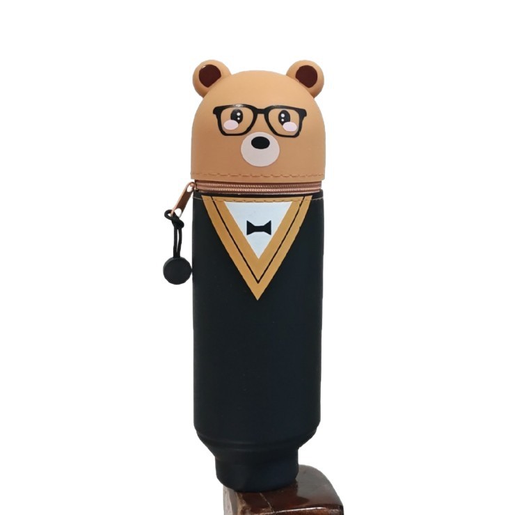 대외 무역 수출용 스티치 펜 홀더, 만화 실리콘 펜 케이스, 스탠드형 신축식 팬더 문구 필통, 쿠로미