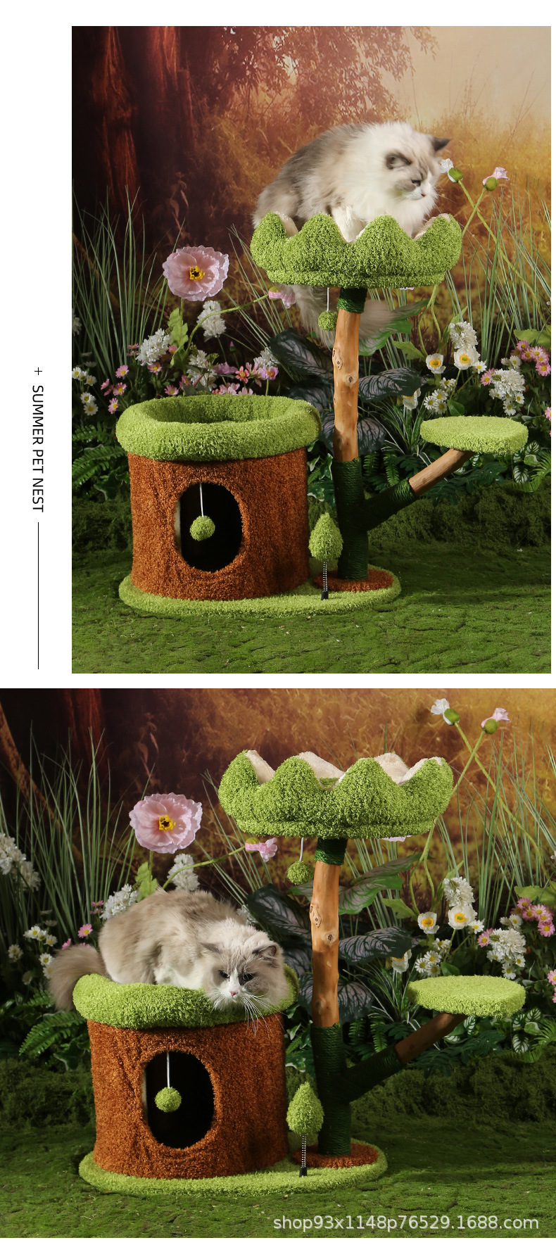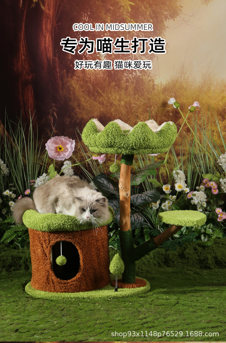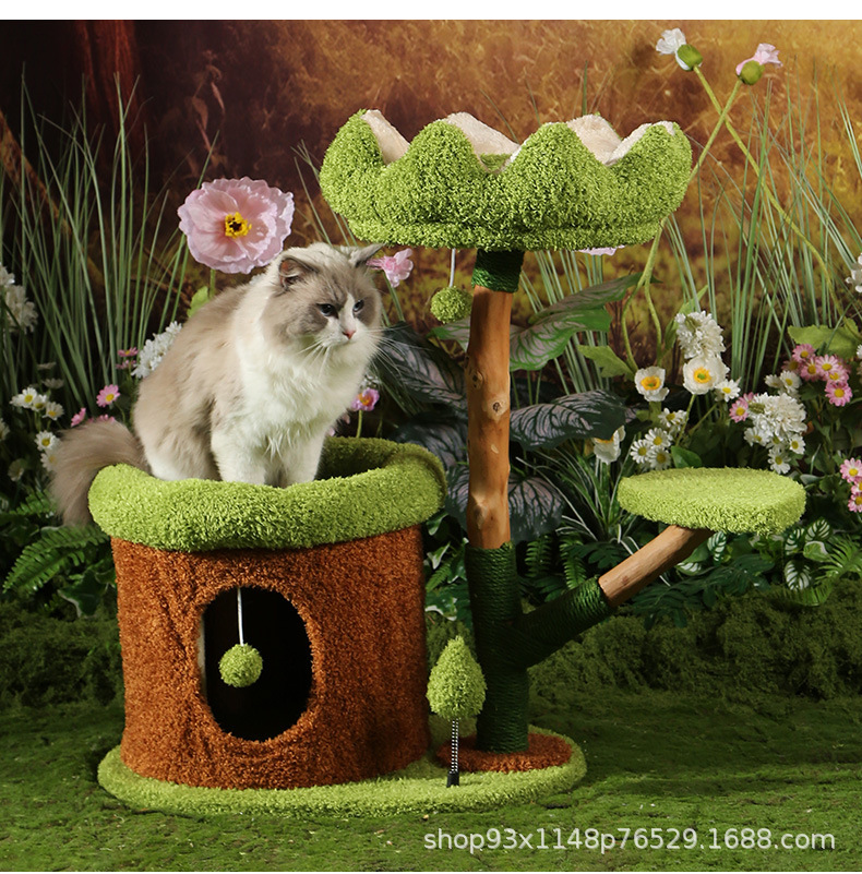 고양이 등반 랙 큰 숲 연꽃 고양이 둥지 등반 랙 고양이 둥지 통합 애완 동물 공원 단단한 나무 고양이 등반 랙 고양이 둥지