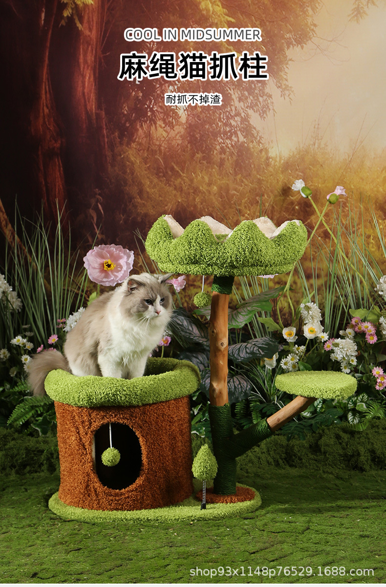 고양이 등반 랙 큰 숲 연꽃 고양이 둥지 등반 랙 고양이 둥지 통합 애완 동물 공원 단단한 나무 고양이 등반 랙 고양이 둥지스토어 가기