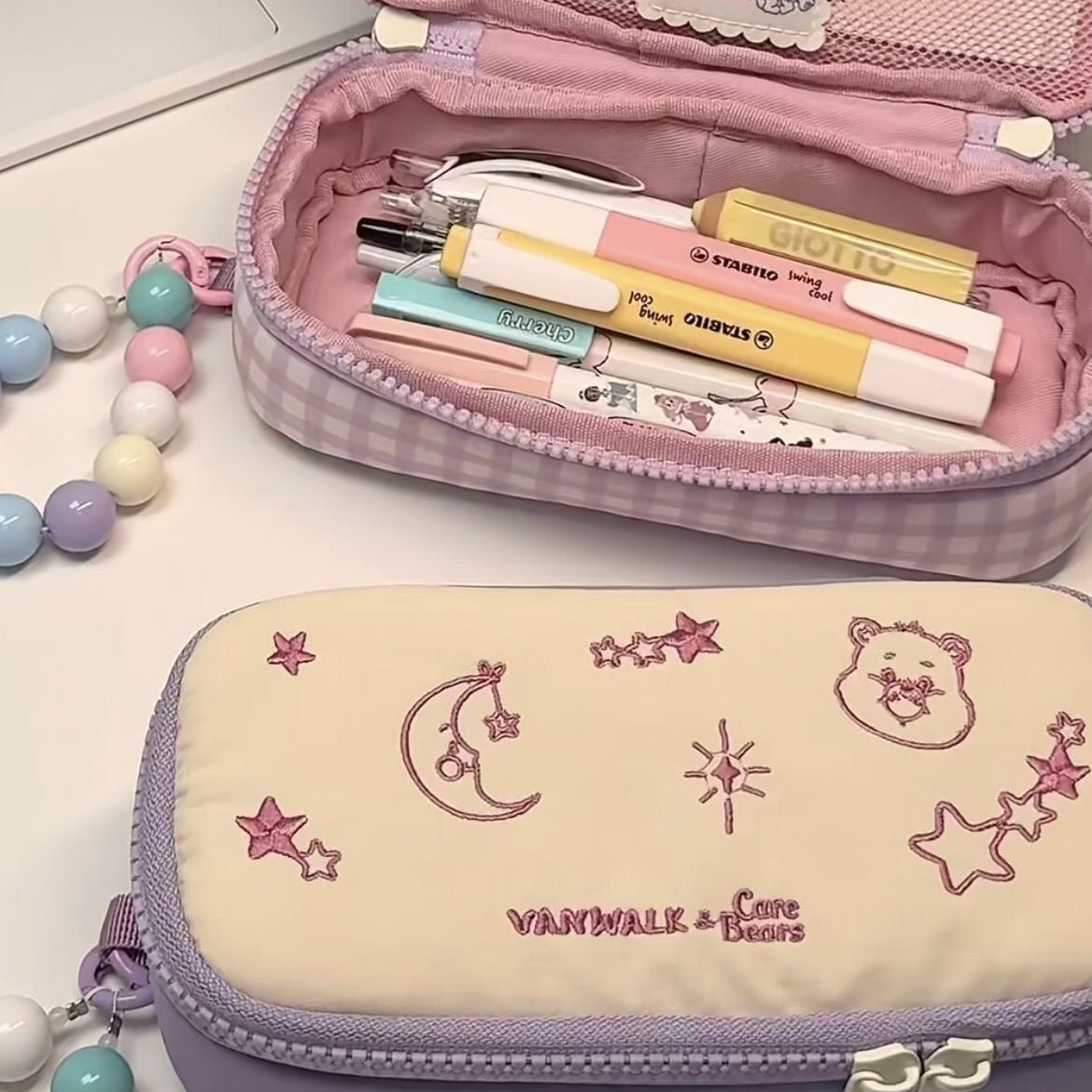 곰 격자 무늬 연필 케이스 Ins 귀여운 더블 레이어 높은 색상 가치 대용량 문구 상자 중학교 고등학교 연필 보관 상자스토어 가기