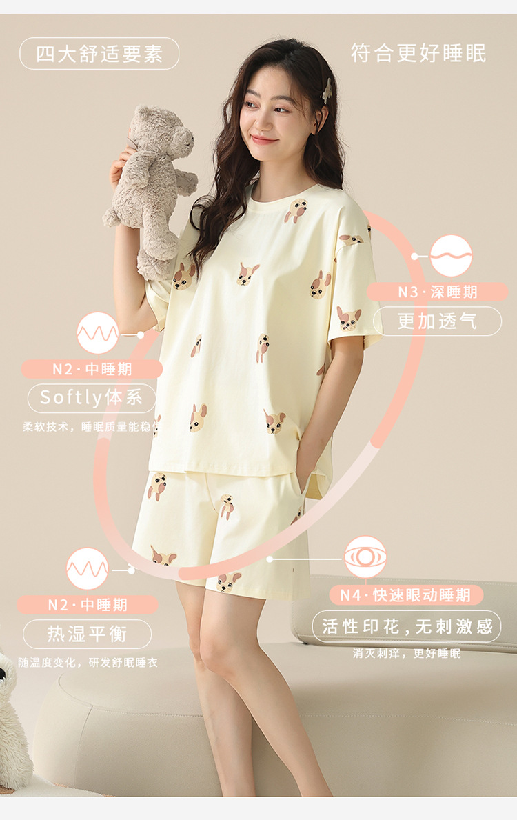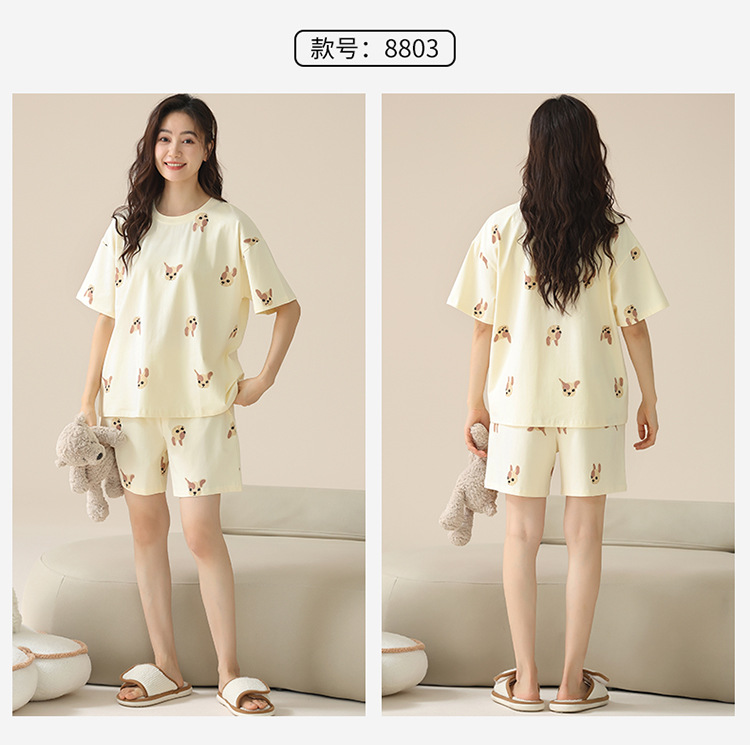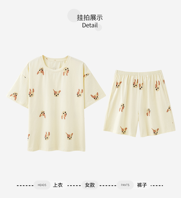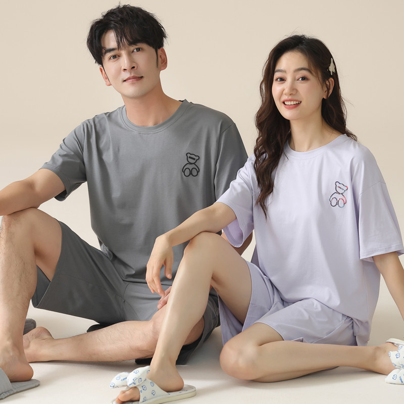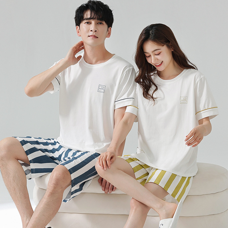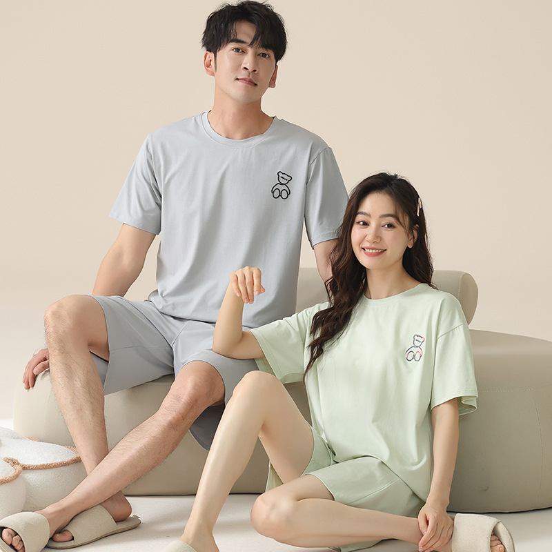 순면 홈 착용 세트 얇은 짧은 소매 반바지 커플의 둥근 목 느슨한 한국 인쇄 잠옷 여름스토어 가기