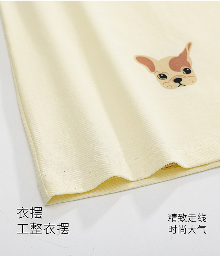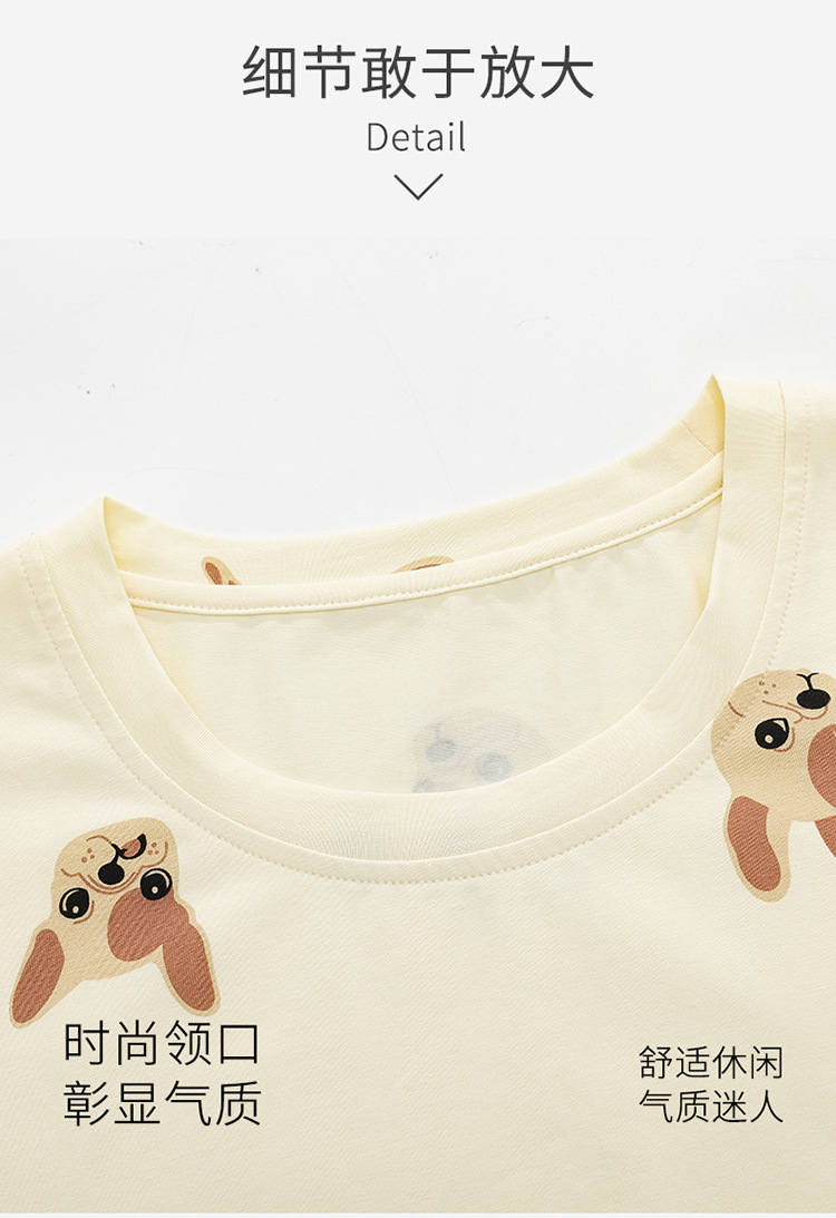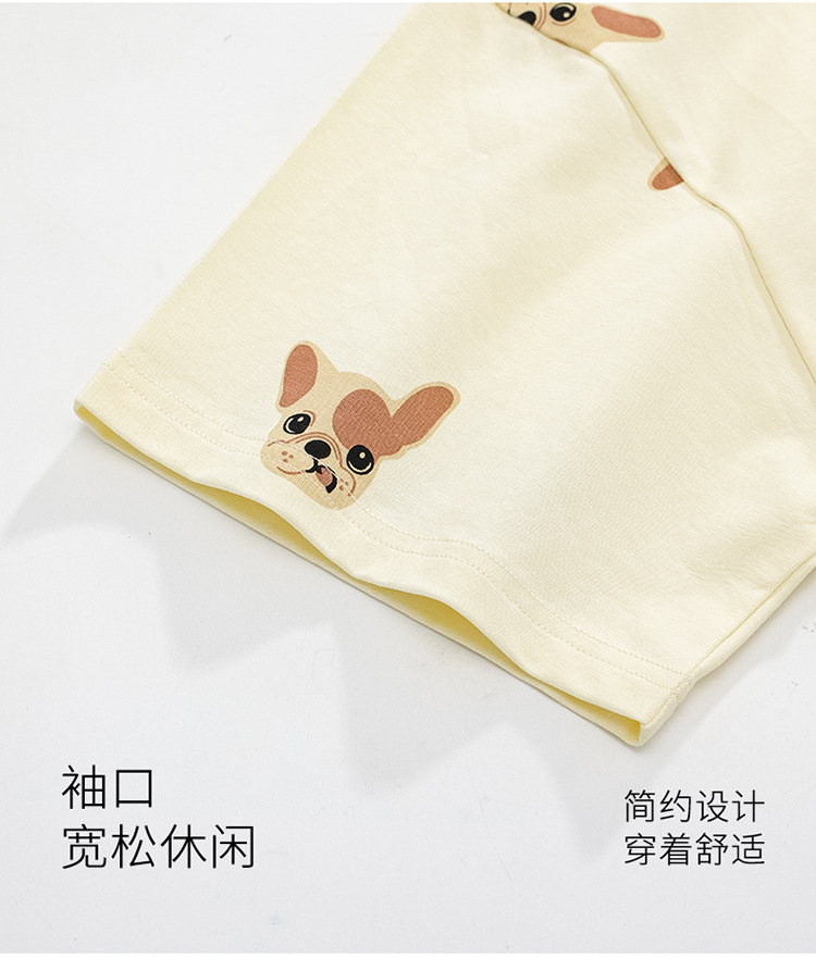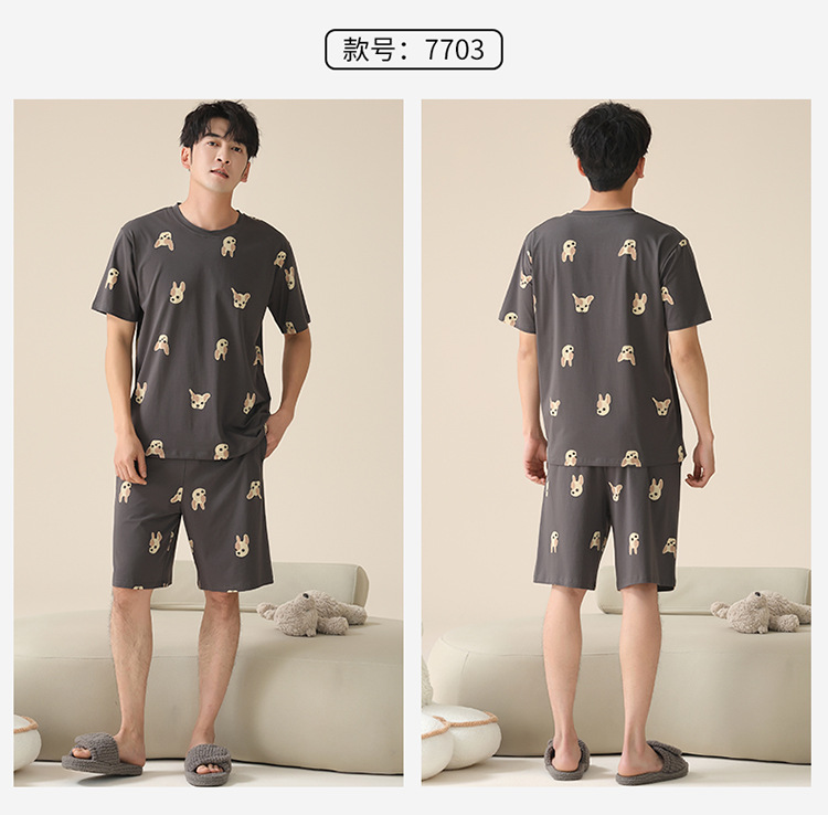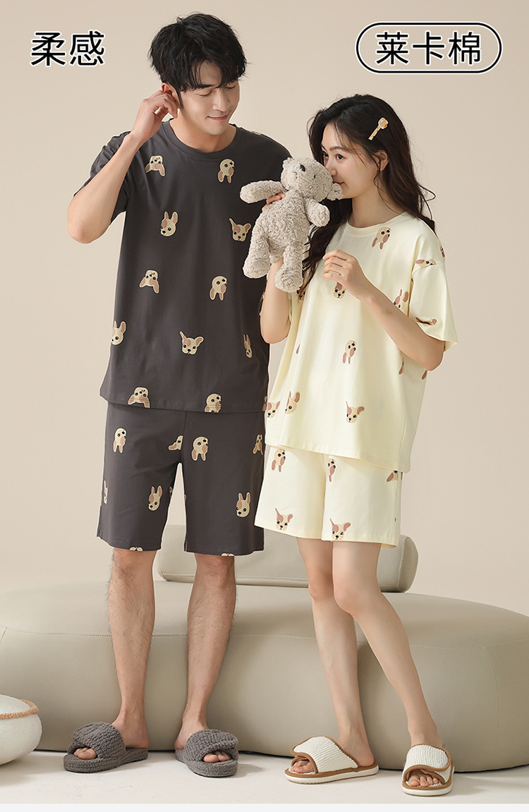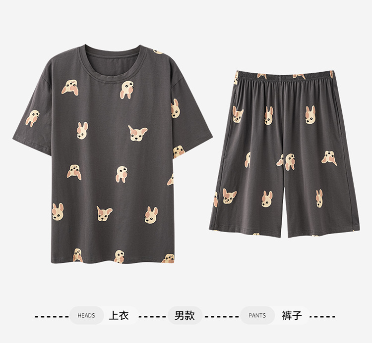 순면 홈 착용 세트 얇은 짧은 소매 반바지 커플의 둥근 목 느슨한 한국 인쇄 잠옷 여름
