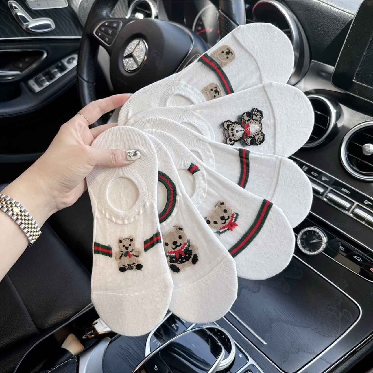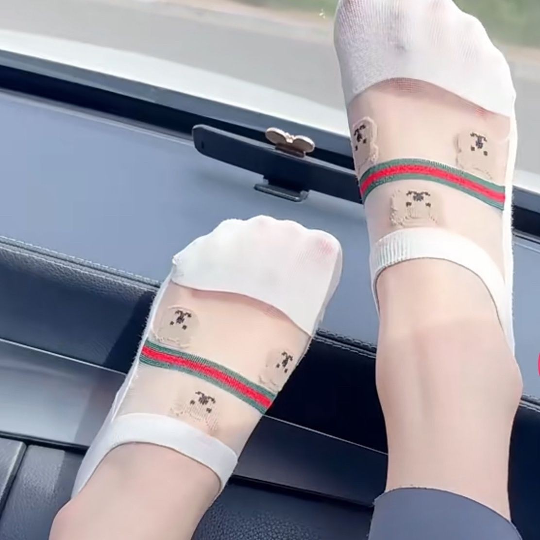 유럽 곰 빨간색과 녹색 줄무늬 얼음 실크 보이지 않는 여성용 양말 인터넷 연예인 초박형 땀 흡수 통기성 미끄럼 방지 떨어지지 않는 얕은 입 보트 양말스토어 가기