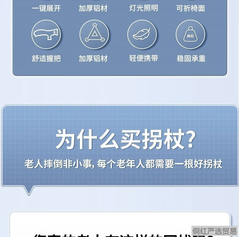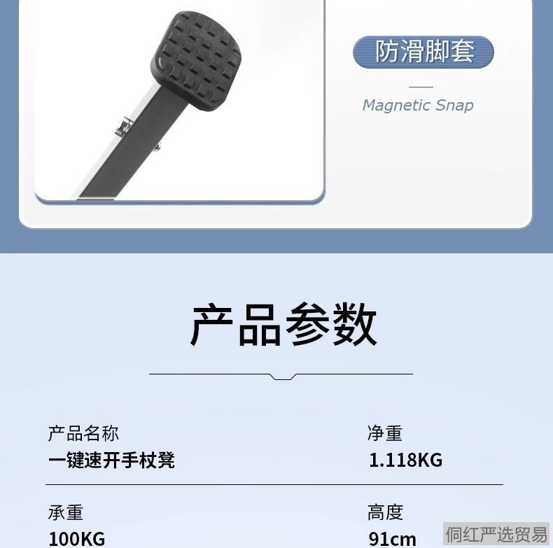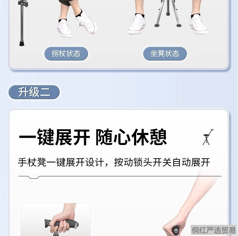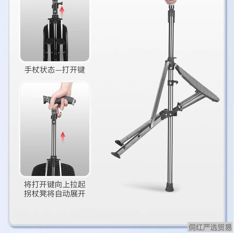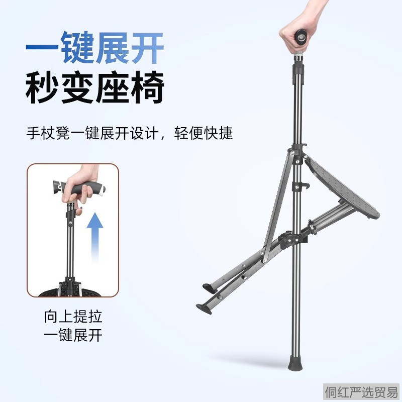 노인 지팡이 의자 다기능 미끄럼 보행 보조 휴대용 등산 지팡이 의자 접이식 휴대용 1 초 빠른 열기
