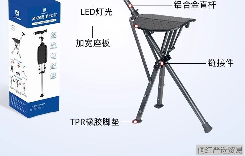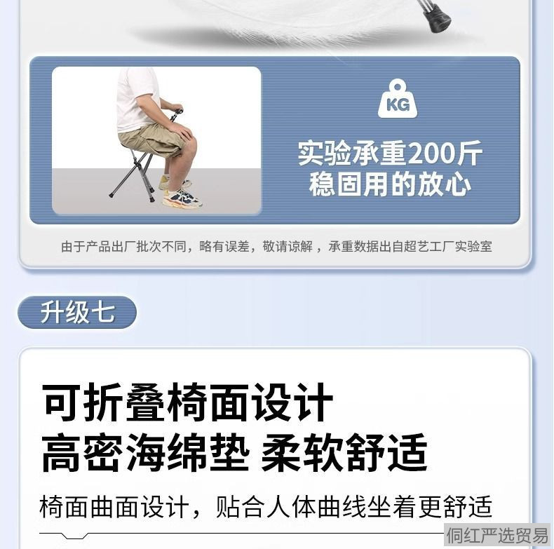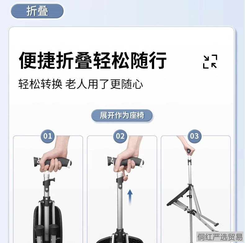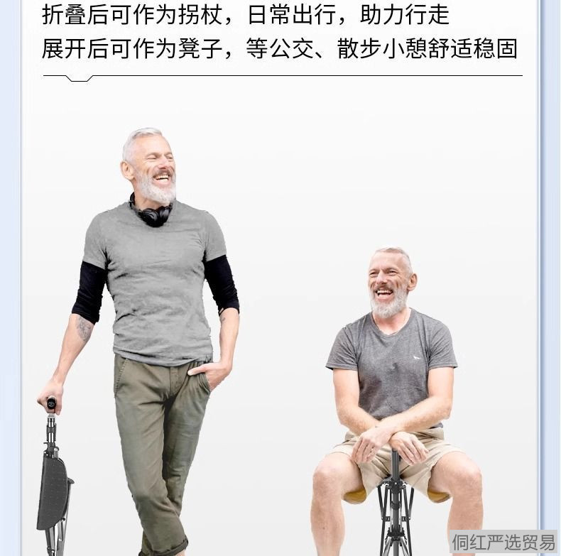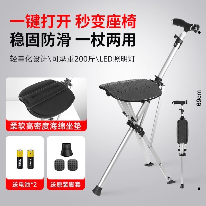 노인 지팡이 의자 다기능 미끄럼 보행 보조 휴대용 등산 지팡이 의자 접이식 휴대용 1 초 빠른 열기스토어 가기