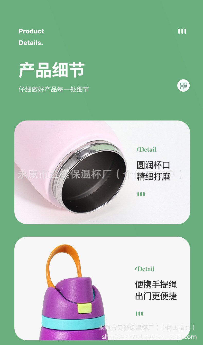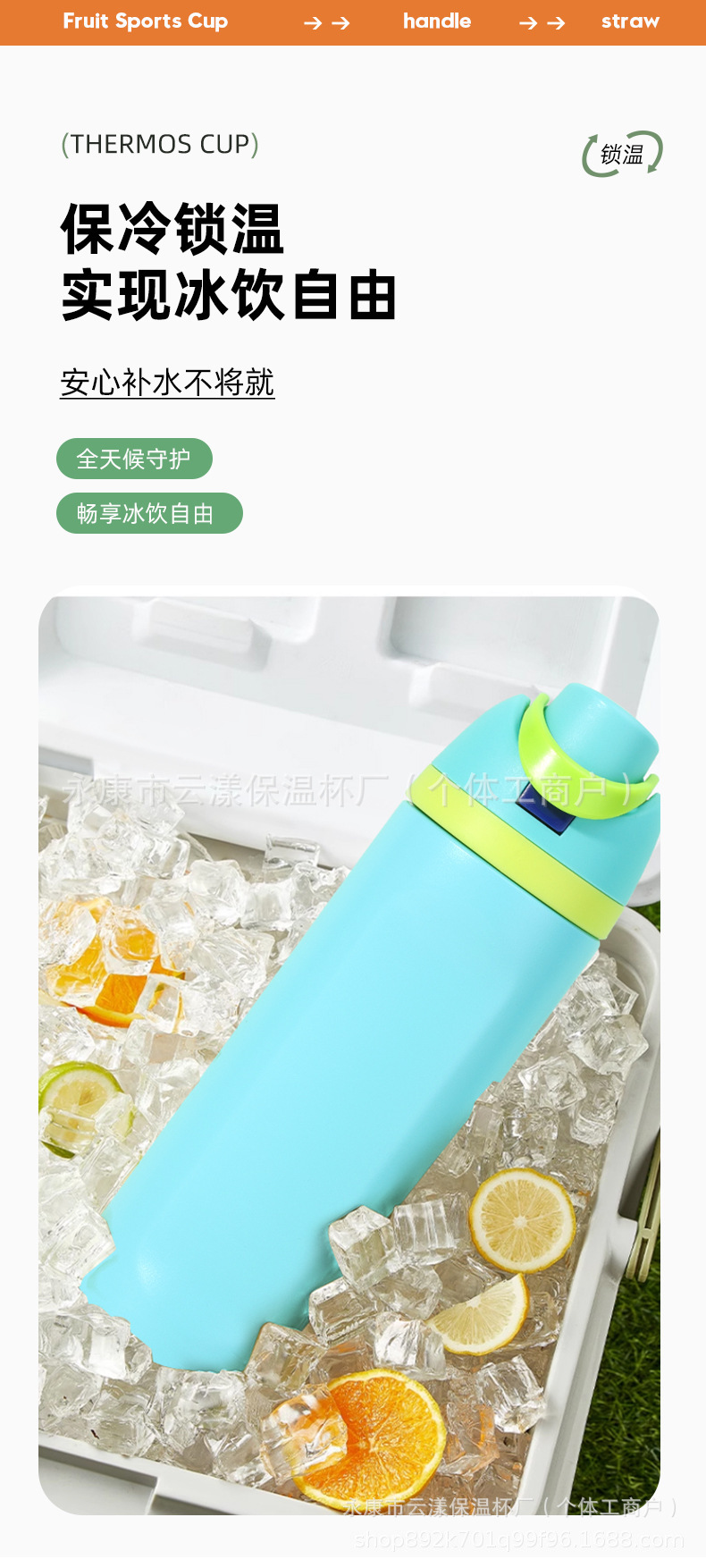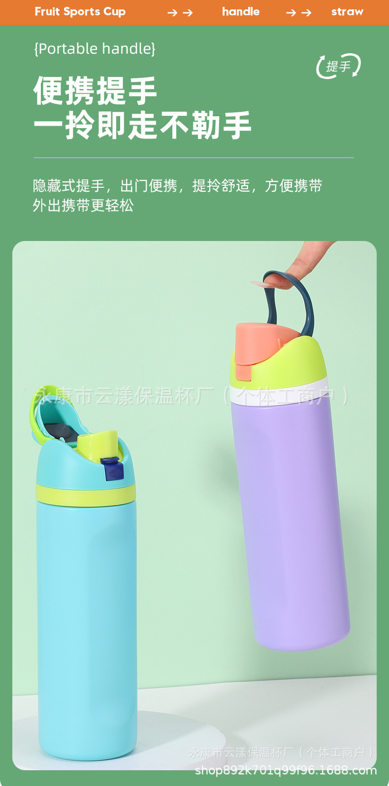 국경 특수 이중 뚜껑 304 스테인레스 스틸 진공 이중층 보온병 야외 과일 컵 로프 바운스 컵
