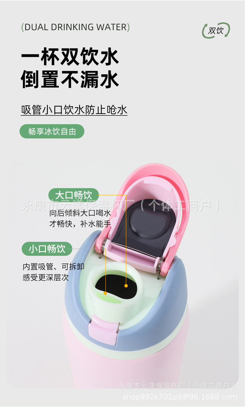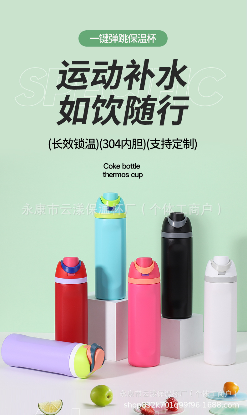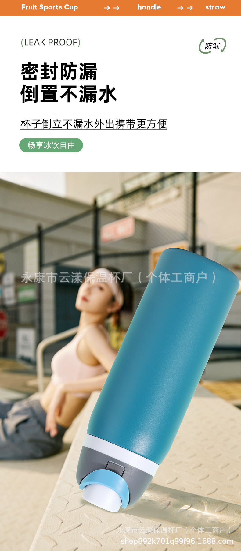 국경 특수 이중 뚜껑 304 스테인레스 스틸 진공 이중층 보온병 야외 과일 컵 로프 바운스 컵