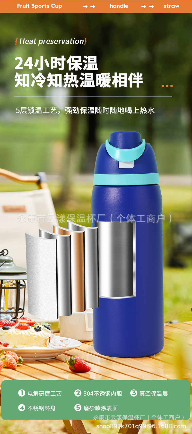 국경 특수 이중 뚜껑 304 스테인레스 스틸 진공 이중층 보온병 야외 과일 컵 로프 바운스 컵스토어 가기