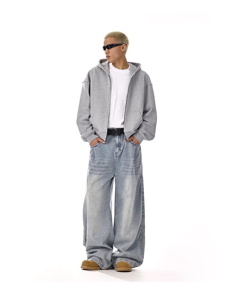 아메리칸 스타일 빈티지 세척 클렌핏 청바지 남성용 트렌디 브랜드 하이 스트리트 스트레이트 올 매치 루즈 와이드 레그 팬츠스토어 가기