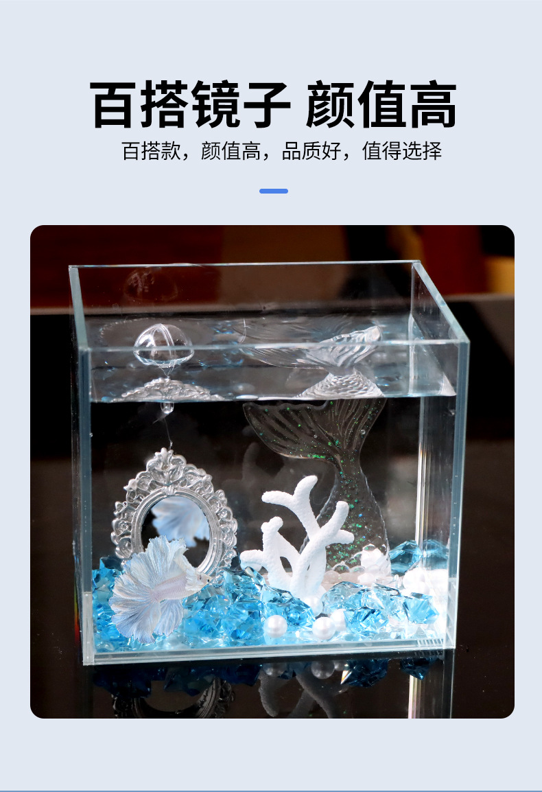 두유 반달 훈련 거울 레트로 스타일 유리 거울 플로트 장식품 소형 어항 장식 구름 장식품