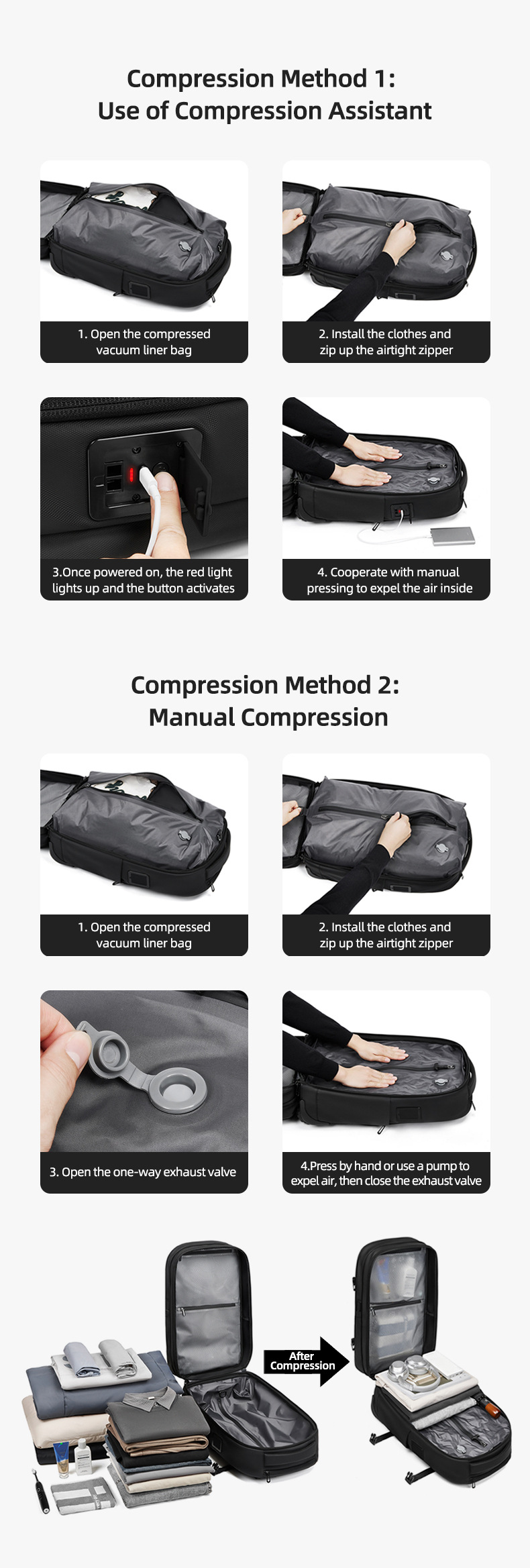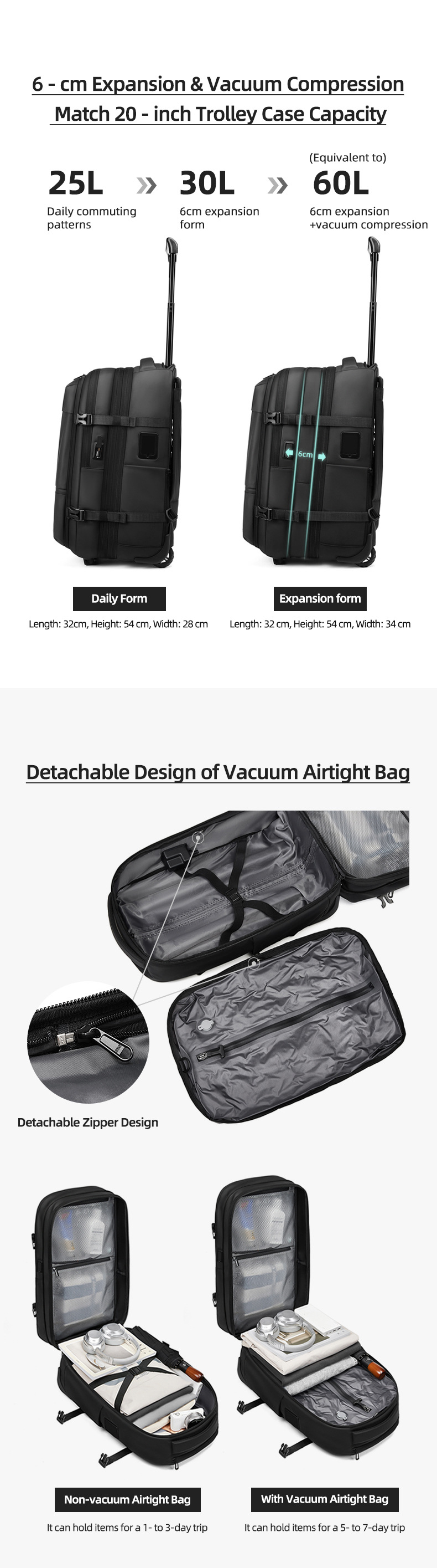 풀 로드 배낭 대용량 발수 사업 여행 수하물 가방 진공 압축로드 백팩 풀로드 가방