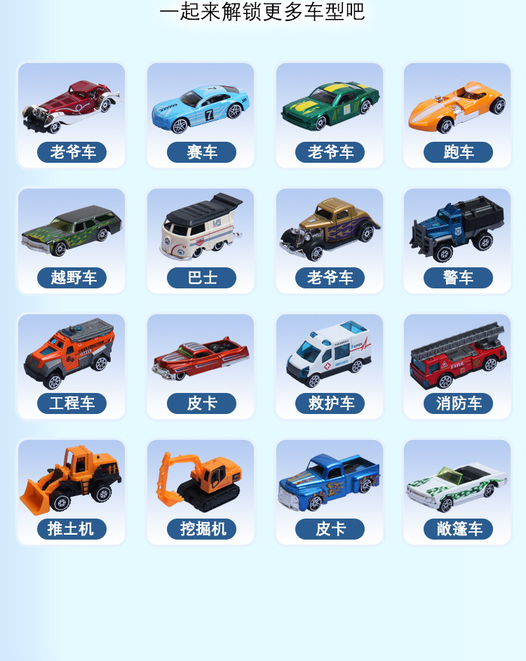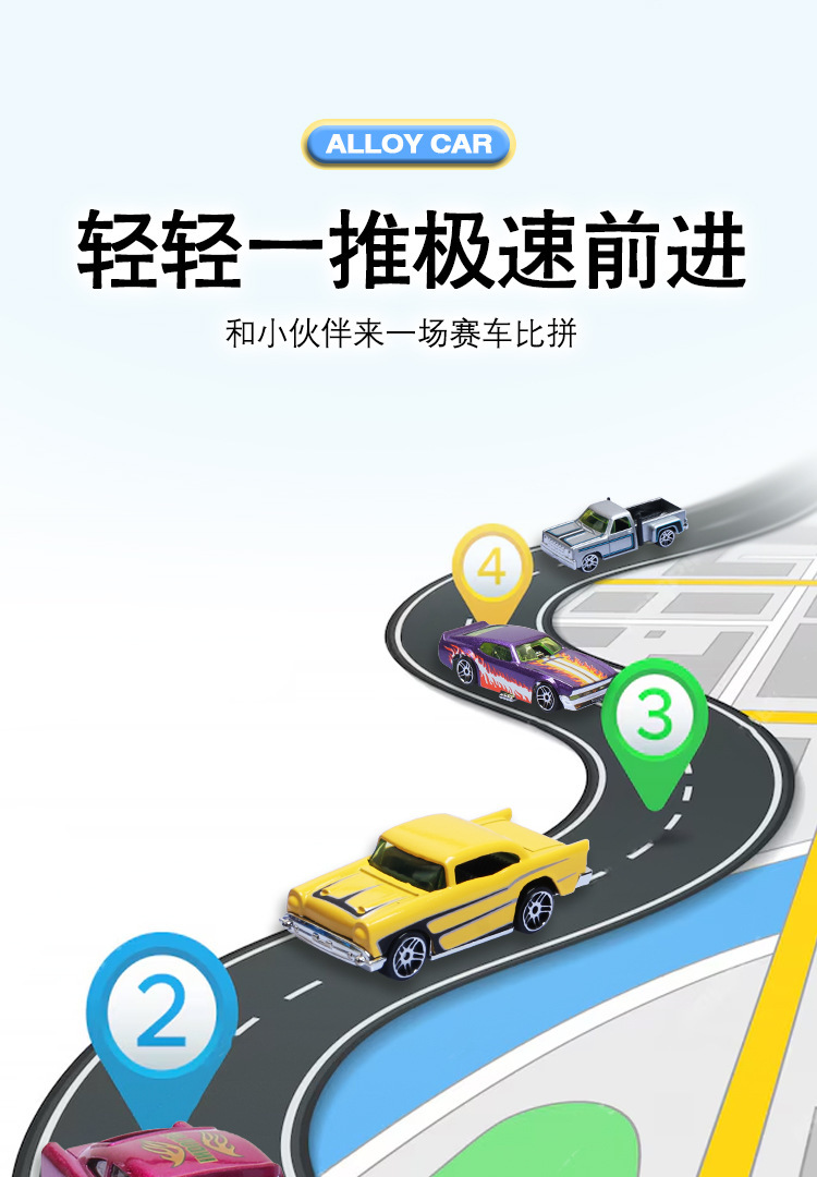 국경 1:64 슬라이딩 합금 장난감 자동차 경주 모델 장식품 세트 어린이 소년 선물 도매스토어 가기