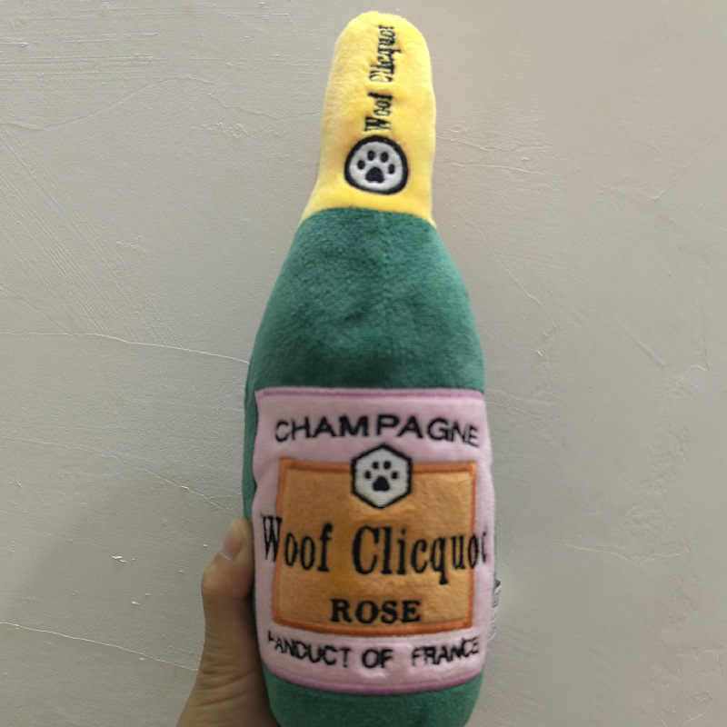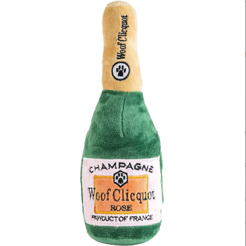 Woof Clicquot 로즈 샴페인 장난감 개 소리 장난감 물림 방지 애완 동물 헤어 장난감 노란색 와인 병스토어 가기