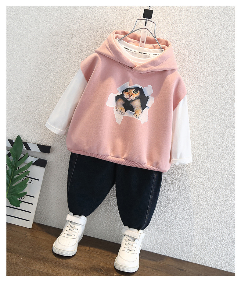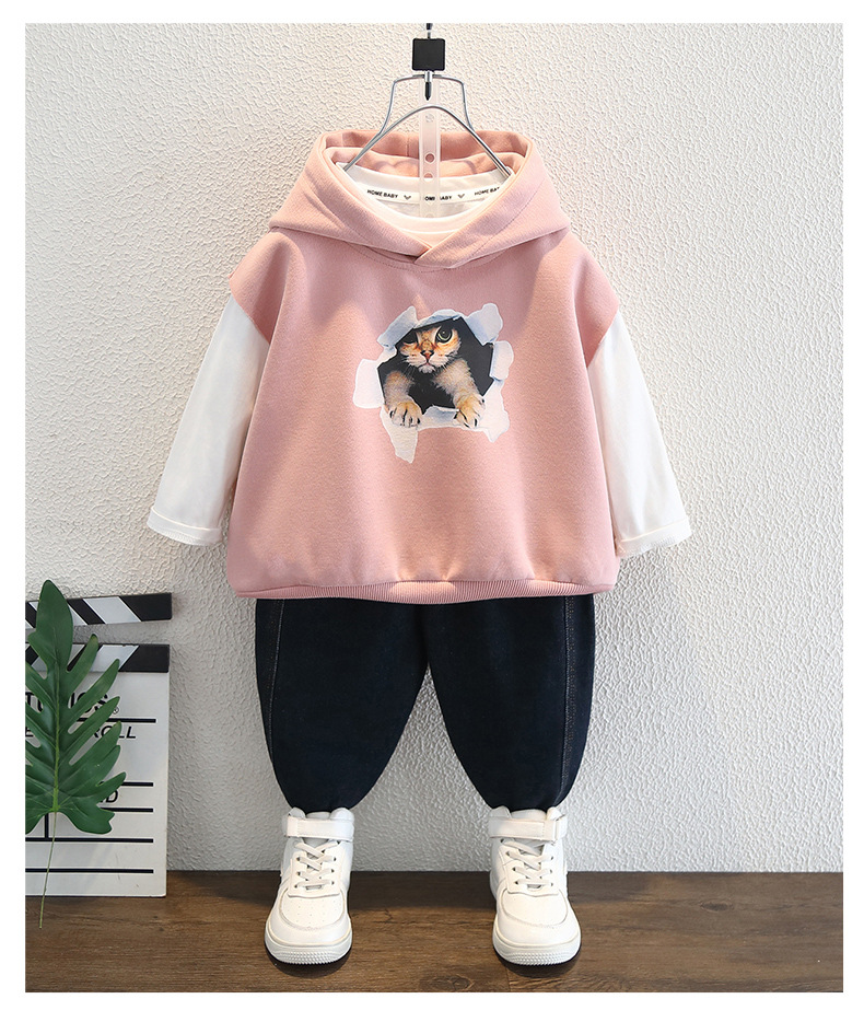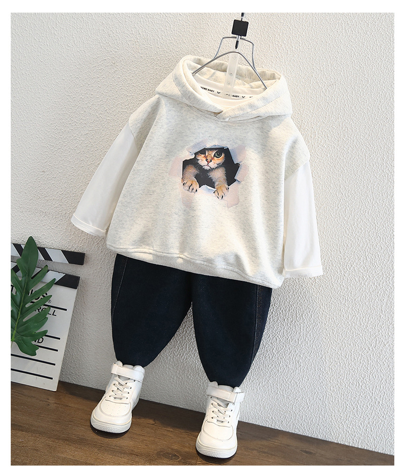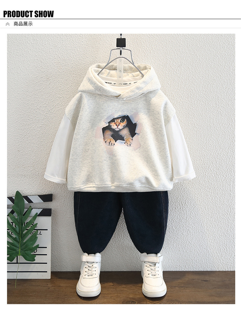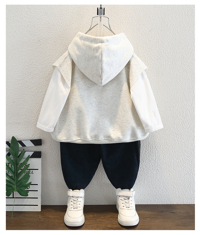 소년 스웨터 양복 조끼 봄 2025 새로운 어린이 봄 잘 생긴 유행 어린이 후드 양복 조끼 봄과 가을