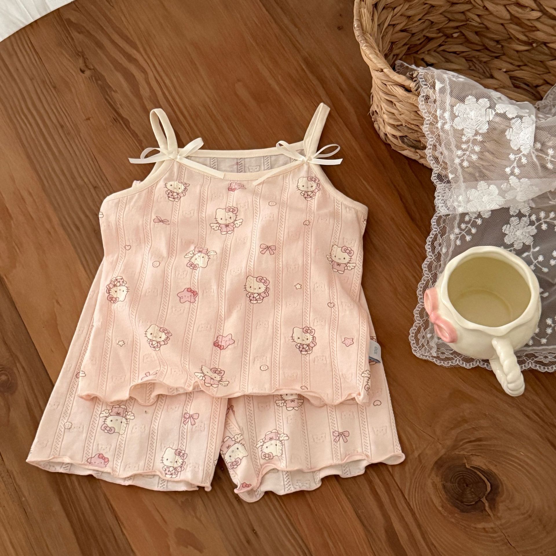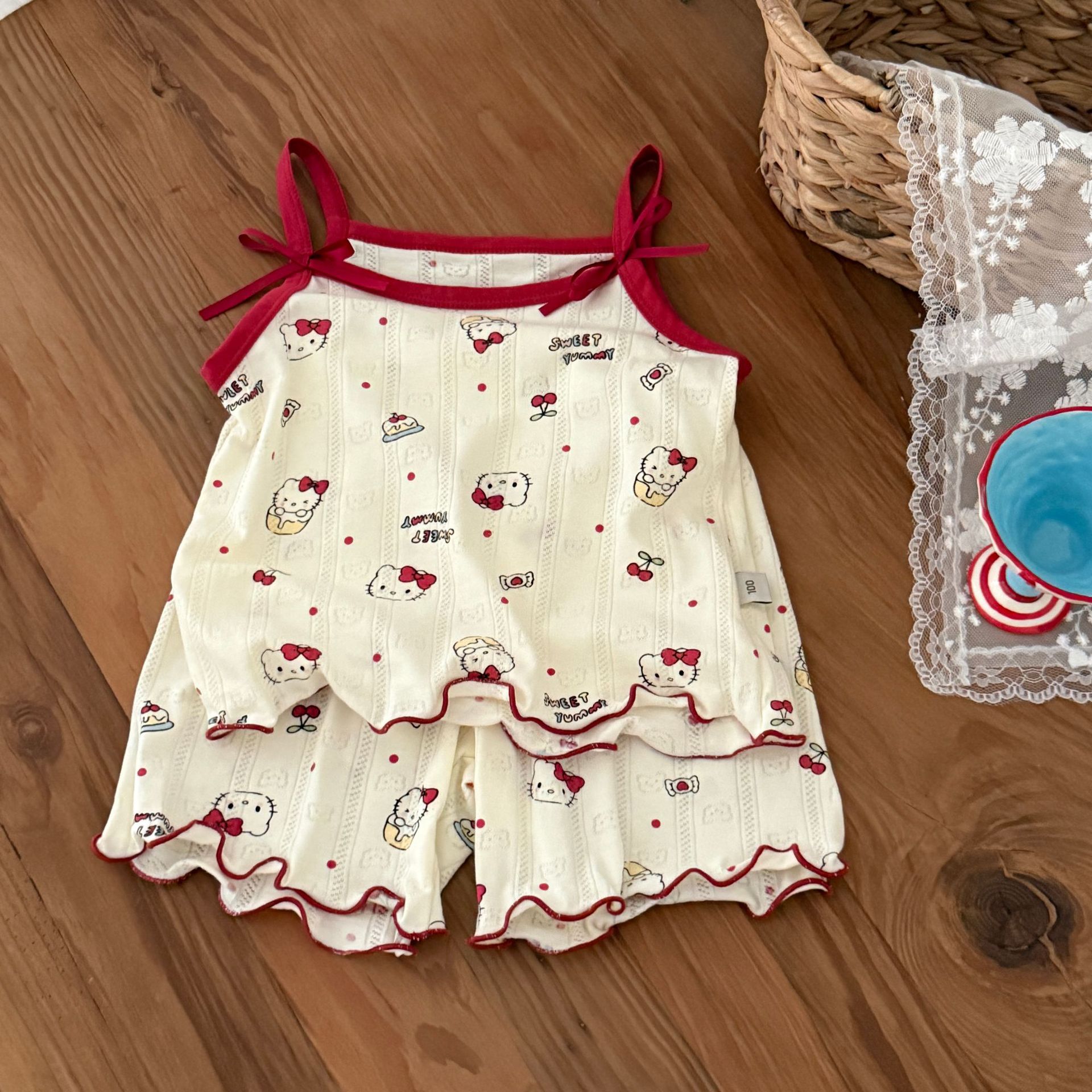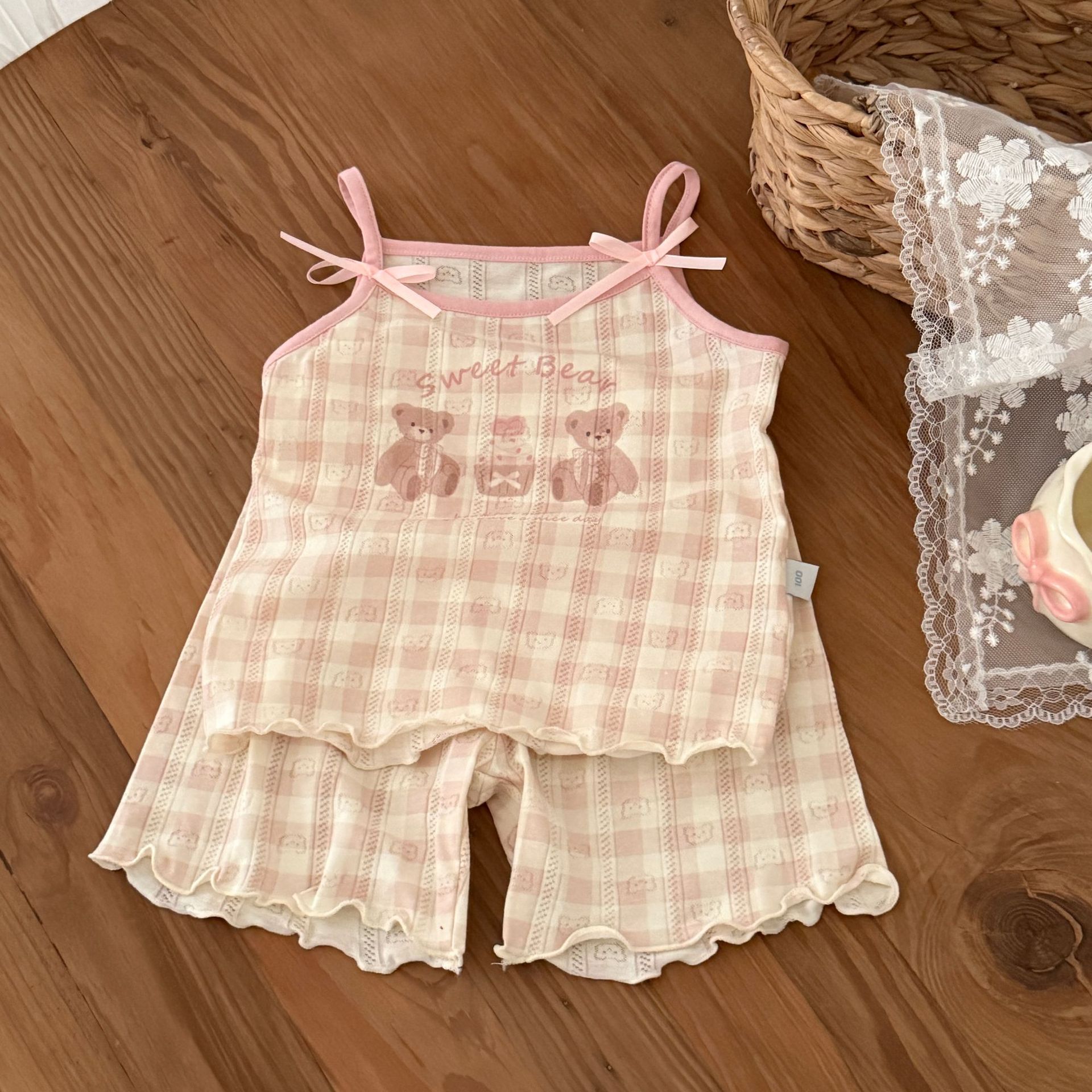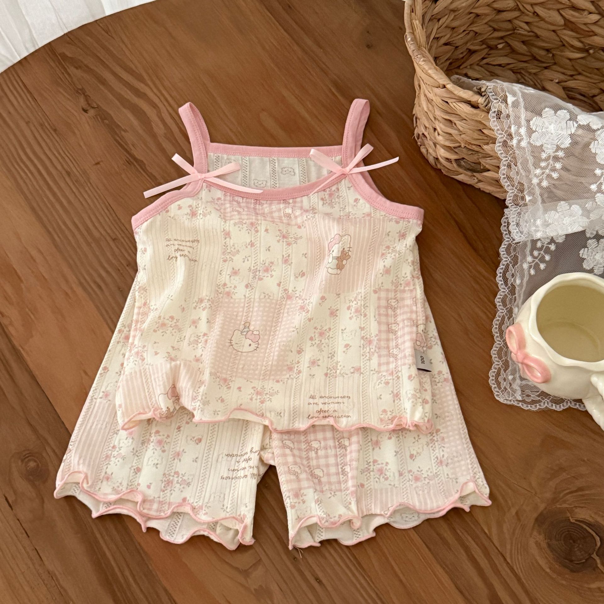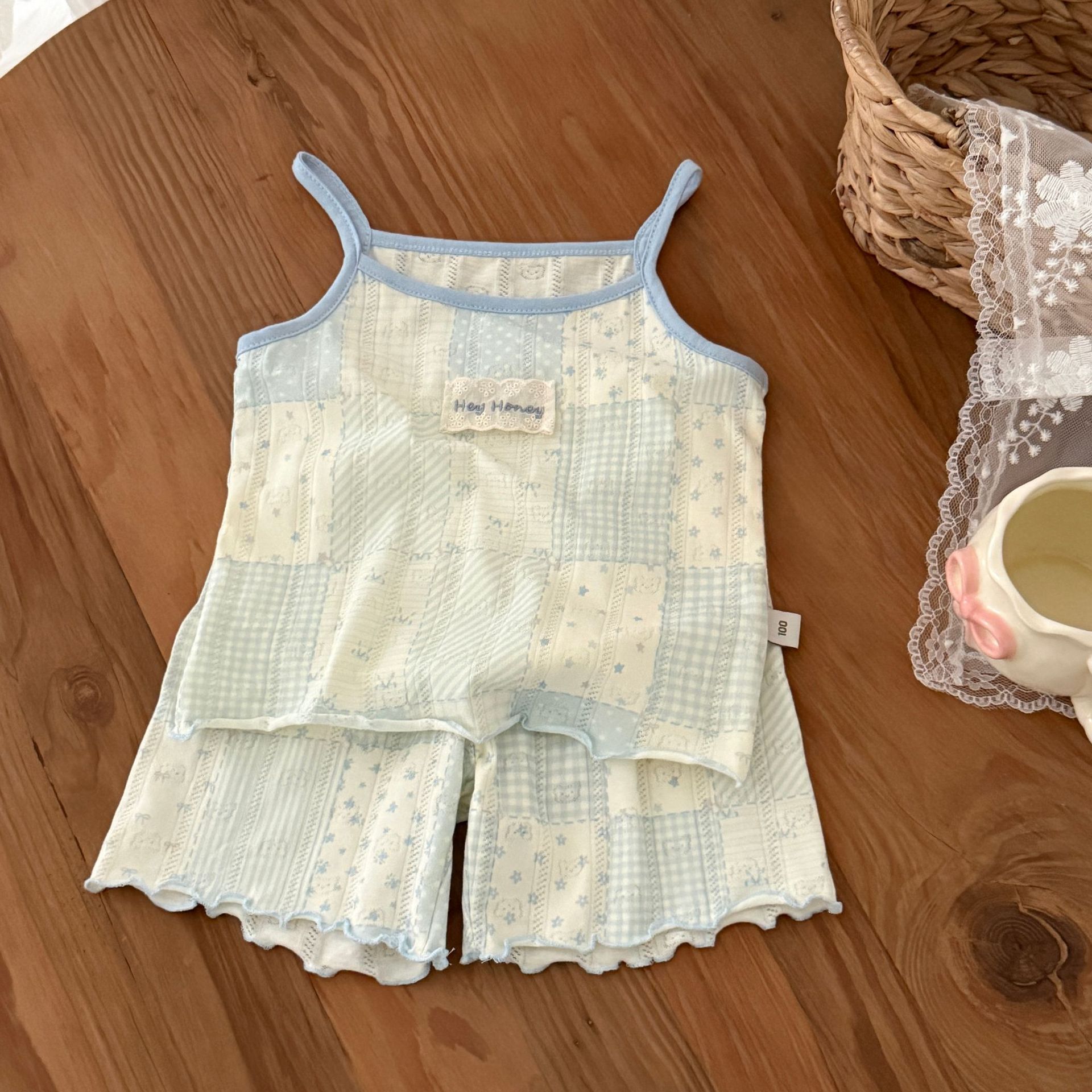 사이즈 롤 HeyHoney 아기 소녀 어린이 여름 호흡 구멍 카미솔 반바지 2 피스 세트 홈 옷스토어 가기