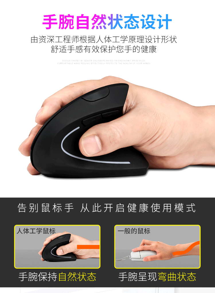 새로운 5 세대 수직 마우스 수직 무선 2.4G 측면 그립 오른손 인체 공학적 마우스 특수 공장 도매스토어 가기