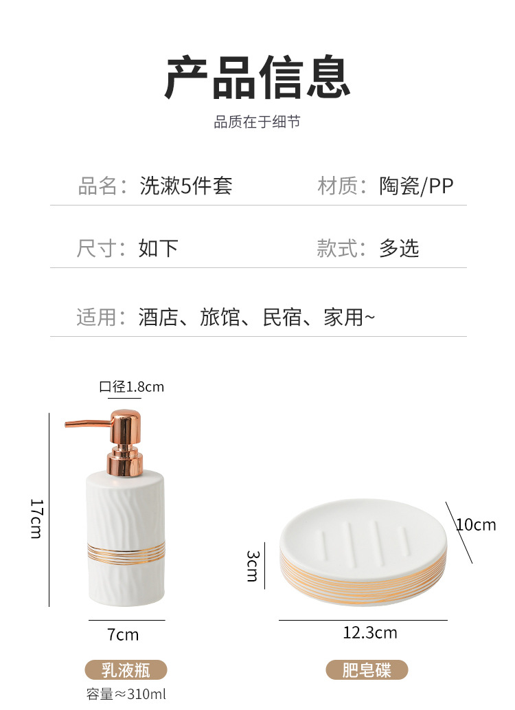 • 절묘한 5피스 욕실 세트 [화이트 스킨 필]-골드 실크 패턴