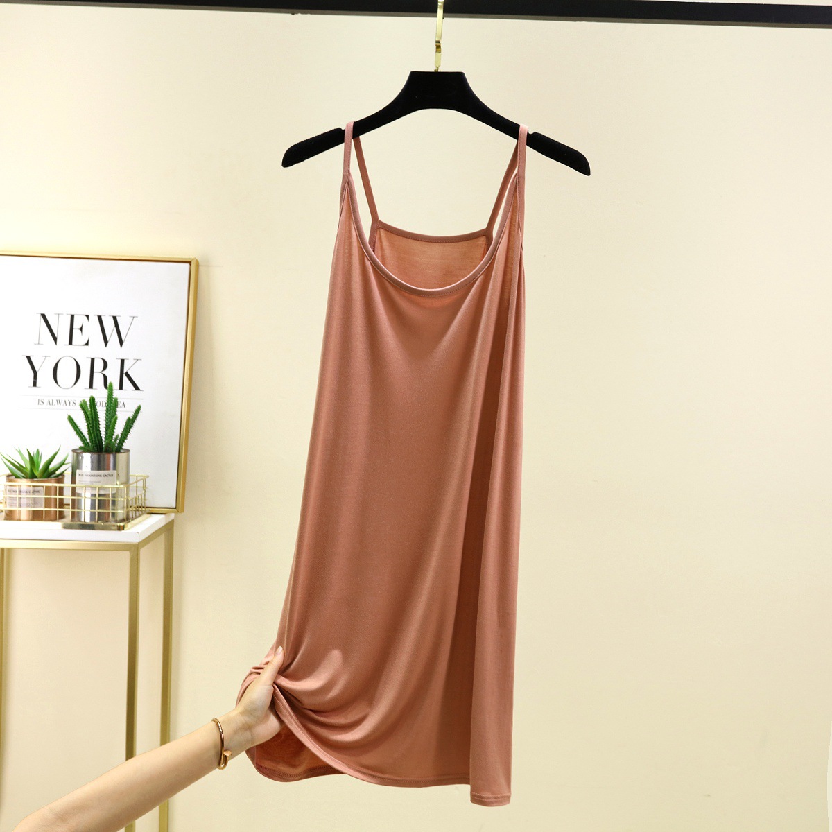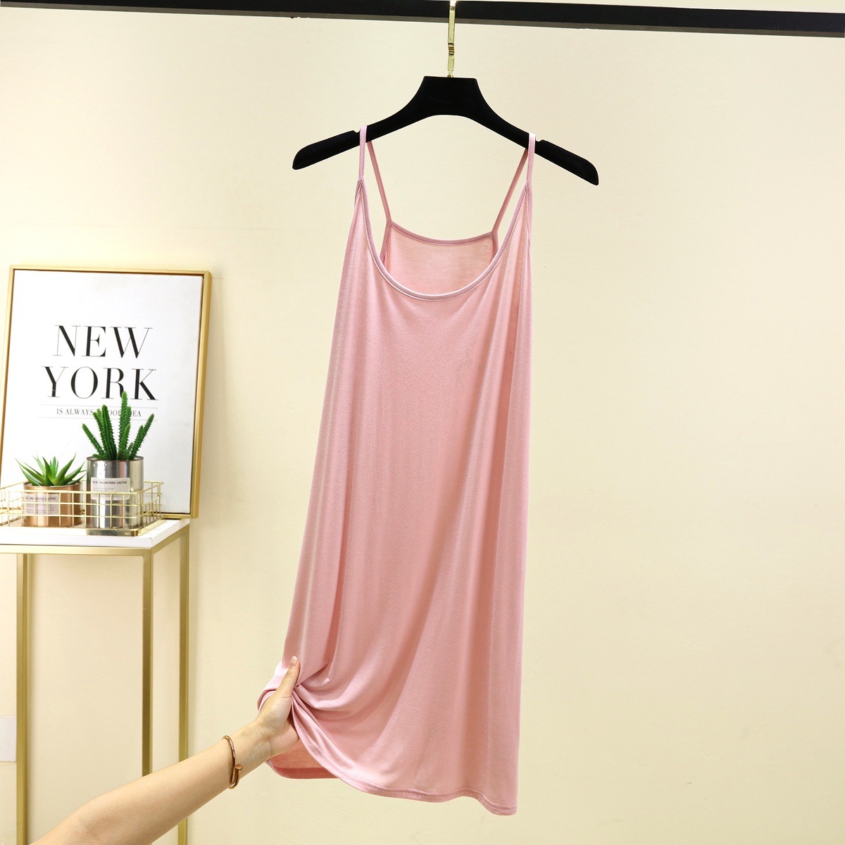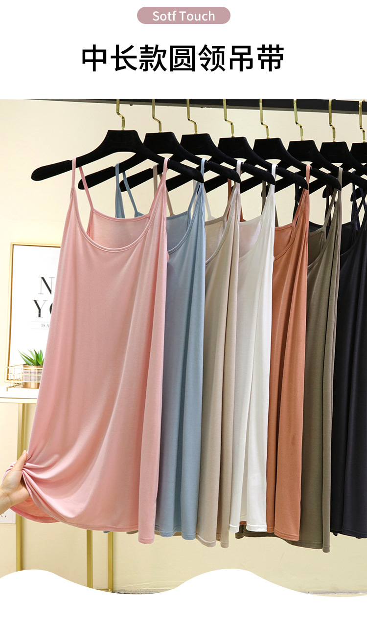 모달 슬링 나이트 가운 여성의 여름 솔리드 컬러 민소매 베이스 스커트 내부 얇은 긴 스커트 홈 캐주얼 롱 스커트스토어 가기