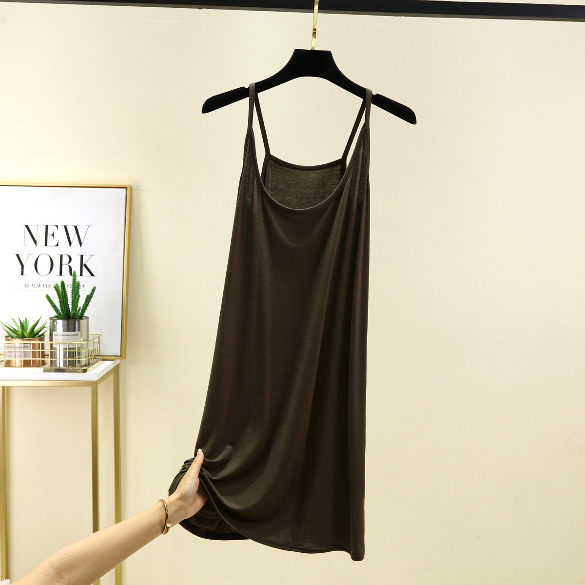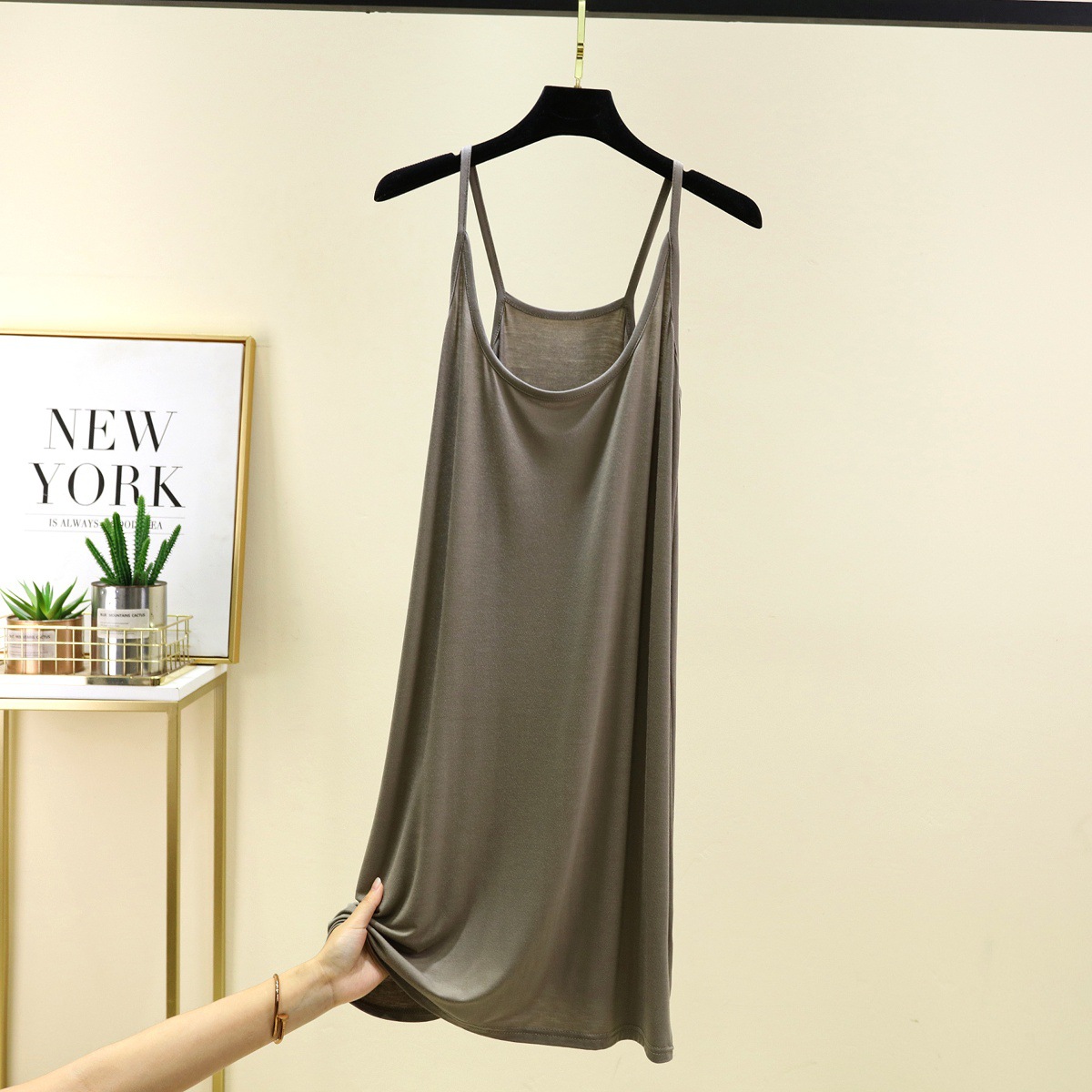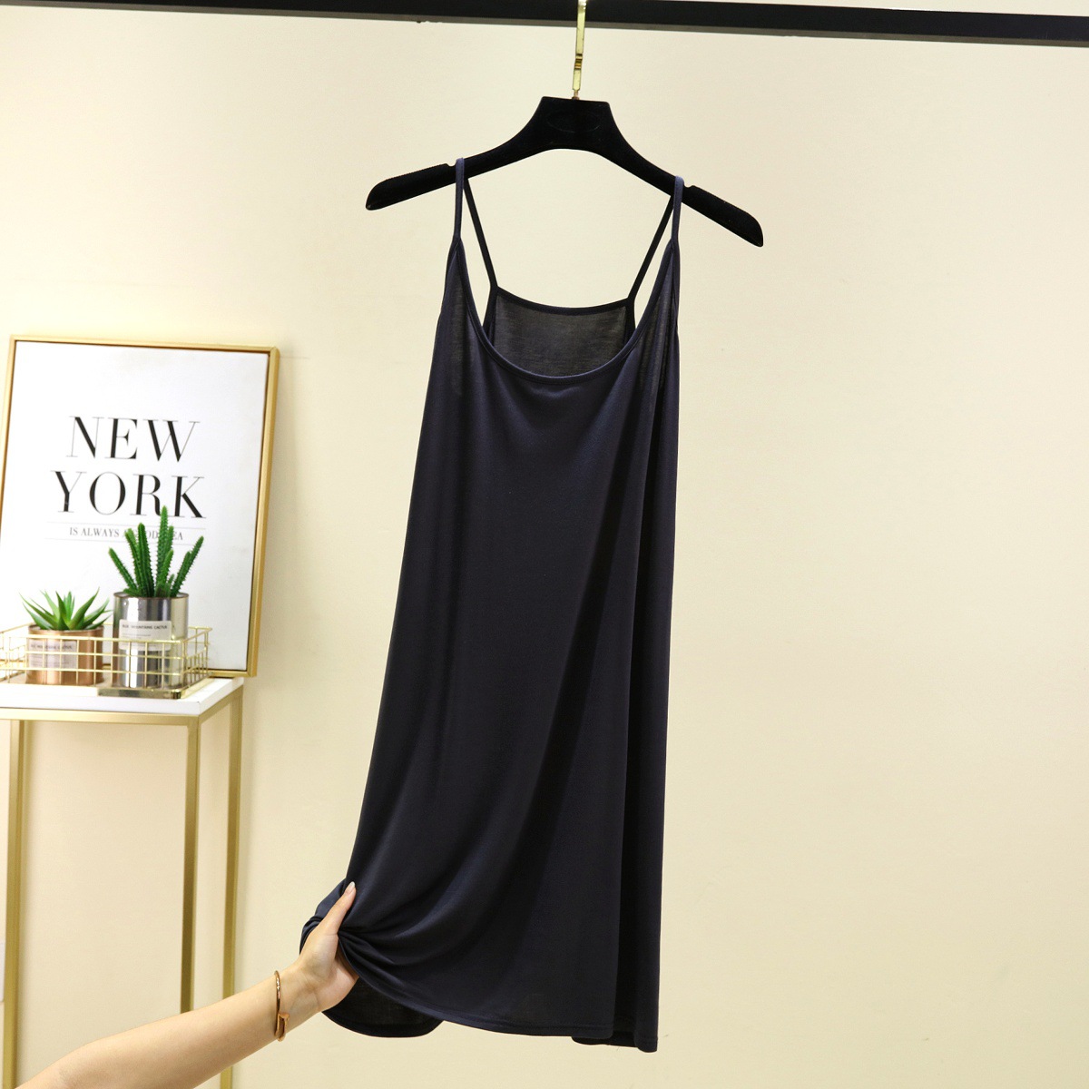 모달 슬링 나이트 가운 여성의 여름 솔리드 컬러 민소매 베이스 스커트 내부 얇은 긴 스커트 홈 캐주얼 롱 스커트스토어 가기