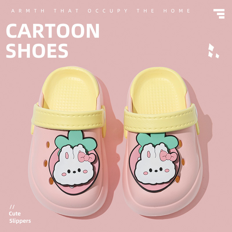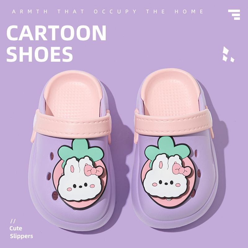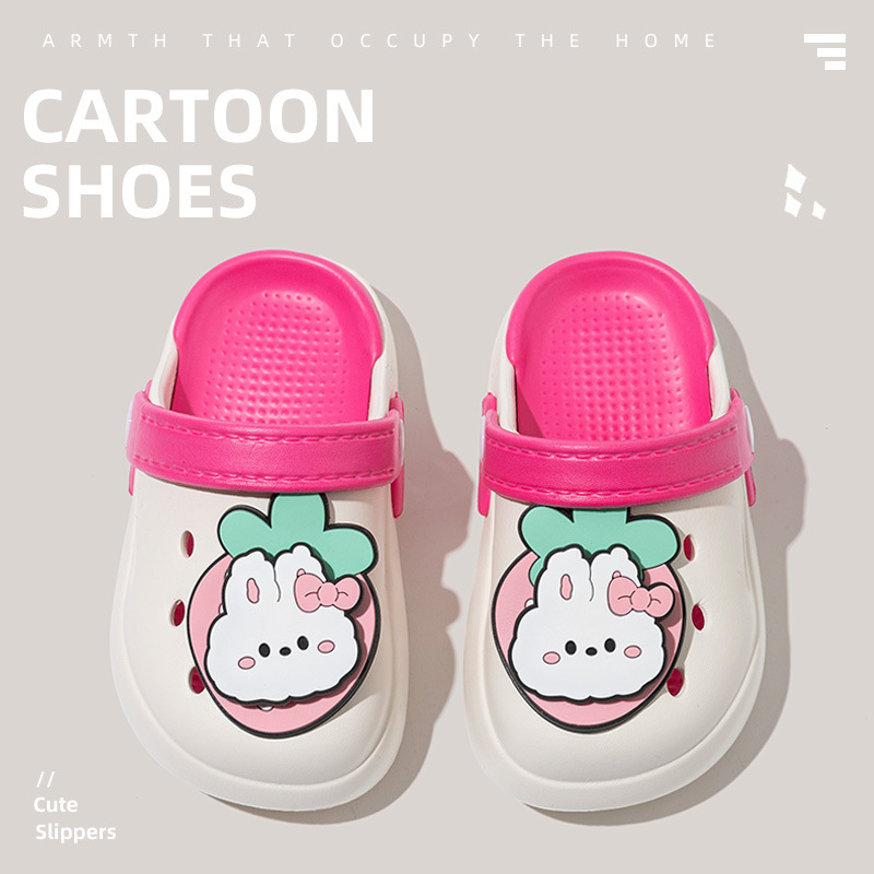 2025 새로운 3 차원 회전 토끼 어린이 슬리퍼 여름 만화 귀여운 해변 외부 아기 구멍 신발 소녀