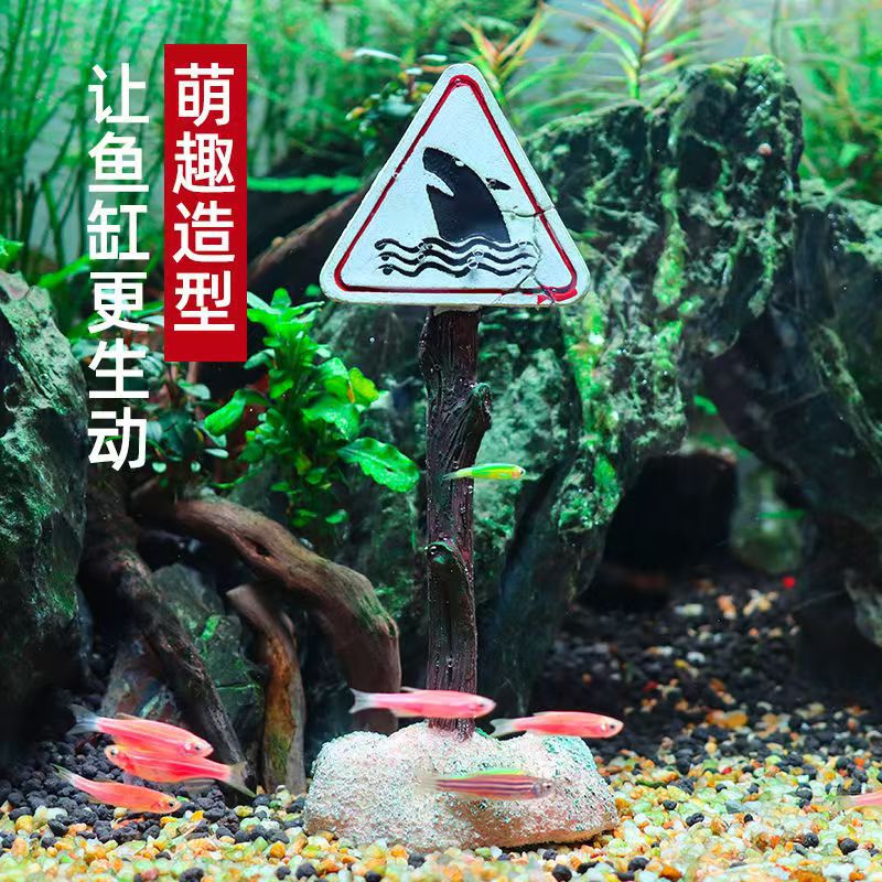 어항 장식품, 수족관 표지판, 경고 표지판, 레진 장식, 모조 상어, 미니어처 풍경 액세서리, 수족관스토어 가기